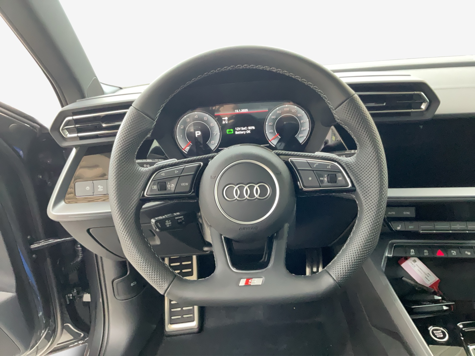 Airbag: Airbag passager désactivable Airbag: airbag conducteur Appel d’urgence Audi connect et service avec Audi connect Remote & Control Assist: Assistant d’évitement de collision et de changement de direction Assist: Avertissement d’abandon de voie avec assistant d’urgence inclus Assist: Capteurs de stationnement arriere Assist: Reconnaissance des panneaux de signalisation par caméra Assist: Système proactif de protection des passagers à l’avant, sur le côté et à l’arrière Assist: Électronique contrôle de la traction Aussenspiegel elektrisch einstell- und beheizbar Baguettes d’appuis de vitres en noir Bottom line avec seuils de portes latéraux en gris Manhattan métallisé Clima: Climatisation automatique 1 zone avec préparation pour d’autres fonctions de climatisation Clé à télécommande sans verrouillage de sécurité Diffuseur arrière en argent Sélénite Dossier des sièges arrière rabattable Décor: Application décorative en vernis fin gris Volcan Détecteur de luminosité et de pluie Elektrische Fensterheber vorne Garantie: 2 ans / kilométrage illimité Getriebe: 7-Gang- Automat S tronic Grille de calandre en noir titane mat Insert des prises d’air avant en argent Sélénite Insert à l’arrière en argent Sélénite Intérieur avec sièges standard en tissu noir Lèvre de spoiler avant en argent Sélénite Media: Ports USB avec fonction de charge à l’arrière Mèdias: Audi phone box light Pack: Pack Info-divertissement Paquet de l'éclairage ambiant Programme électronique de la stabilité (ESP) Roues: Affichage du contrôle de la pression des pneus Roues: Jantes, design Wing à 5 branches Roues: Set de réparation pour les pneus Rétroviseurs extérieurs en couleur de la carrosserie Sièges: i-Size et Top Tether pour les sièges extérieurs à l’arrière Suspension: Adaptation du système de freinage Système antiblocage des roues (ABS) Sécurité enfant à commande électrique Verrouillage central avec télécommande Volant: volant en cuir style 3 branches avec palettes multifonction plus