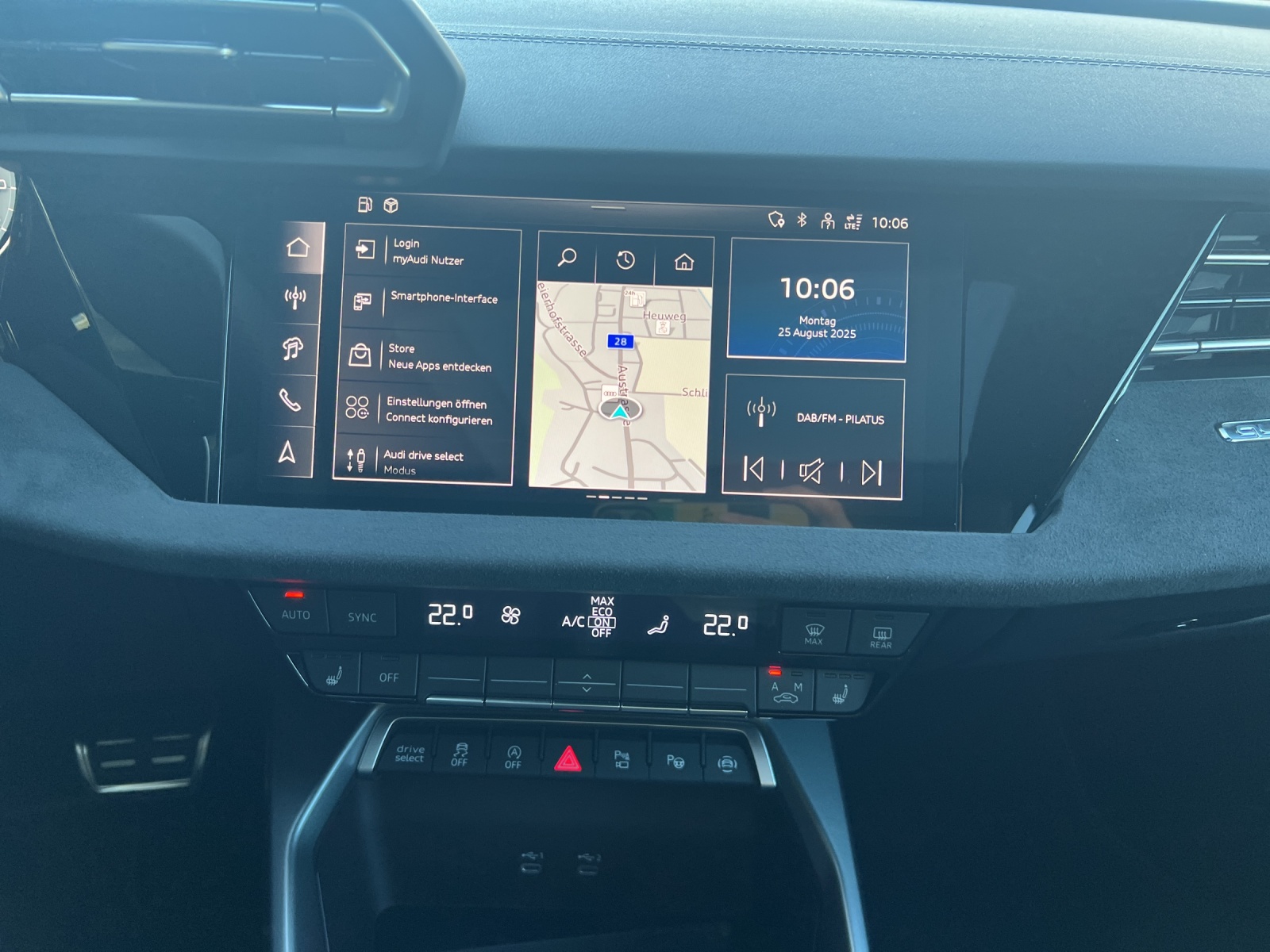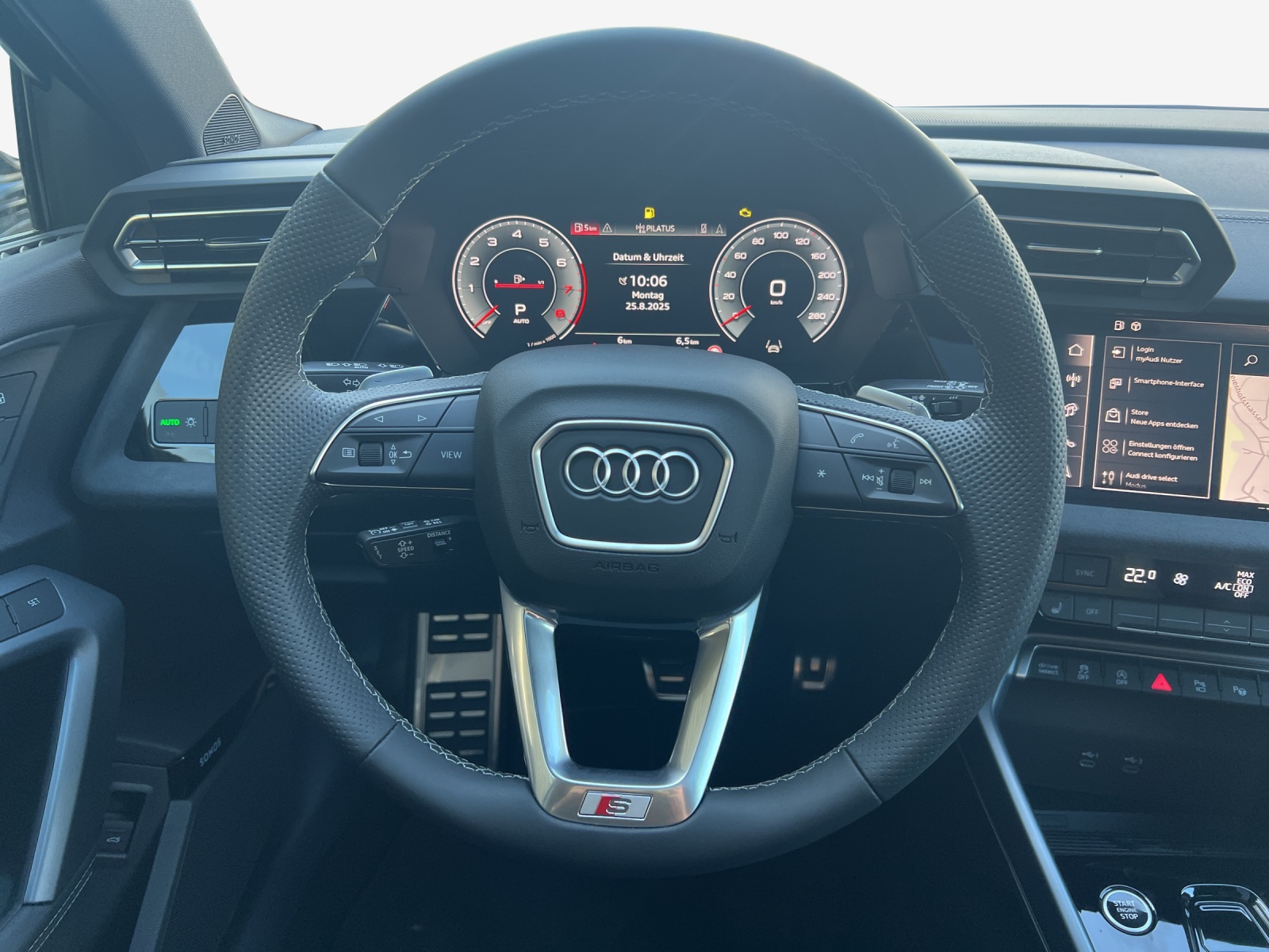 Assist: Adaptiver Fahrassistent mit Notfallassistent Entfall Modellbezeichnung Fahrwerk: Sportfahrwerk mit max. 19'' Felgen Garantie: Audi Garantie: 5 Jahre oder 100'000 km (ab 1. Inv.) Lackierung: Metallic-Lackierung Paket: Ambiente-Lichtpaket pro Paket: Interieur S mit Sportsitzen, Mikrofaser Dinamica/Kunstleder-Kombination schwarz Paket: Optikpaket schwarz plus Räder: Leichtmetallräder Audi Sport 19 Zoll 5-Doppelspeichen-Edge, anthrazitschwarz, glanzgedreht Sitze: Rücksitzlehne, geteilt umklappbar Sonnenschutzverglasung, abgedunkelt Vorbereitung für Anhängevorrichtung