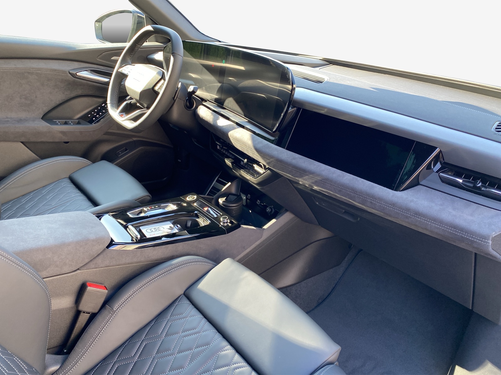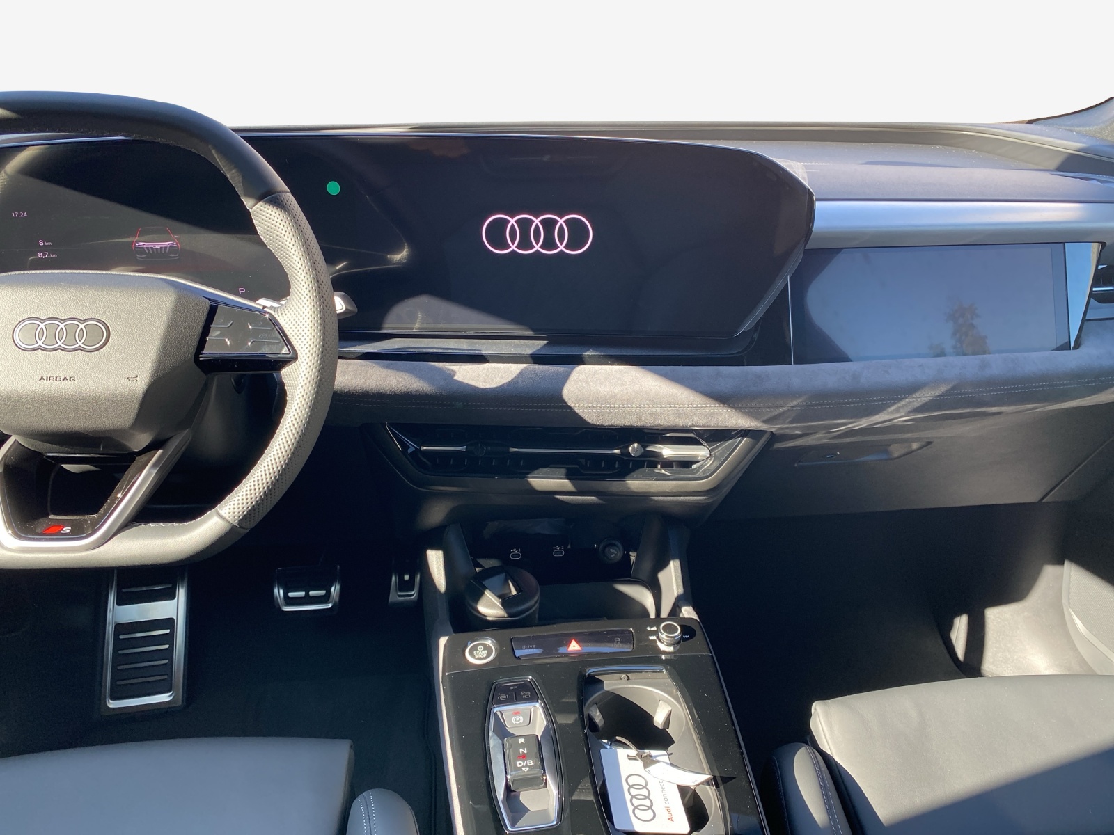 Airbag: Airbag Beifahrer deaktivierbar Airbag: Airbag Fahrer und Beifahrer Airbag: Seitenairbag vorn, mit Kopfairbag und Interaktionsairbag vorn Akustisches Fahrzeug-Warnsystem (AVAS) Assist: Adaptiver Geschwindigkeitsassistent Assist: Aufmerksamkeits- und Müdigkeitserkennung Assist: Ausweichassistent und Abbiegeassistent Assist: Einparkhilfe plus mit Distanzanzeige Assist: Kamerabasierte Verkehrszeichenerkennung Assist: Kreuzungsassistent Assist: Notbremsassistent vorn Assist: Parkassistent plus Assist: Spurverlassenswarnung Assist: Spurwechsel- und Ausstiegswarnung, Querverkehrassistent hinten und Abbiegeassistent hinten Assist: Traktionskontrolle Assist: Verkehrszeichenbasierter Geschwindigkeitsbegrenzer Audi connect Notruf & Service mit Audi connect Remote & Control Audi virtual cockpit plus Aussenspiegel elektrisch einstell-, beheiz- und anklappbar, beidseitig automatisch abblendend Aussenspiegel in Wagenfarbe Dachhimmel Stoff, Farbe felsgrau Dekor: Dekoreinlage Feinlack vulkangrau Dekor: Instrumententafel-Oberseite schwarz mit Kontrastnaht Dekor: Interieurelemente oben und unten Kunstleder Einstiegsleisten mit Aluminiumeinlegern vorn Elektrische Fensterheber vorne Elektronisches Stabilitäts-Programm (ESP) Fahrwerk: Komfortfahrwerk Fensterzierleisten schwarz Fussmatten vorne und hinten Garantie: Audi Garantie 2 Jahre ohne Kilometerbegrenzung (ab 1. Inv.) Garantie: Audi Swiss Service Package + (ASSP+) Getriebe: Direktantrieb, kein Getriebe Innenspiegel automatisch abblendbar Interieur mit Normalsitzen, Stoff schwarz Klima: 3-Zonen-Klimatisierungsautomatik Klima: Automatische Umluftregelung Klima: Elektrische Luftzusatzheizung Komfortmittelarmlehne vorne Komfortschlüssel ohne Safelock Lackierung: Kontrastlackierung Lackierung: Uni-Lackierung Magnetgrau Ladekabel Mode 3 für öffentliches Laden bis 22 kW Ladeleistung bis 270 kW (DC) Lenkrad: Doppelspeichen-Lederlenkrad mit Multifunktion und Schaltwippen Lenkrad: Lenkrad längs- und höhenverstellbar Lenkrad: Lenkrad mit Applikation in Chromoptik Lenkrad: Lenkradapplikation Chromoptik Licht: Fernlicht-Assistent Licht: LED-Heckleuchten pro Licht: LED-Scheinwerfer plus Licht: Projektionsleuchte in den Aussenspiegeln Licht: Tagesfahrlicht mit Assistenzfahrlicht u.Coming- u. Leaving-home Funktion automatisch Media: Audi Application Store und Smartphone-Interface Media: Audi connect Navigation & Infotainment Media: Digitaler Radioempfang Media: FOD Funktionen online verfügbar Media: MMI experience plus Media: Telefonablage mit induktiver Ladefunktion Media: USB-Anschlüsse mit Ladefunktion in erster und zweiter Sitzreihe Modellkennzeichnung am Heck On-board-Ladegerät bis 11 kW (AC) Paket: Ambiente Lichtpaket Paket: Klimatisierungspaket Winter Räder: Reifendruck-Kontrollanzeige Räder: Reifenreparatur-Set (Tire Fit) Räder: Räder, 10-Speichen Scheiben seitlich und hinten in Wärmeschutzverglasung Scheinwerfer-Reinigungsanlage Sitze: Kindersitzbefestigung i-Size auf der Beifahrerseite und i-Size und Top Tether Sitze: Rücksitzbank ungeteilt, Lehne geteilt umlegbar (dreiteilig) mit Mittelarmlehne Sitze: Vordersitze manuell einstellbar Türen: Gepäckraumklappe elektrisch öffnend und schliessend Türgriffe aussen in Wagenfarbe Verbandmaterial,Warndreieck und Warnveste Vorbereitung für Anhängevorrichtung Vorbereitung für intelligente Ladefunktionen Wegfahrsperre elektronisch Wärmeschutz- und Akustikverglasung Frontscheibe Zentralverriegelung mit Fernbedienung