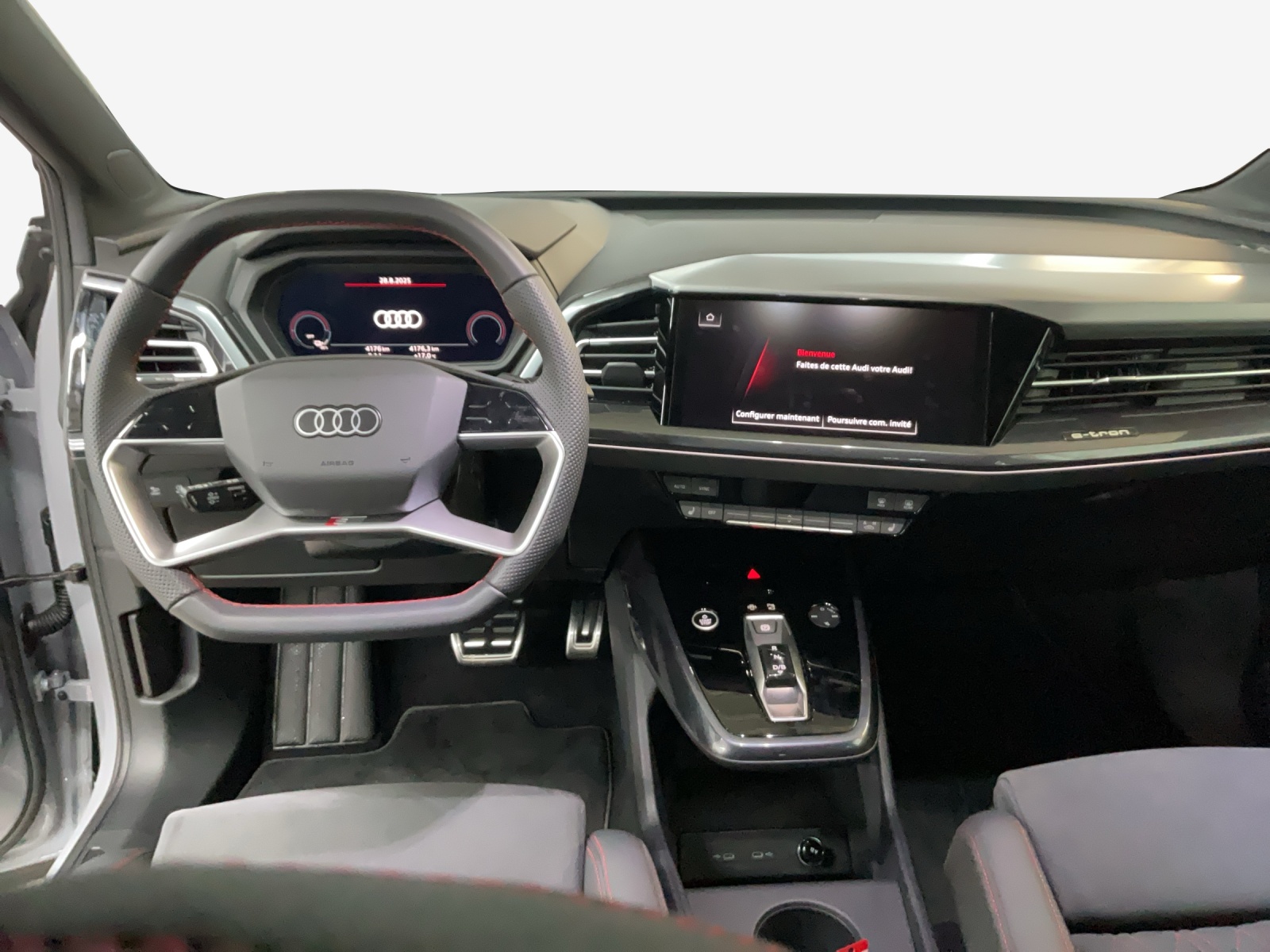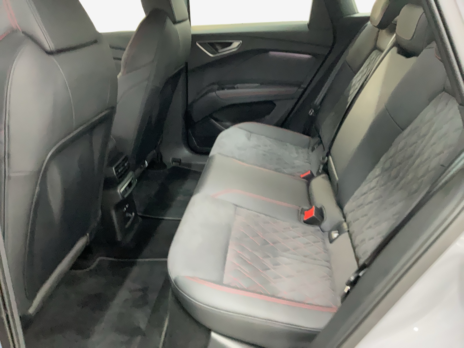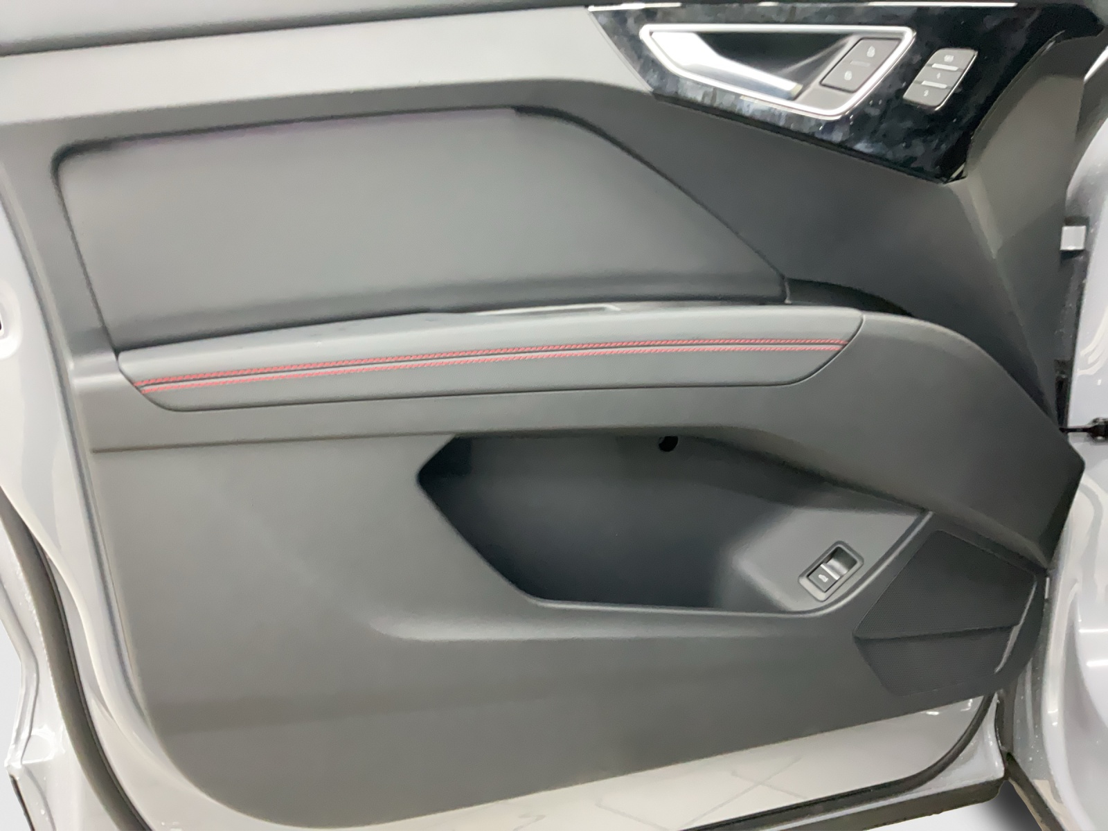 Capot de coffre électrique avec déverrouillage de coffre piloté par capteur Coutures de couleur rouge Audi Sport Lumière: Phares à LED Audi Matrix Pack: Forfait climatisation Pack: Intérieur S line avec sièges sport en combinaison microfibre Dinamica / cuir synthétique noir Pack: Le pack Esthétique noir plus Pack: Pack Infodivertissement Suisse Pack: Pack confort Suisse Pack: Pack extérieur avancé Pas de lettrage performance / technologie Prise industrielle CEE 16A, 400V, longue et droite pour le système de charge e-tron Roues: Jantes en alliage léger, Aero à 5 branches en W, gris graphite, brillant Rétroviseurs extérieurs en noir Système de recharge compact e-tron