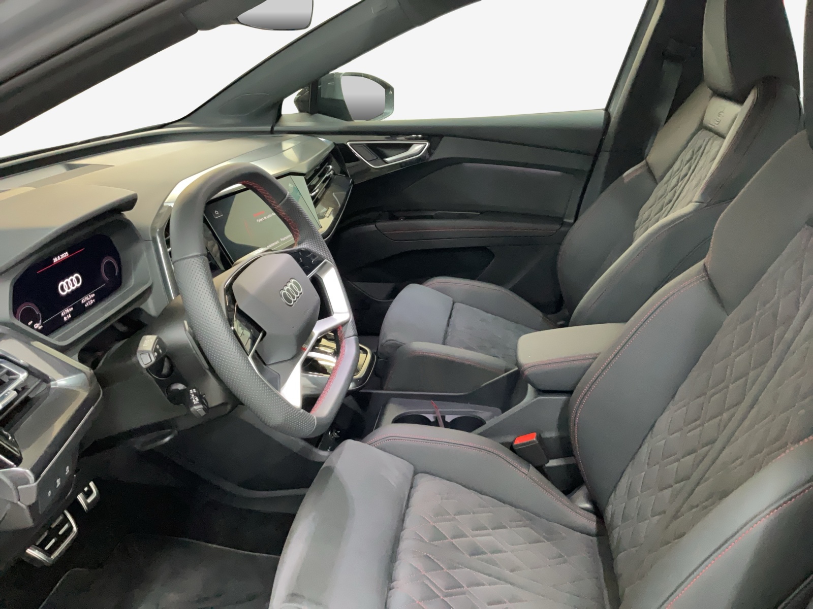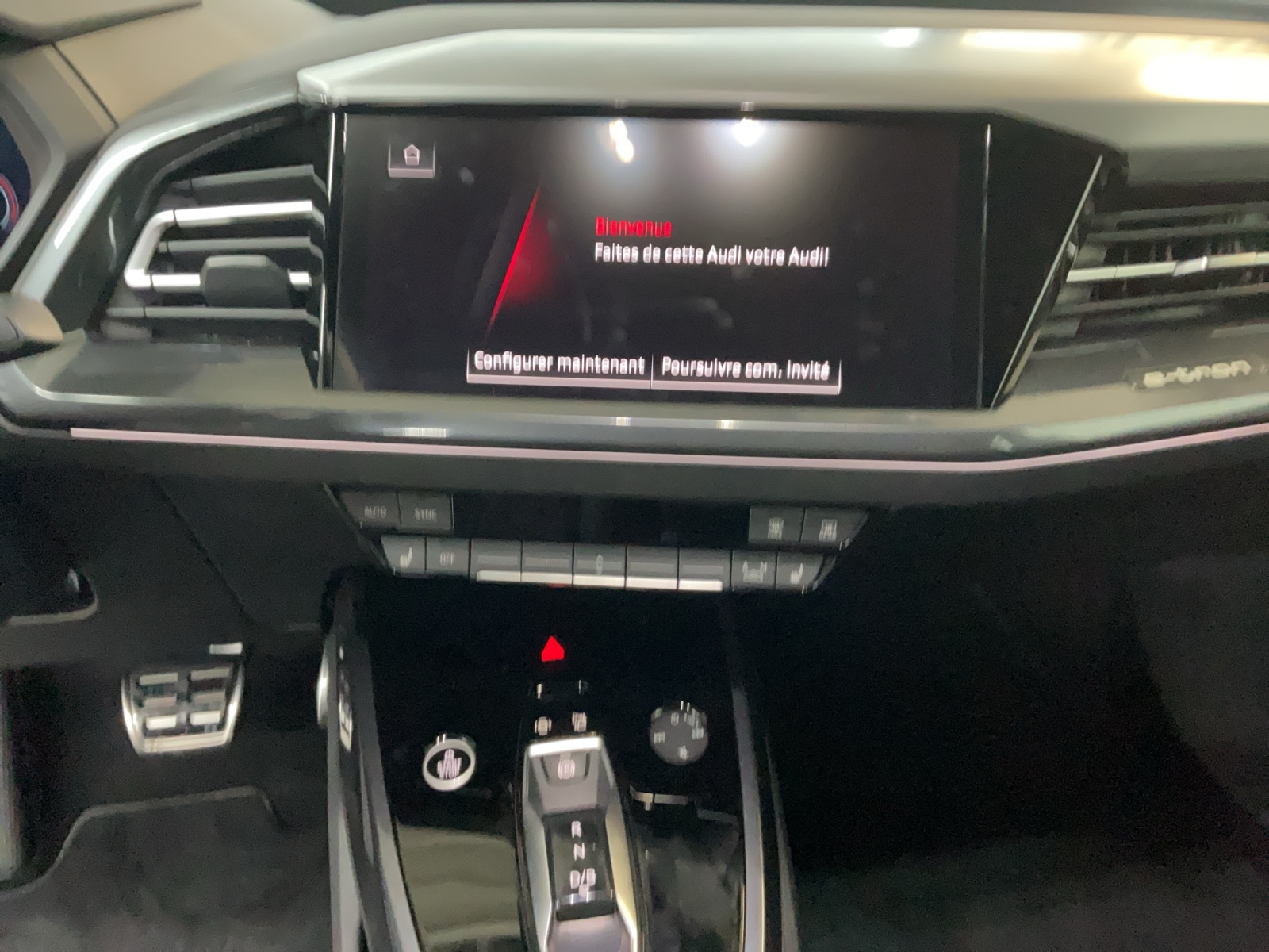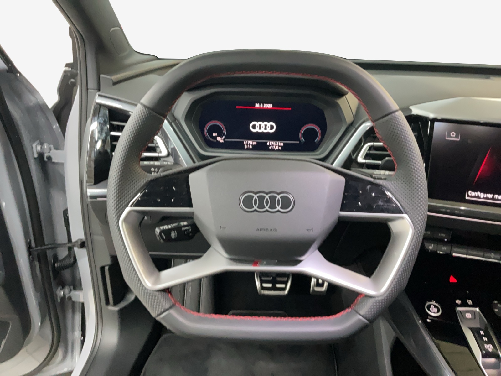 Capot de coffre électrique avec déverrouillage de coffre piloté par capteur Coutures de couleur rouge Audi Sport Lumière: Phares à LED Audi Matrix Pack: Forfait climatisation Pack: Intérieur S line avec sièges sport en combinaison microfibre Dinamica / cuir synthétique noir Pack: Le pack Esthétique noir plus Pack: Pack Infodivertissement Suisse Pack: Pack confort Suisse Pack: Pack extérieur avancé Pas de lettrage performance / technologie Prise industrielle CEE 16A, 400V, longue et droite pour le système de charge e-tron Roues: Jantes en alliage léger, Aero à 5 branches en W, gris graphite, brillant Rétroviseurs extérieurs en noir Système de recharge compact e-tron