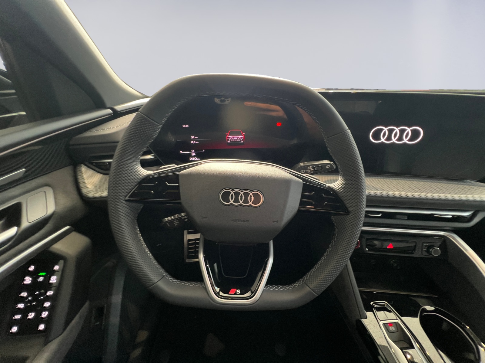 Audi Garantie: 4 ans ou 80'000 km Boîtier de rétroviseur extérieur en noir Pack: Pack Extérieur noir Peinture: Peinture intégrale Roues: Jantes Audi Sport, design multibranches en S, noir métallisé, or néodyme mat, finition brilla Sièges: Siège conducteur et rétroviseur extérieur avec fonction de mémoire Suspension: Châssis adaptatif à suspension pneumatique S Vitrage de contrôle solaire, obscurci