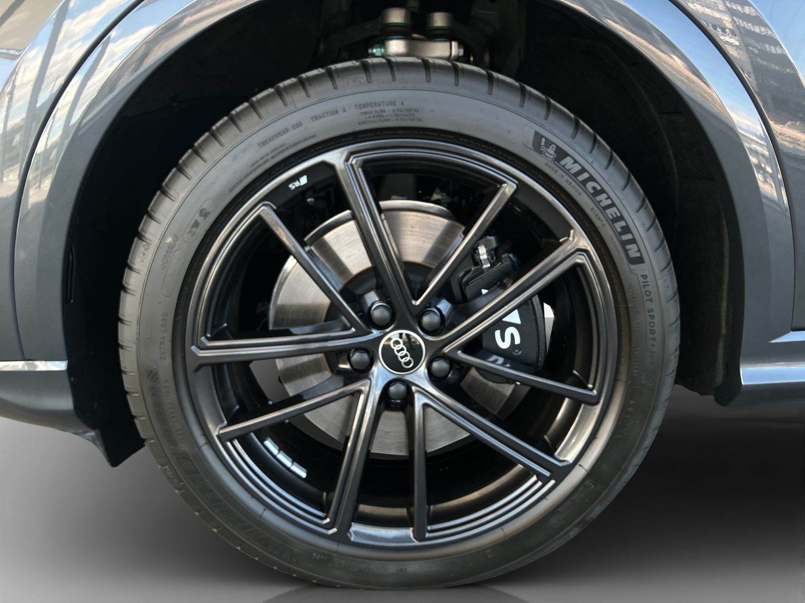 Assist: Adaptiver Fahrassistent plus Aussenspiegelgehäuse in Schwarz Dekor: Dekoreinlage Carbon Mikro-Köper Struktur Dekor: Interieurapplikationen Vanadiumoptik Entfall Modellbezeichnung Fahrwerk: Adaptives S-Luftfederfahrwerk Lackierung: Tamboragrau Metallic in Volllackierung Paket: Ambiente Lichtpaket pro Paket: Exterieurpaket schwarz Paket: MMI experience pro Paket: Paket Premium experience SQ5 Räder: Räder Audi Sport, 5-Doppelspeichen, schwarz metallic Sitze: Fahrersitz und Aussenspiegel mit Memoryfunktion Sonnenschutzverglasung, abgedunkelt