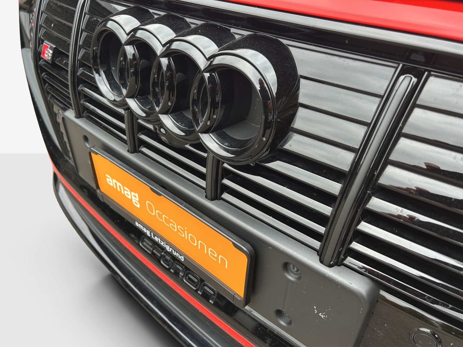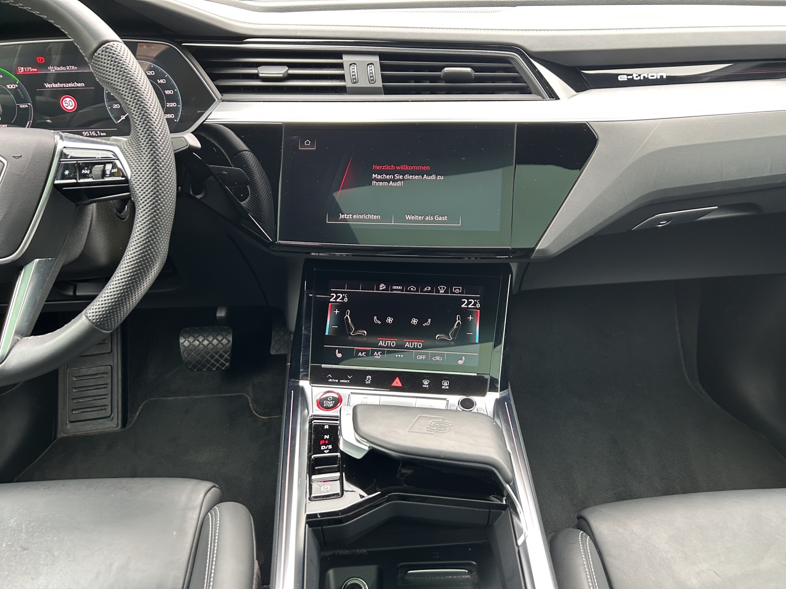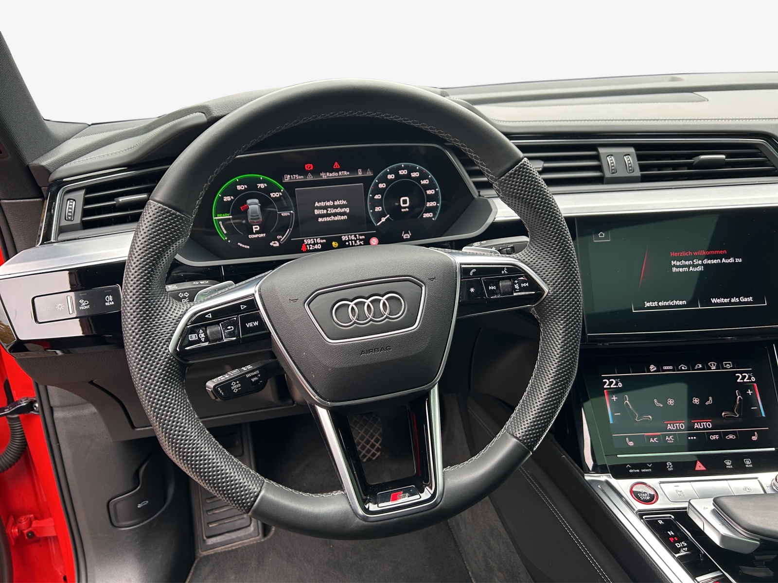 Airbag: Airbag Beifahrer deaktivierbar Airbag: Seitenairbags vorne Airbag: Window-Kopfairbags Akustisches Fahrzeug-Warnsystem (AVAS) Assist: Audi pre sense front Assist: Geschwindigkeitsregelanlage inklusive Geschwindigkeitsbegrenzer Assist: Spurverlassenswarnung Audi connect Notruf & Service mit Audi connect Remote & Control Audi virtual cockpit plus Aussenspiegel elektrisch einstell- und beheizbar, mit Memoryfunktion Aussenspiegelgehäuse in Aluminiumoptik Bedientasten schwarz matt Dekor: Dekoreinlagen Aluminium matt gebürstet dunkel Einparkhilfe plus mit Umgebungsanzeige Einstiegsleisten mit Aluminiumeinlegern vorne und hinten, beleuchtet, vorne mit S-Schriftzug Elektronisches Stabilitäts-Programm (ESP) Fahrwerk: Adaptive air suspension sport Frontscheibe in Wärmeschutz- und Akustikverglasung Fussmatten vorne und hinten Garantie: 2 Jahre ohne Kilometerbegrenzung (ab 1. Inv.) Gepäckraumabdeckung (manuell) Gepäckraumklappe elektrisch öffnend und schliessend Haushaltsstecker Typ J (CH) Industriestecker CEE 16A, 400V, lang und gerade für das e-tron Ladesystem Innenspiegel automatisch abblendbar Kindersitzbefestigung ISOFIX und Top Tether für die Rücksitzbank Kindersitzvorrichtung ISOFIX Beifahrerseite Klima: 2-Zonen-Komfortklimaautomatik Klima: Standklimatisierung Komfortmittelarmlehne vorne Lackierung: Uni-Lackierung Lenkrad: Lederlenkrad 3-Speichen mit Multifunktion und Schaltwippen Licht: LED-Scheinwerfer mit Vorbereitung für weitere Lichtfunktionen und LED-Heckleuchten Licht: Scheinwerfer-Reinigungsanlage Media: Audi connect Navigation & Infotainment Media: Audi music interface Media: Bluetooth-Schnittstelle Media: Digitaler Radioempfang (DAB) Media: MMI Navigationssystem Plus Modellbezeichnung und Leistungs- / Technologie-Schriftzug On-Board-Ladegerät bis 11 kW (AC) Polster: Mikrofaser Dinamica Frequenz/Leder-Kombination mit S-Prägung Räder: Leichtmetallräder, 5-V-Speichen (S-Design) Räder: Reifendruck-Kontrollanzeige Räder: Reifenreparatur-Set (Tire Fit) S line-Emblem im Kühlerschutzgitter Sitze: 4-Wege-Lendenwirbelstütze für die Vordersitze Sitze: Vordersitze elektrisch verstellbar, Fahrersitz mit Memory-Funktion Sonnenblende Fahrer und Beifahrerseite mit beleuchtetem Spiegel Stossfänger S-Modell in Volllackierung Unterfahrschutz vorne und Diffusor hinten in sportlich markantem Design in Selenitsilber matt Verbandmaterial und Warndreieck e-tron Ladesystem kompakt