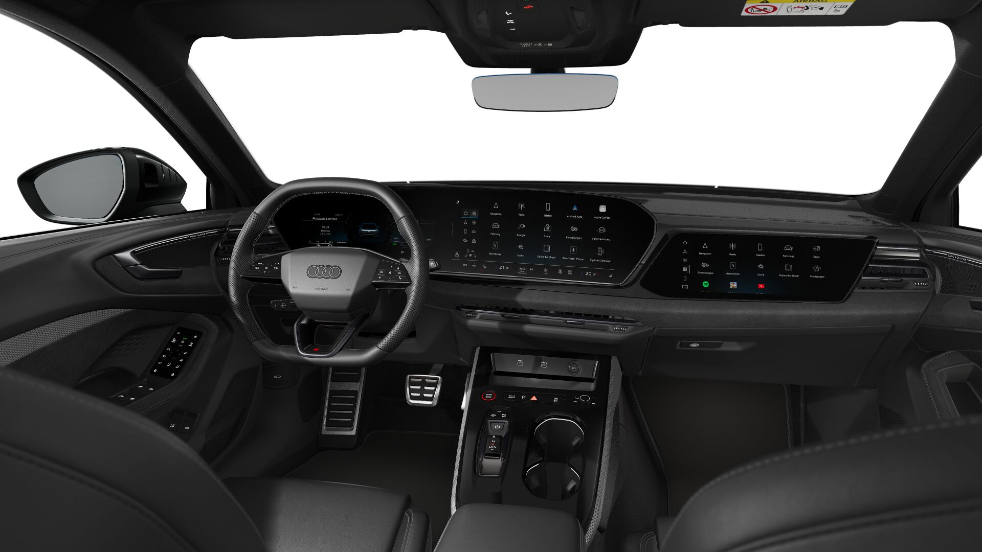 [0E] mythosschwarz metallic [1D4] Anhängevorrichtung (zulässige Anhängelasten siehe Schweiz. Typengenehmigung/Datenblatt) [4K5] Komfortschlüssel ohne Safelock [2F1] Digitaler Schlüssel [6I5] Spurverlassenswarnung mit Notfallassistent [3L5] Vordersitze elektrisch einstellbar [5MV] Dekoreinlagen Aluminium matt gebürstet mit Linearprägung anthrazit [70V] Haushaltsstecker Typ J (Schweiz) für das e-tron Ladesystem [9VS] Bang & Olufsen Premium Sound System mit 3D Klang [5P2] Insassenerkennung im Fond [73J] Industriestecker CEE 16A, 400V, für das e-tron Ladesystem [A41] Audi Swiss Service Package+ [79H] Spurwechselwarnung inkl. Ausstiegswarnung und Querverkehrsassistent hinten [AI1] Memory-Funktion für den Fahrersitz und die Außenspiegel [EA5] Anschlussgarantie 4. Jahr, max. 80'000 km, (netto) [NJ2] Mit Lade-Dock (Wandhalterung) Ausf.2 [GA2] Komfort-Standklimatisierung [NW1] e-tron Ladesystem kompakt [PWN] Interieur S mit Sportsitzen in Mikrofaser Dinamica/Leder-Kombination schwarz [GX] schwarz - stahlgrau [PAH] Exterieurpaket schwarz [PY2] Exterieur S line [QL5] abgedunkelte Sonnenschutzverglasung [PQ2] Tech plus [PYH] MMI experience pro [QQ2] Ambiente-Lichtpaket plus [QJ3] Interieurapplikationen Vanadiumoptik [WKD] Paket Premium business