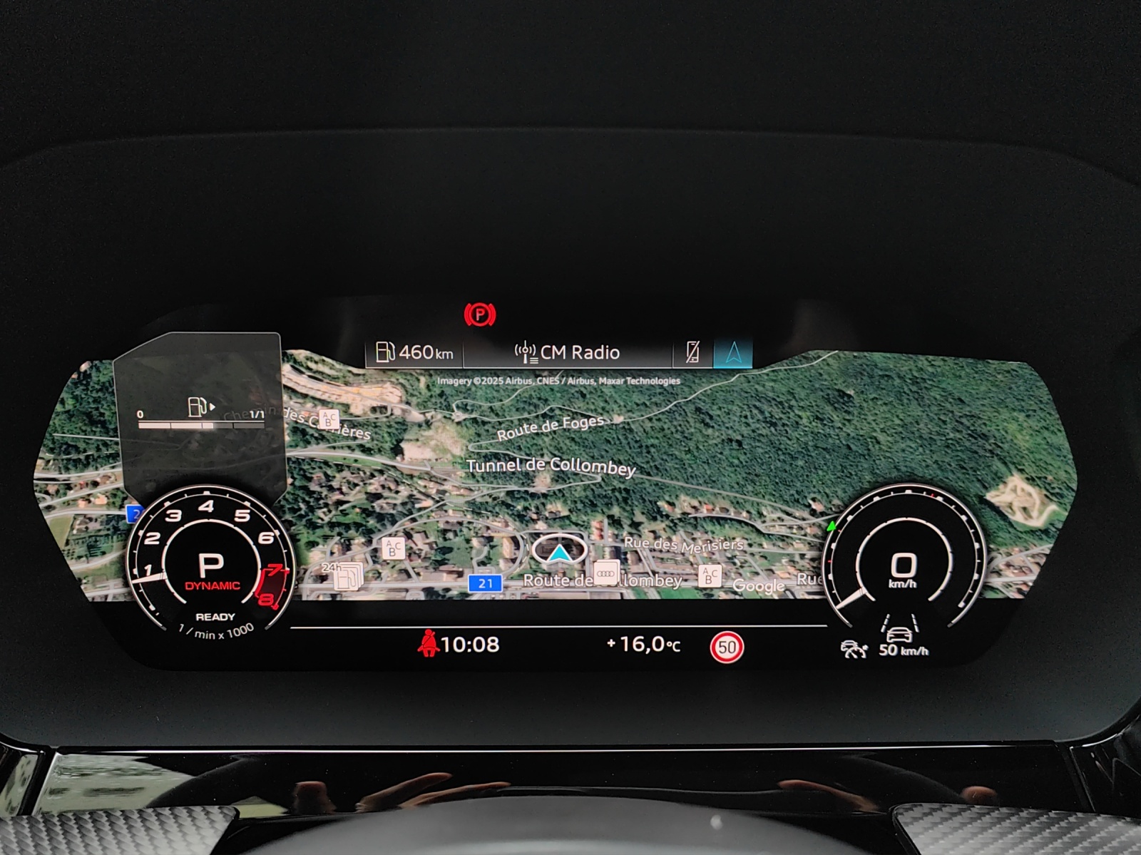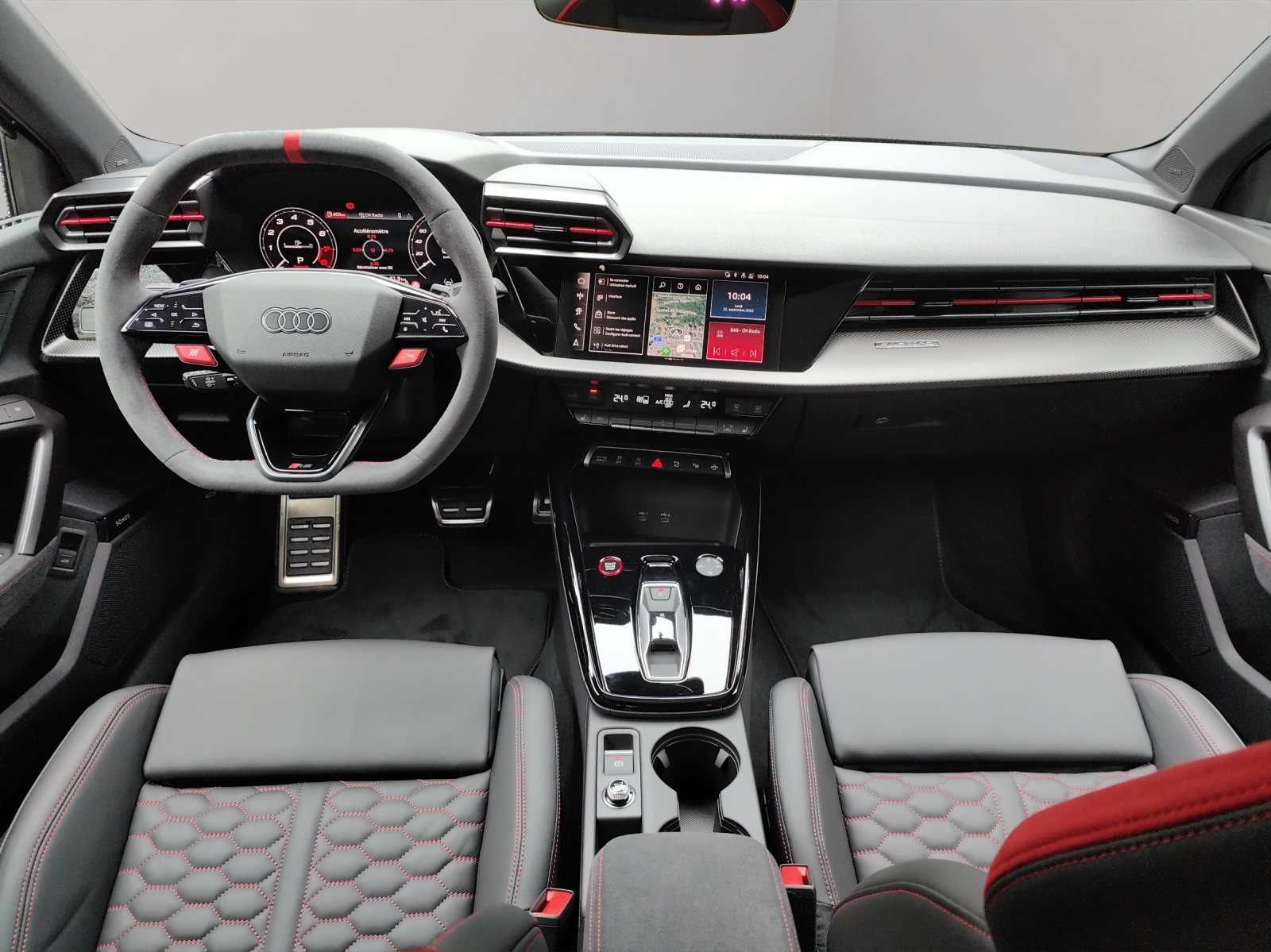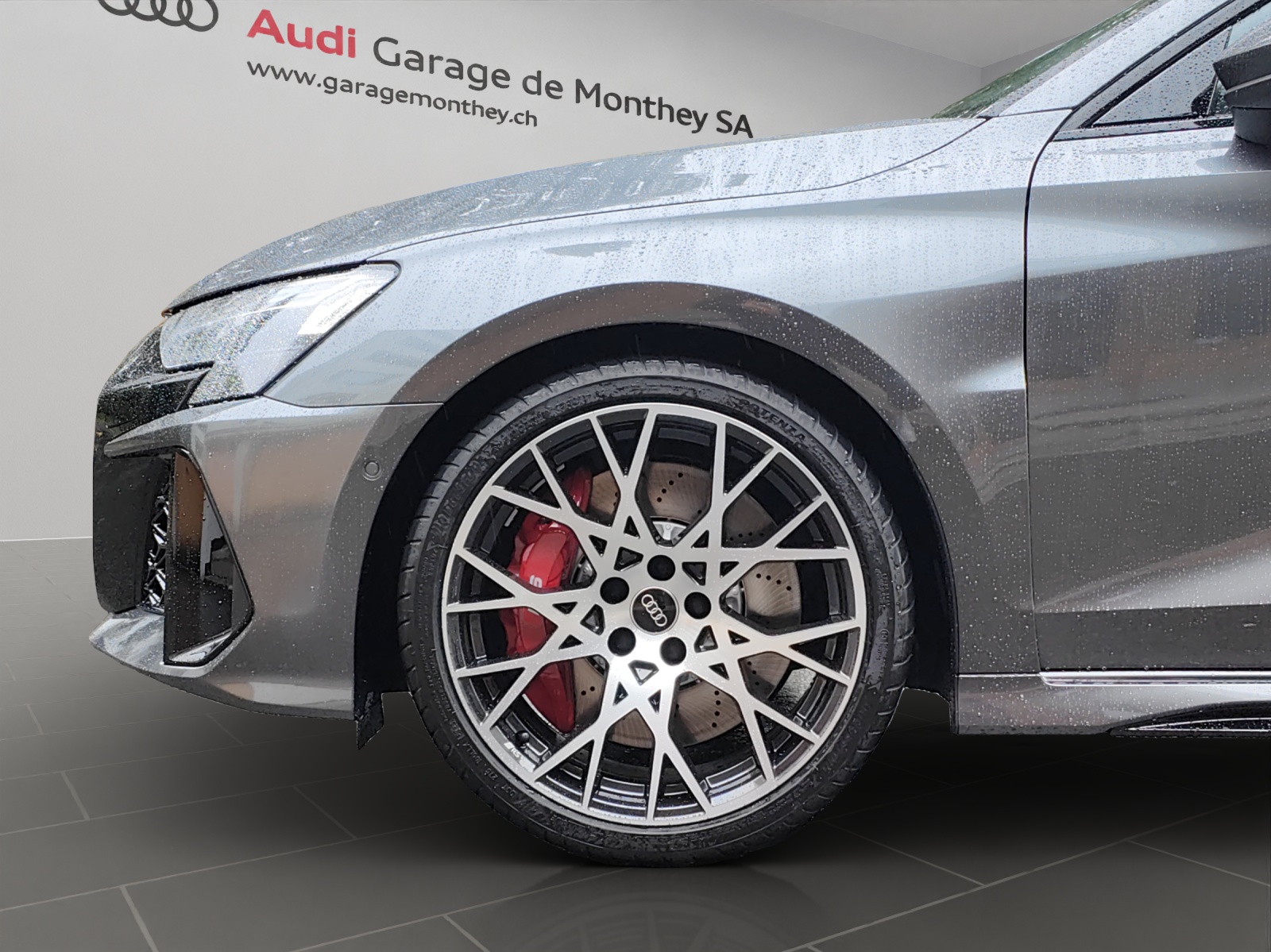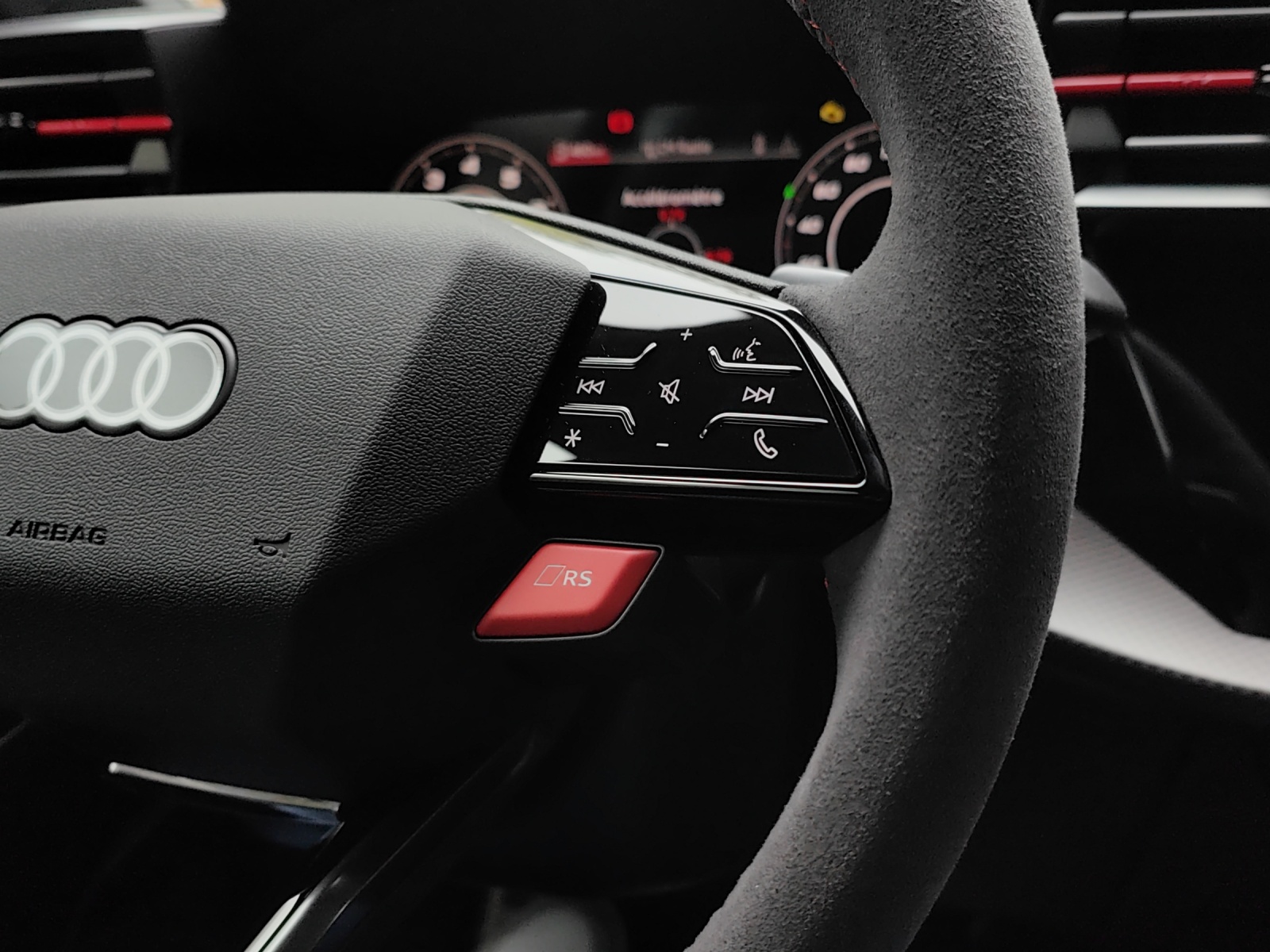 Équipement standard Airbag latéral à l’avant, avec airbag latéral de tête et airbag interactif à l’avant Airbag: Airbags pour conducteur et passager avant avec désactivation de l’airbag passager avant Appel d'urgence statutaire Assist: Assistant d’évitement de collision et de changement de direction Assist: Audi pre sense front Assist: Détecteur de distraction et de fatigue Assist: Limiteur de vitesse jusqu’à 250 km/h Assist: Reconnaissance des panneaux de signalisation par caméra Assist: Régulateur de vitesse avec préparation de l’assistant de vitesse adaptatif Assist: contrôle de traction Audi connect Navigation & Infotainment plus Boîte: Boîte de vitesses manuelle automatisée à 7 rapports Ciel de pavillon en tissu noir Climat: climatisation automatique confort 2 zones Clé de confort sans Safelock Clé à télécommande sans verrouillage de sécurité Cockpit virtuel Audi plus mit zusätzlichem RS-Layout Décor: Applications d’intérieur aspect vanadium Décor: Décor Inlay Structure Carbone Atlas Détecteur de luminosité et de pluie Garantie: Audi Garantie 2 ans / kilométrage illimité Lumière: Feux de circulation diurnes Lumière: Éclairage du seuil de porte à LED avec projection RS à l’avant Lumiére: Feu arrière foncé LED avec clignotant dnymique Lunette arrière, porte arrière et vitres latérales en verre transparent Lève-vitres électrique avant Media: Audi connect Notruf & Service mit Audi connect Remote & Control Control Mèdias: Audi Application Store et interface pour smartphone Mèdias: Ports USB avec fonction de chargement à l'arrière Mèdias: Prise en charge LTE pour la cabine téléphonique Audi Mèdias: Réception radio numérique Médias: système de navigation MMI Plus avec MMI touch Pack: Le pack Esthétique noir plus Pack: Pack Assistance conduite et stationnement plus Pack: Pack éclairage d’ambiance pro Programme de stabilité électronique ESP Pédale en acier inoxydable Roues: Affichage du contrôle de la pression des pneus Roues: Jantes à 5 rayons en Y, noir mat Roues: Set de réparation pour les pneus Rétroviseurs extérieurs en noir Sièges: Commande de bouclage des ceintures avec détection d'occupation des sièges arrière Sièges: Sièges avant à réglage manuel Sièges: dossier de siège arrière, partiellement rabattable Sièges: soutien lombaire 4 directions pour les sièges avant Suspension: Freins en acier RS à l’avant avec étriers de frein en noir brillant Suspension: suspension sport RS Système antiblocage des roues (ABS) Système de nettoyage des phares Tissu: Combinaison microfibre Dinamica/similicuir avec surpiqûres en losanges et gaufrage RS Tissu: Variante de cuir 2 Trousse de premiers secours et triangle Verrouillage centralisé à télécommande Vitrage thermo-isolant et acoustique Pare-brise avec bande colorée grise Volant: Volant contour sport à 3 branches, aplati en haut et en bas Éléments extérieurs RS en noir mat