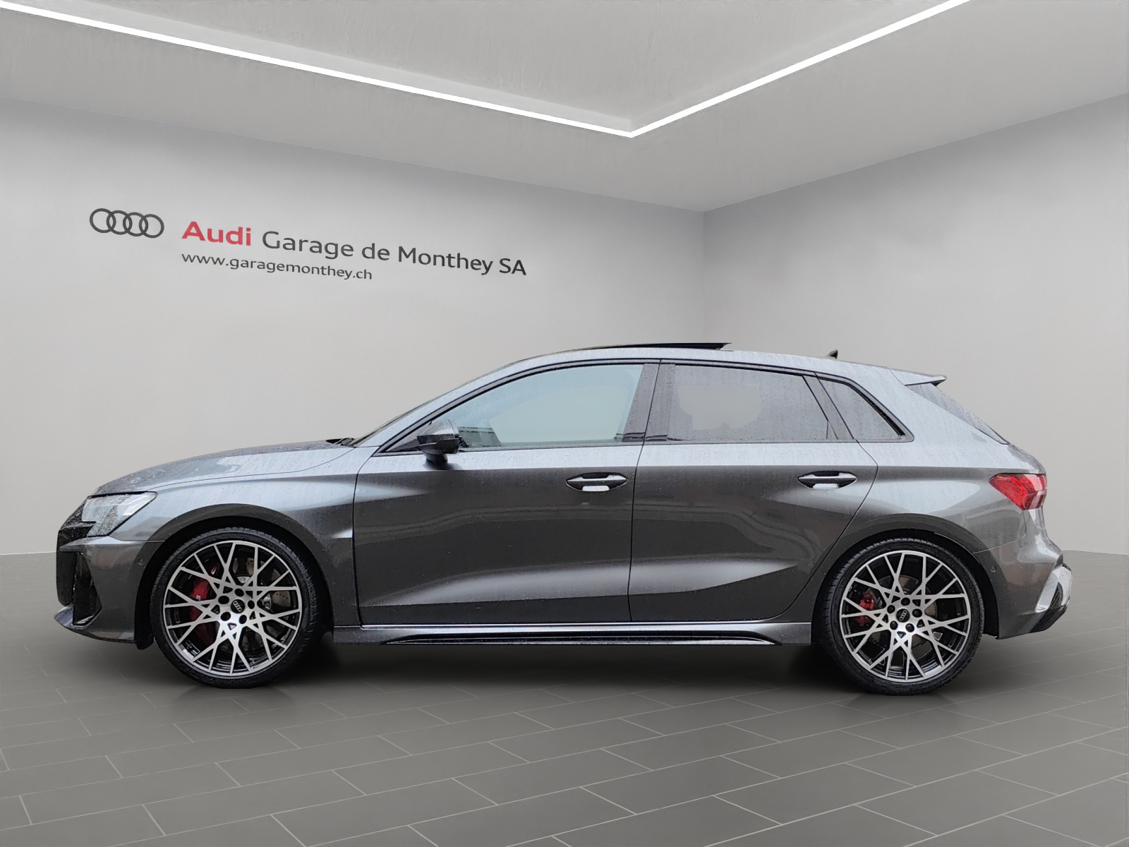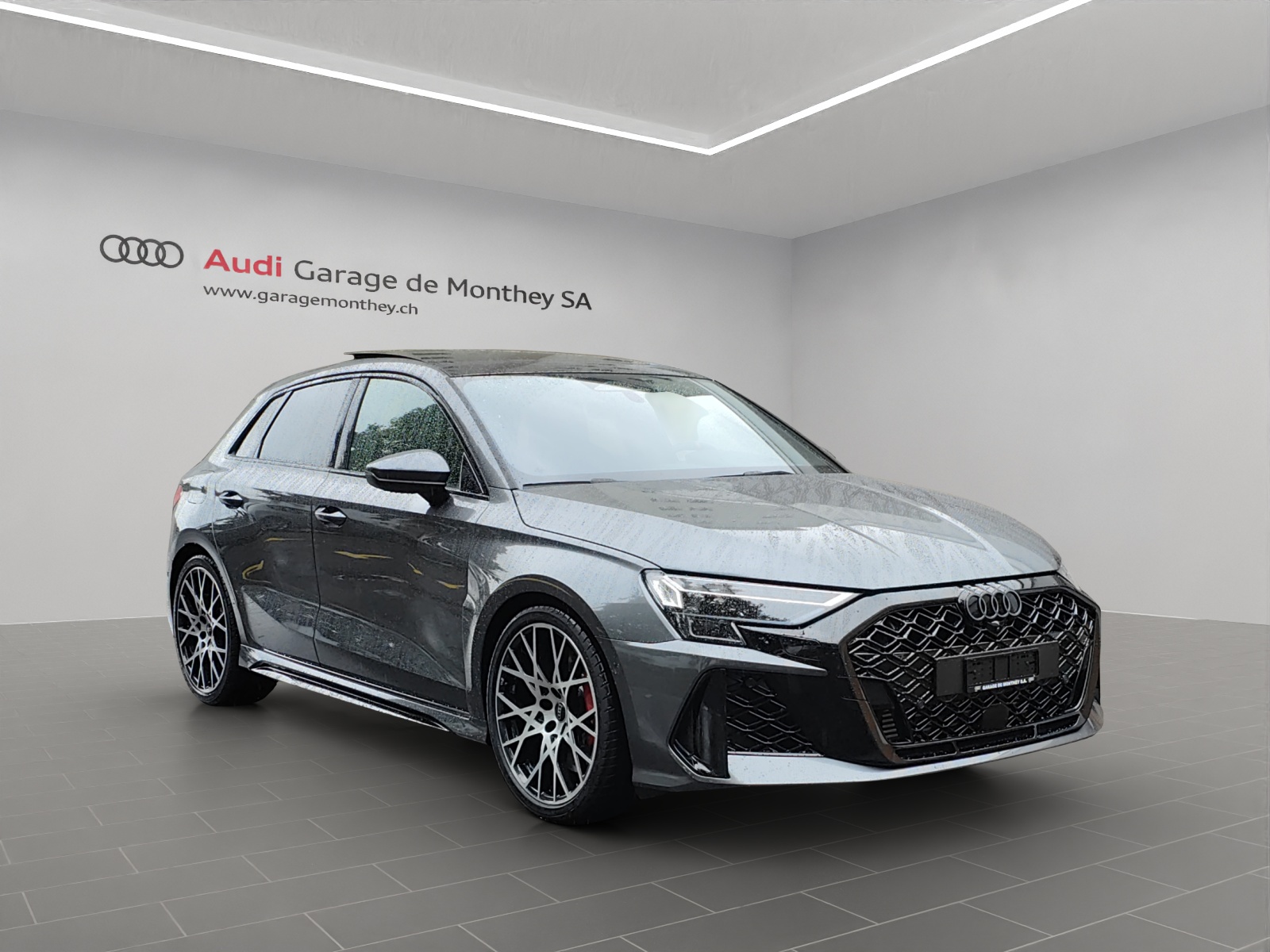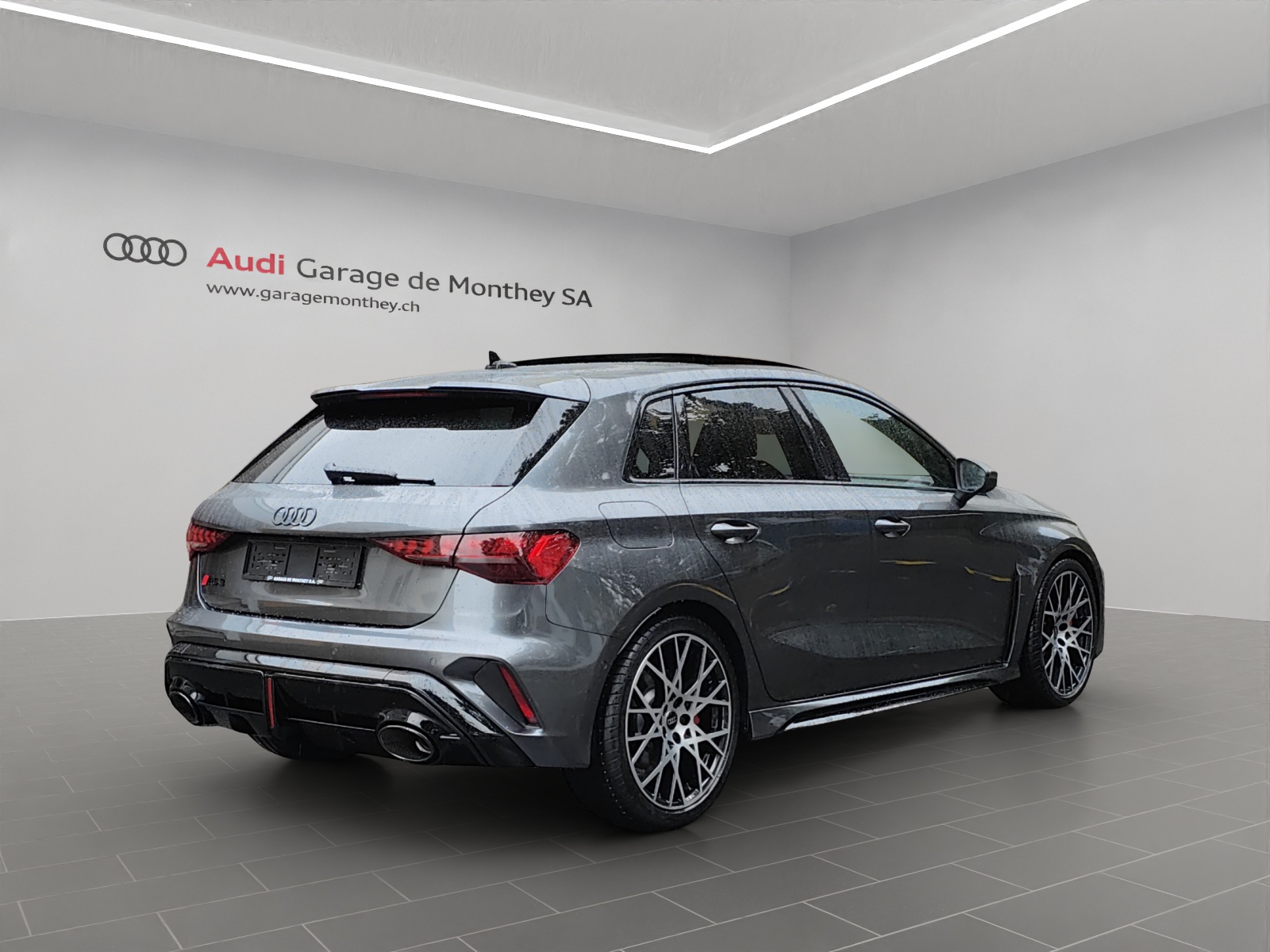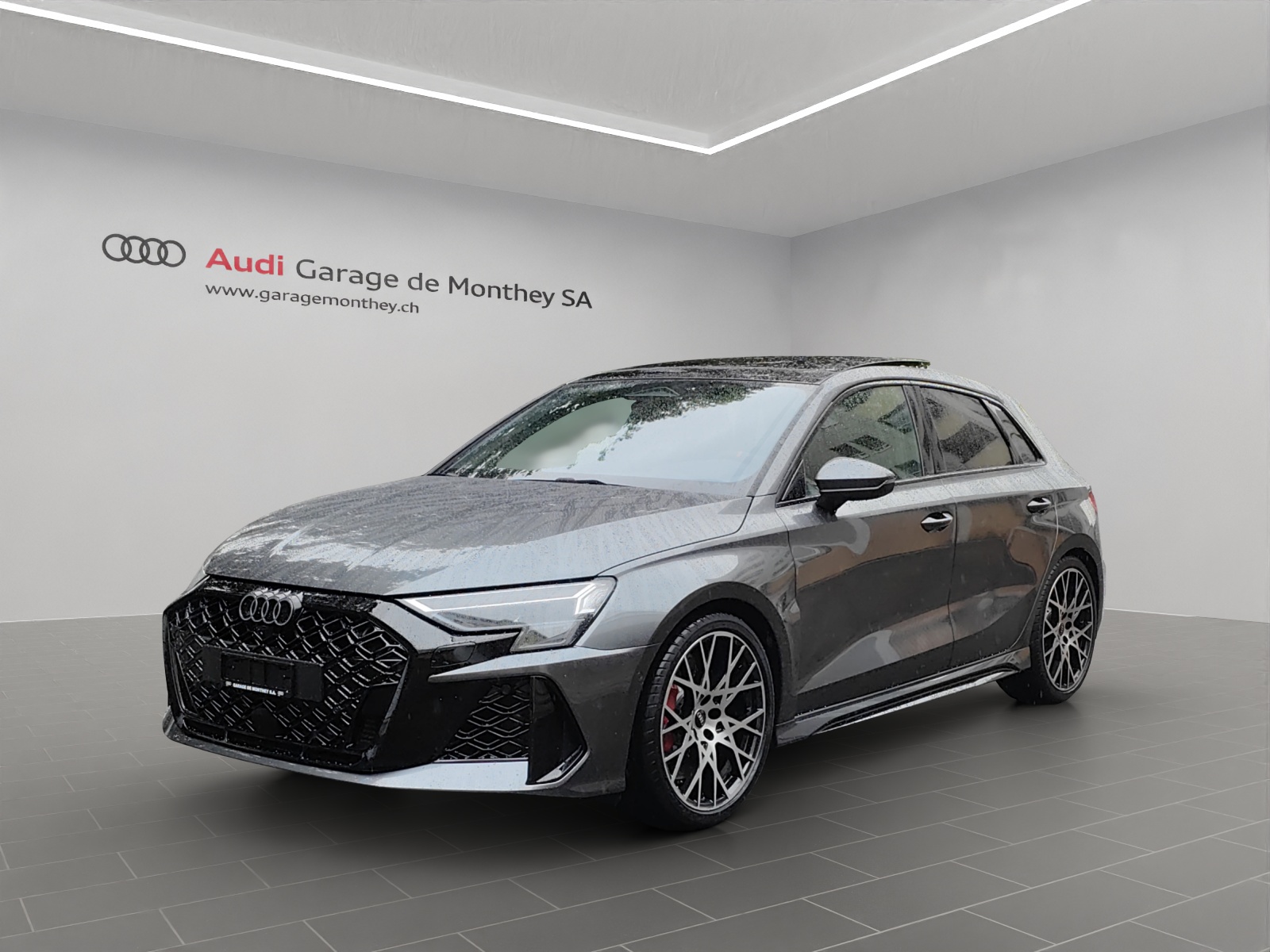 Équipement standard Airbag latéral à l’avant, avec airbag latéral de tête et airbag interactif à l’avant Airbag: Airbags pour conducteur et passager avant avec désactivation de l’airbag passager avant Appel d'urgence statutaire Assist: Assistant d’évitement de collision et de changement de direction Assist: Audi pre sense front Assist: Détecteur de distraction et de fatigue Assist: Limiteur de vitesse jusqu’à 250 km/h Assist: Reconnaissance des panneaux de signalisation par caméra Assist: Régulateur de vitesse avec préparation de l’assistant de vitesse adaptatif Assist: contrôle de traction Audi connect Navigation & Infotainment plus Boîte: Boîte de vitesses manuelle automatisée à 7 rapports Ciel de pavillon en tissu noir Climat: climatisation automatique confort 2 zones Clé de confort sans Safelock Clé à télécommande sans verrouillage de sécurité Cockpit virtuel Audi plus mit zusätzlichem RS-Layout Décor: Applications d’intérieur aspect vanadium Décor: Décor Inlay Structure Carbone Atlas Détecteur de luminosité et de pluie Garantie: Audi Garantie 2 ans / kilométrage illimité Lumière: Feux de circulation diurnes Lumière: Éclairage du seuil de porte à LED avec projection RS à l’avant Lumiére: Feu arrière foncé LED avec clignotant dnymique Lunette arrière, porte arrière et vitres latérales en verre transparent Lève-vitres électrique avant Media: Audi connect Notruf & Service mit Audi connect Remote & Control Control Mèdias: Audi Application Store et interface pour smartphone Mèdias: Ports USB avec fonction de chargement à l'arrière Mèdias: Prise en charge LTE pour la cabine téléphonique Audi Mèdias: Réception radio numérique Médias: système de navigation MMI Plus avec MMI touch Pack: Le pack Esthétique noir plus Pack: Pack Assistance conduite et stationnement plus Pack: Pack éclairage d’ambiance pro Programme de stabilité électronique ESP Pédale en acier inoxydable Roues: Affichage du contrôle de la pression des pneus Roues: Jantes à 5 rayons en Y, noir mat Roues: Set de réparation pour les pneus Rétroviseurs extérieurs en noir Sièges: Commande de bouclage des ceintures avec détection d'occupation des sièges arrière Sièges: Sièges avant à réglage manuel Sièges: dossier de siège arrière, partiellement rabattable Sièges: soutien lombaire 4 directions pour les sièges avant Suspension: Freins en acier RS à l’avant avec étriers de frein en noir brillant Suspension: suspension sport RS Système antiblocage des roues (ABS) Système de nettoyage des phares Tissu: Combinaison microfibre Dinamica/similicuir avec surpiqûres en losanges et gaufrage RS Tissu: Variante de cuir 2 Trousse de premiers secours et triangle Verrouillage centralisé à télécommande Vitrage thermo-isolant et acoustique Pare-brise avec bande colorée grise Volant: Volant contour sport à 3 branches, aplati en haut et en bas Éléments extérieurs RS en noir mat