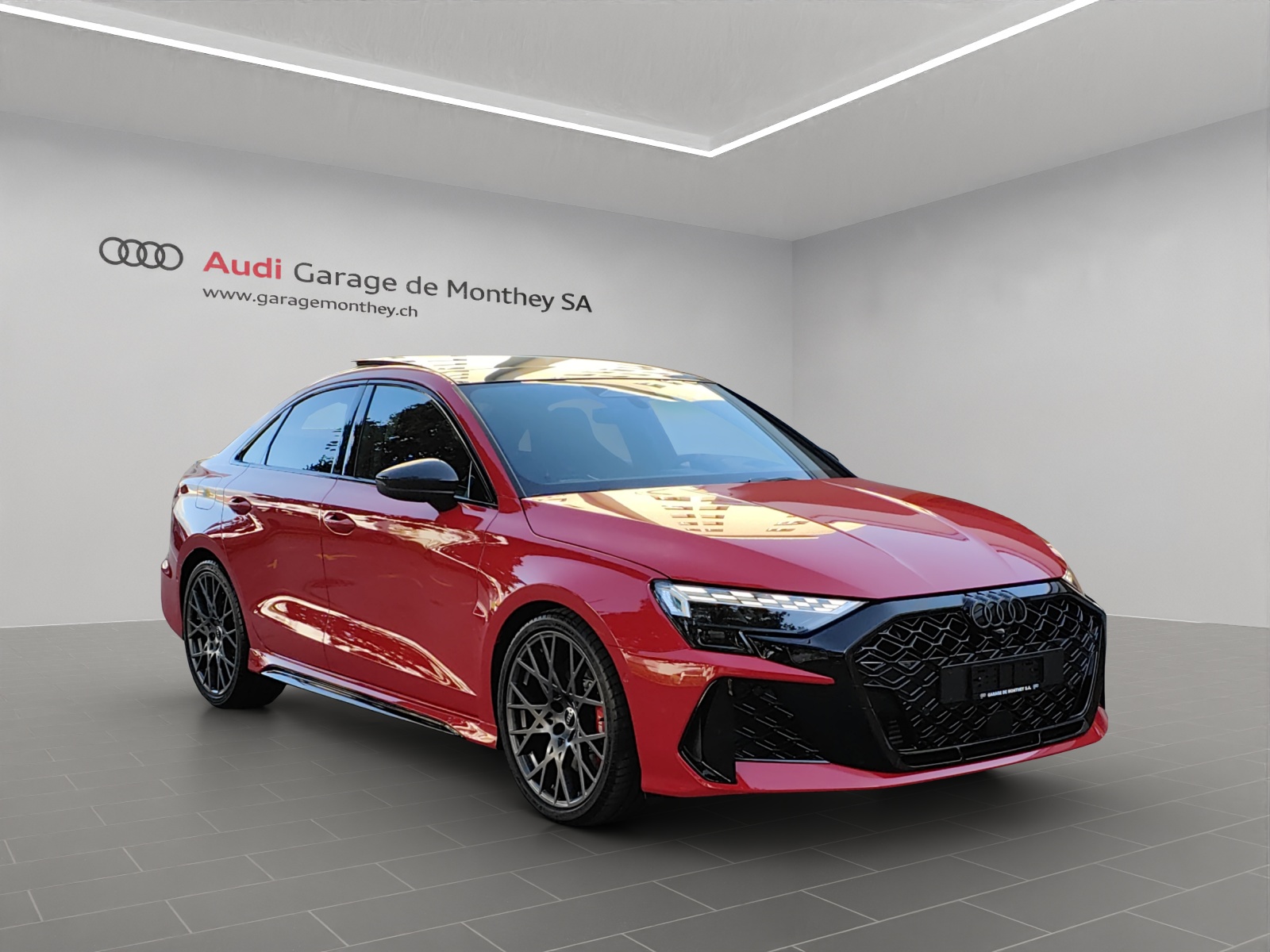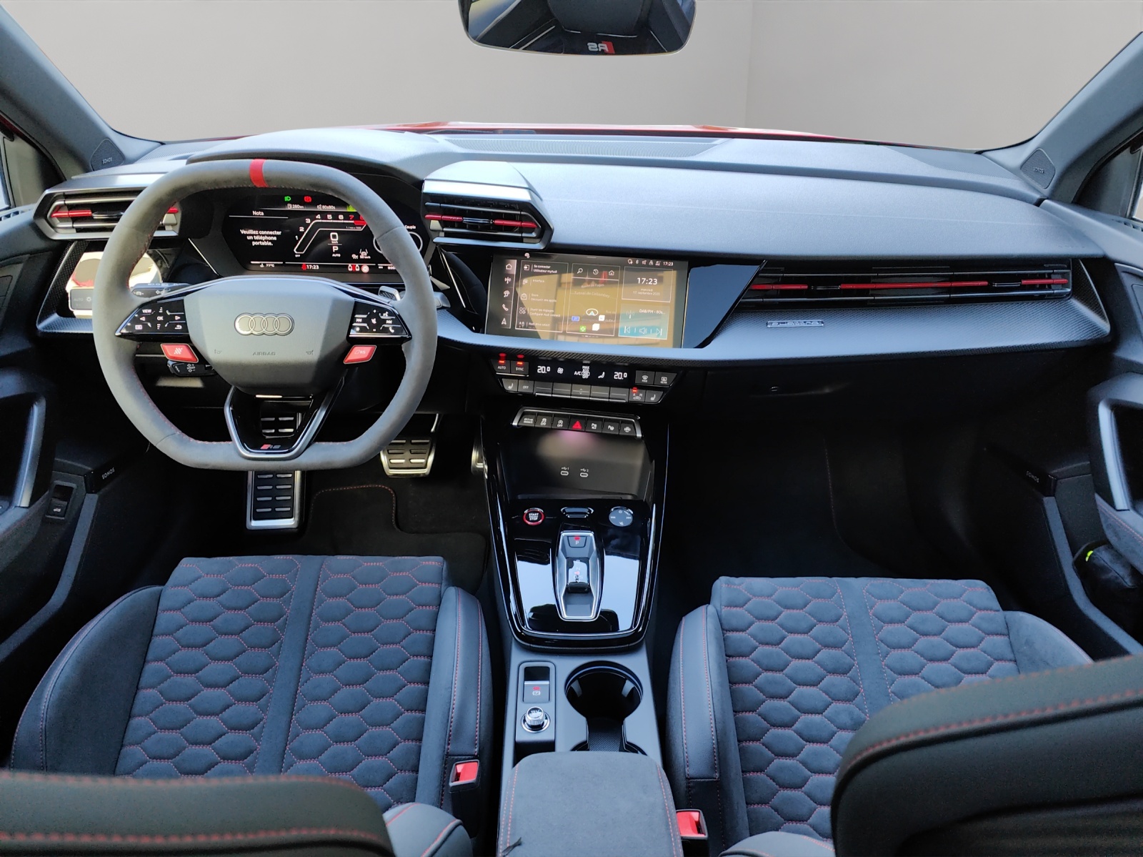 [4GF] Vitrage d'isolation thermique pour pare-brise [UH2] Assist: Assistant de maintien de voie [N1Y] Tissu: Combinaison microfibres Dinamica/cuir avec surpiqûres alvéolées - et inscription RS sur les dossiers des sièges avant [TG] noir - rouge exprès [B1] rouge progressif métallisé [7P0] Sans soutiens lombaires [A41] Garantie: Audi Swiss Service Package+ (ASSP+) - Réparation 3 ans ou 100000 km, entretien 10 ans ou 100000 km - Le premier réalisé s'applique [6E7] Décor: Éléments intérieurs inférieurs en microfibre Dinamica noir [0VB] Papiers français Véhicule CH / Services gratuits 10 ans ou 100'000 kms / Garantie usine 5 ans ou 100'000 kms / Leasing et reprise toutes marques possible / Remise flotte applicable