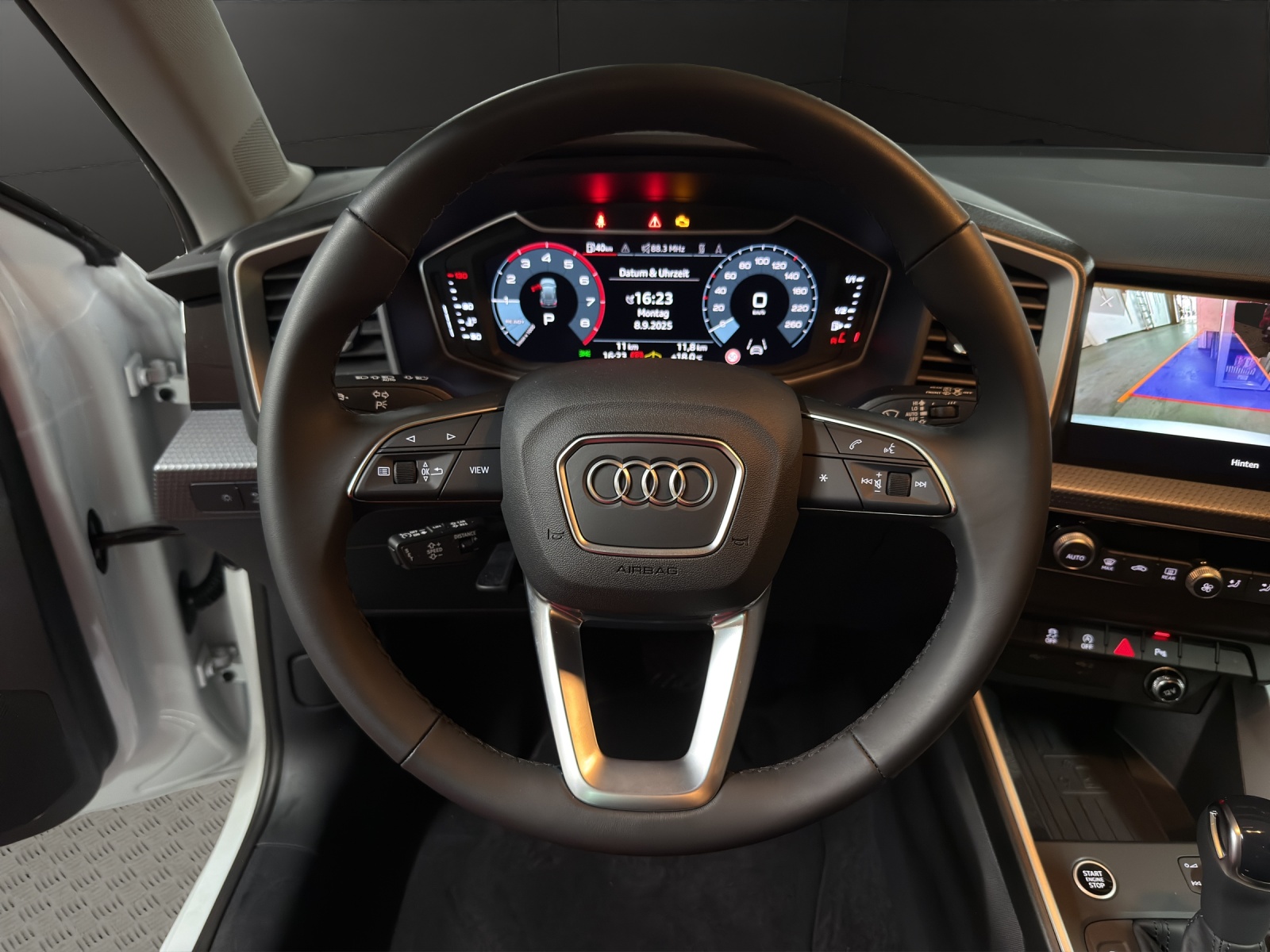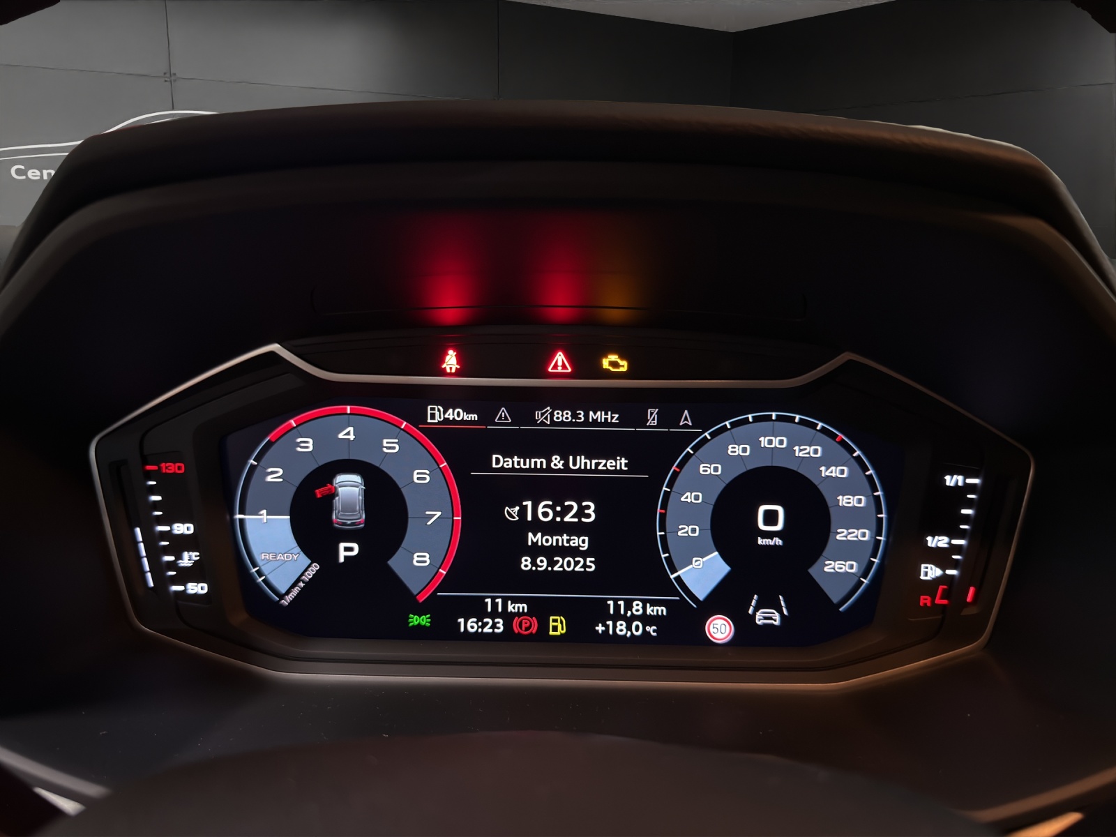 Équipement en option Assist: Geschwindigkeitsregelanlage Assist: Spurwechselwarnung Clé confort (sans verrouillage de sécurité) Dekor: Aluminiumoptik im Interieur Garantie: Audi Garantie: 5 Jahre oder 100'000 km (ab 1. Inv.) Klima: 2-Zonen-Komfortklimaautomatik Lackierung: Metallic-Lackierung Lumière: Phares à LED et feux arrière à LED avec clignotant dynamique Media: MMI Navigation plus mit MMI touch Pack: Pack compartiment à bagages Pas de lettrage performance / technologie Peinture: Toit de couleur contrastante Roues: Roues en fonte daluminium - 16 pouces - au design à 10 branches Rétroviseur intérieur photochromatique automatique Rétroviseurs extérieurs à réglage, dégivrage et rabattement électriques, avec dispositif automatique Sitze: Vordersitze heizbar Tissu: advanced avec siège normal (tissu Debüt)