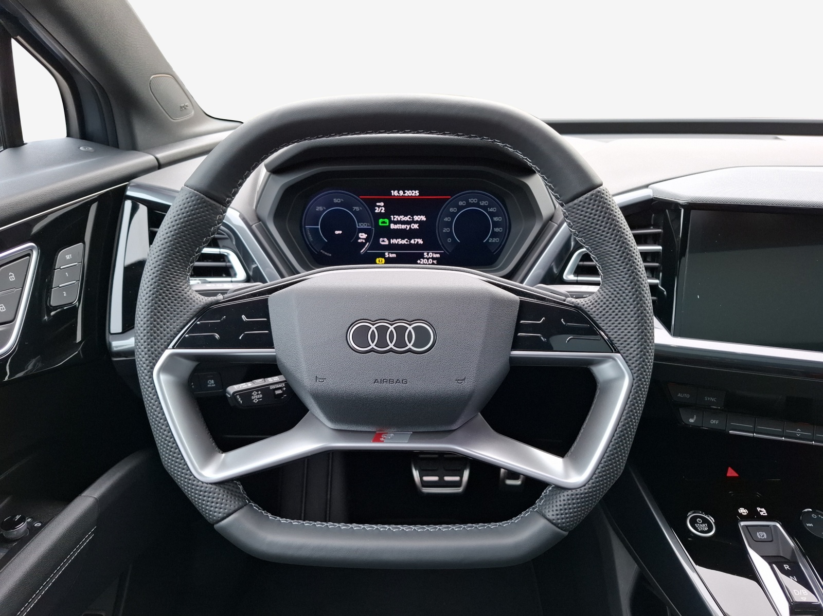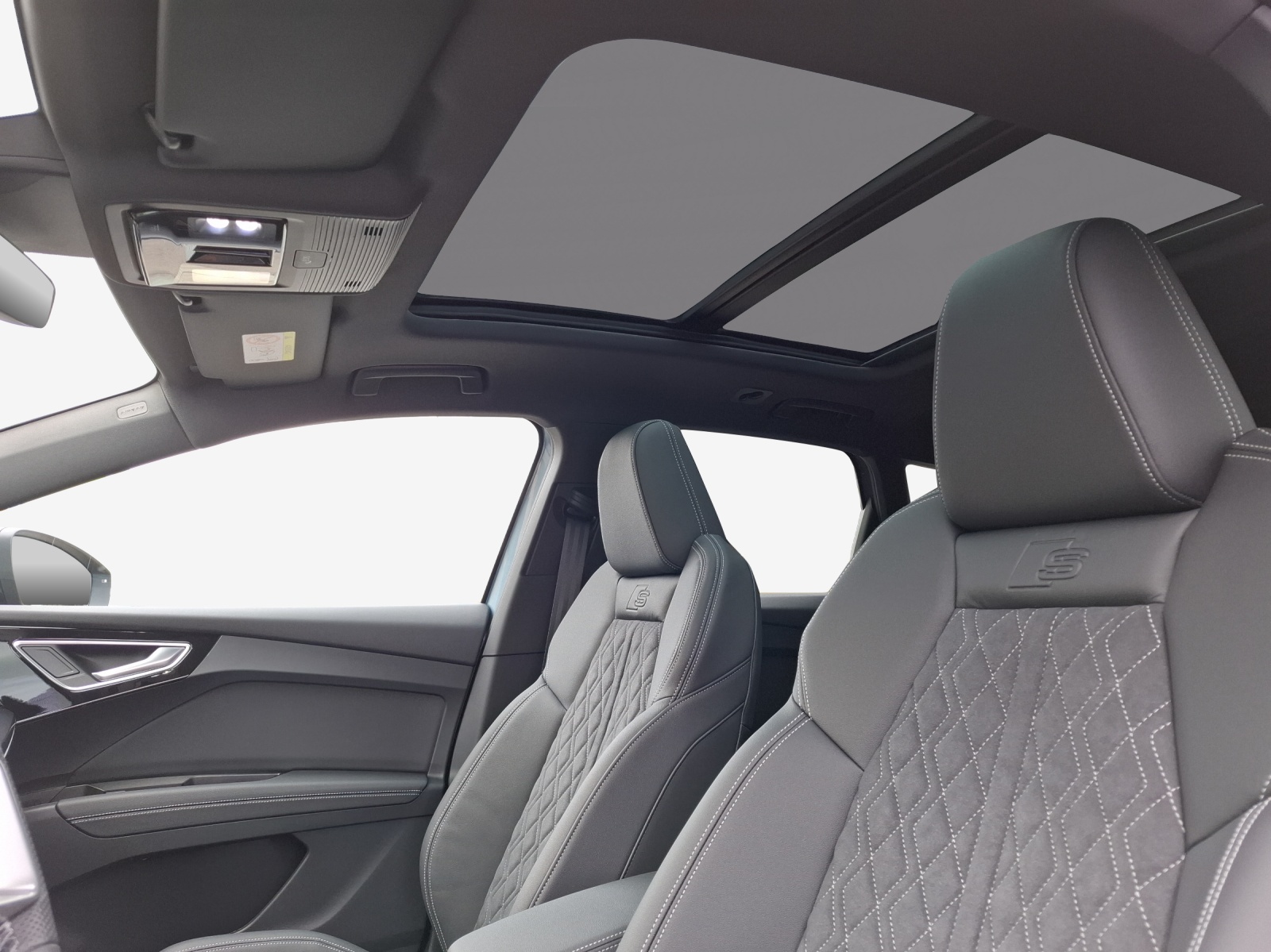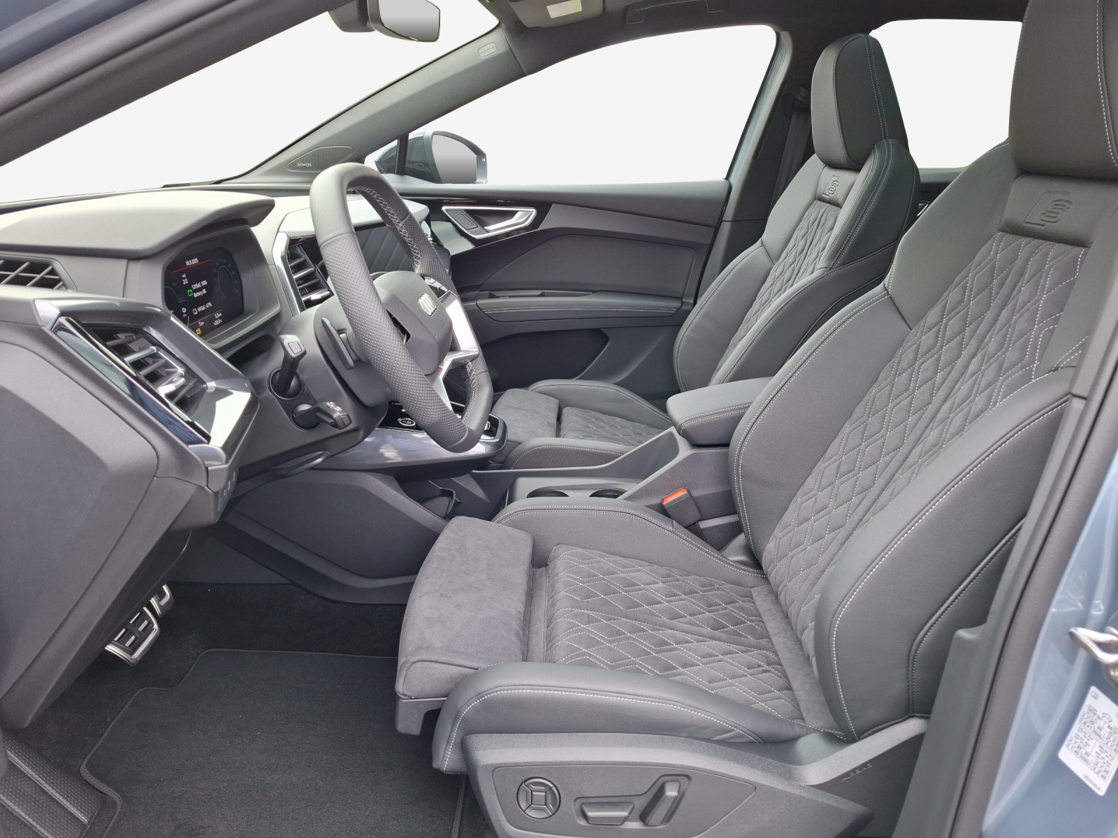 Akustikverglasung für Türscheiben vorn Dekor: Dekoreinlage Technikgewebe anthrazit Entfall Modellbezeichnung und Leistungs- / Technologie-Schriftzug Frontscheibe in Klimakomfort-/Akustikverglasung, drahtlos beheizbar Gepäckraumklappe elektrisch mit sensorgesteuerter Gepäckraumentriegelung Industriestecker CEE 16A, 400V, lang und gerade für das e-tron Ladesystem Komfortschlüssel ohne Safelock Lackierung: Metallic-Lackierung Media: SONOS Premium Soundsystem Paket: Ambiente Lichtpaket plus Paket: Interieur S line mit Sportsitzen in Mikrofaser Dinamica / Kunstleder-Kombination schwarz Paket: Klimatisierungspaket Paket: Optikpaket schwarz plus Paket: S line Exterieur Paket Privacy-Verglasung (Scheiben abgedunkelt) Räder: Leichtmetallräder, 5-Y-Speichen e-tron Ladesystem kompakt