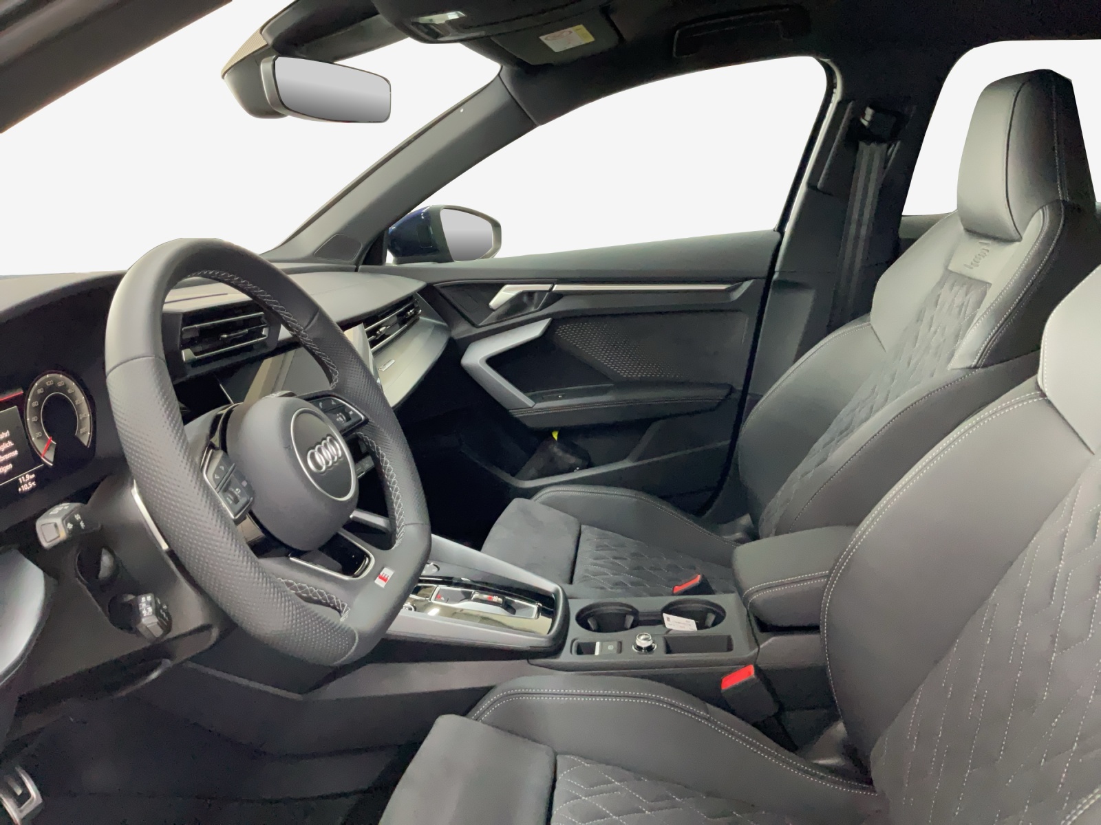 Assist: Alerte de changement de voie avec avertissement de sortie Assist: Assistance de stationnement avec aide au stationnement plus Assist: Assistant de maintien de voie Assist: Assistant de vitesse adaptative Clé de confort sans Safelock Décor: Application décorative en aluminium Spektrum foncé Lumière: Assistance aux feux de route Pack: Intérieur S avec sièges sport, combinaison microfibre Dinamica/similicuir noir Pack: Pack Assistance systèmes de protection et d’avertissement plus Pack: Pack climatisation plus Pack: Pack confort - Sportback Pack: Pack fonction sécurité Pack: Pack éclairage d’ambiance pro Pack: Phares avant LED et feux arrière LED avec clignotants arrière dynamiques Pare-brise avec vitrage athermique et acoustique avec bande de couleur grise Peinture: Peinture métallisée Roues: Jantes Audi Sport, 5 branches en Y, noir, finition brillante Sièges AV à réglage électrique Sièges: dossier de siège arrière, partiellement rabattable Vitrage de contrôle solaire, obscurci Volant: Volant sport en cuir contour à 3 branches