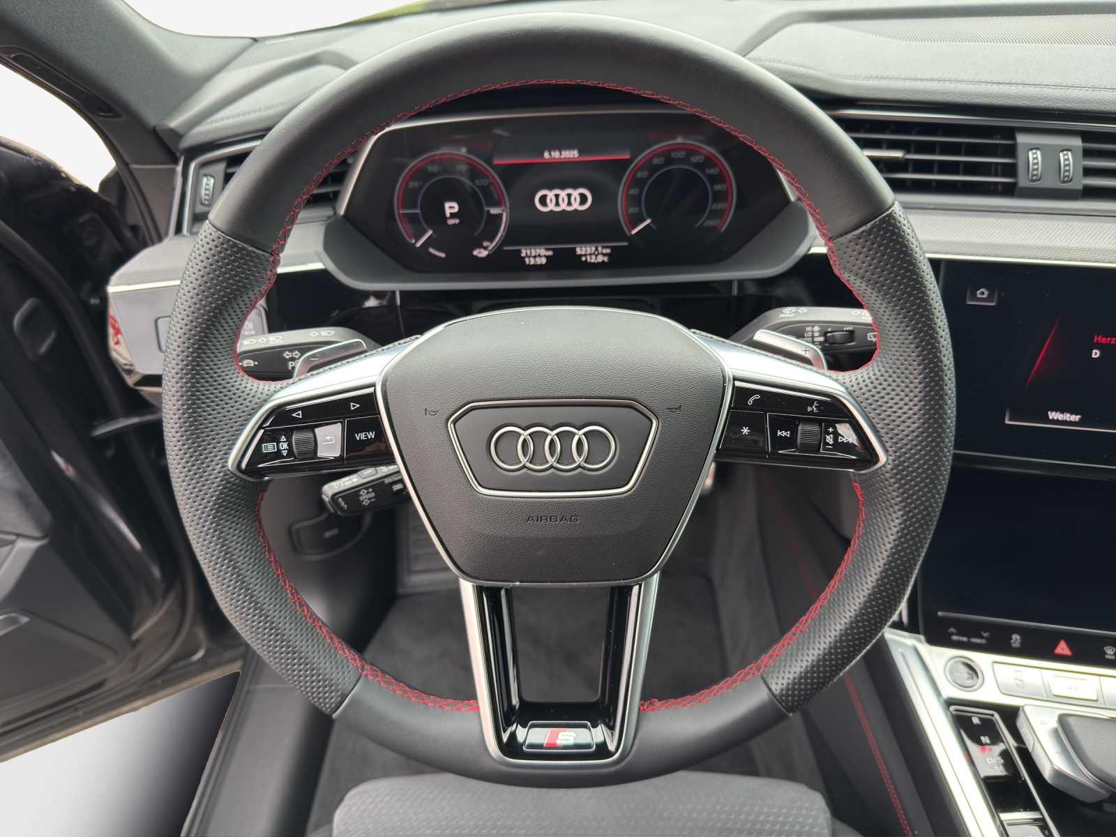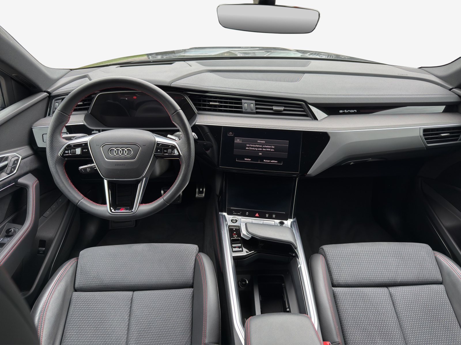 Serienausstattung 3-Punkt-Sicherheitsgurte auf allen Plätzen Airbag: Airbag Beifahrer deaktivierbar Airbag: Seitenairbags vorn und Kopfairbagsystem Akustisches Fahrzeug-Warnsystem (AVAS) Assist: Audi pre sense basic Assist: Audi pre sense front Assist: Einparkhilfe plus mit Umgebungsanzeige Assist: Geschwindigkeitsregelanlage plus Speedlimiter Assist: Kamerabasierte Verkehrszeichenerkennung Assist: Spurverlassenswarnung inkl. Notfallassistent Audi connect Notruf & Service mit Audi connect Remote & Control Aussenspiegel elektrisch einstell- und beheizbar Aussenspiegel in Wagenfarbe Dachhimmel in Stoff in spezifischer Farbe Dekor: Aluminiumeinleger in den Einstiegsleisten vorn und hinten, beleuchtet, vorn mit S-Schriftzug Dekor: Bedientasten schwarz matt Dekor: Dekoreinlagen Feinlack graphitgrau Dekor: Instrumententafel-Oberseite in Kunstleder Diffusor hinten in sportlich markantem Design in schwarz hochglanz Einstiegsleisten mit Aluminiumeinlegern vorne und hinten, beleuchtet, vorne mit S-Schriftzug Elektronisches Stabilitäts-Programm (ESP) Entfall Leistungs- / Technologie-Schriftzug Fahrwerk: Adaptive air suspension sport Frontscheibe in Wärmeschutz- und Akustikverglasung Funkschlüssel, ohne Safelock Garantie: 2 Jahre ohne Kilometerbegrenzung (ab 1. Inv.) Gepäckraumklappe elektrisch öffnend und schliessend Getriebe: Direktantrieb, kein Getriebe Heckscheiben-Wisch-/Waschanlage Innenspiegel automatisch abblendend, rahmenlos Klima: 2-Zonen-Komfortklimaautomatik Klima: Standklimatisierung Lackierung: Bottom line in Volllackierung (Wagenfarbe) Lackierung: Uni-Lackierung Ladekabel Mode 3 für öffentliches Laden bis 22 kW Lenkrad: Doppelspeichen-Lederlenkrad mit Multifunktion und Schaltwippen Licht: Drittes Bremslicht Licht: LED- Hauptscheinwerfer mit Linse Licht: LED-Scheinwerfer mit Vorbereitung für weitere Lichtfunktionen Licht: Nebelschlussleuchte Manuelle Gepäckraumabdeckung Media: Audi connect Navigation & Infotainment Media: Audi music interface Media: Bluetooth-Schnittstelle Media: Digitaler Radioempfang Media: MMI Navigationssystem Plus mit MMI touch Media: Smartphone Interface On-board-Ladegerät bis 11 kW (AC) Räder: Leichtmetallräder 20", 5-Arm-Dynamik, graphitgrau, glanzgedreht Räder: Reifendruck-Kontrollanzeige Räder: Reifenreparatur-Set (Tire Fit) Scheiben seitlich und hinten in Wärmeschutzverglasung Singleframe mit markanter Wabenstruktur in Heklagrau mit Singleframe-Maske in schwarz hochglanz Sitze: Kindersitzbefestigung ISOFIX für den Beifahrersitz Sitze: Kindersitzbefestigung ISOFIX und Top Tether für die Rücksitzbank Sitze: Kopfstützen hinten (3 Stück) Sitze: Vordersitze manuell einstellbar Verbandmaterial,Warndreieck und Warnveste Wegfahrsperre elektronisch Zentralverriegelung mit Fernbedienung