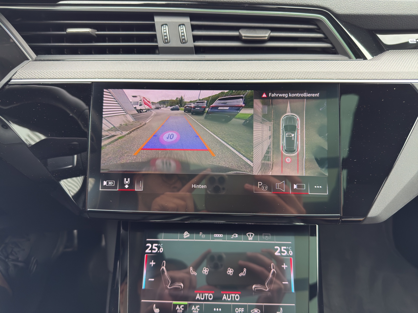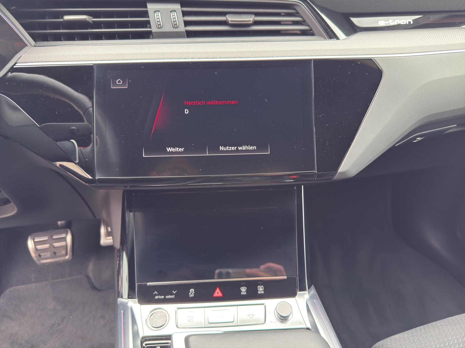 Sonderausstattung Adaptive Scheibenwischer mit integrierten Waschdüsen Airbag: Seitenairbags vorn und hinten mit Kopfairbagsystem Akustikverglasung für Tür- und Seitenscheiben Audi virtual cockpit plus Aussenspiegel elektrisch einstell-, beheiz- und anklappbar, beidseitig automatisch abblendend Aussenspiegel elektrisch, beheiz- und anklappbar, automatisch abblendend, mit Memory-Funktion Aussenspiegelgehäuse in Schwarz Bremssättel rot lackiert, 18 Zoll Dekor: Dekoreinlagen Carbon Quadrat Struktur Dekor: Farbnähte in Rot Audi Sport Dekor: Instrumententafel-Oberseite und Interieurelemente unten in Kunstleder Haushaltsstecker Typ J (Schweiz) für das e-tron Ladesystem Industriestecker CEE 16A, 400V, lang und gerade für das e-tron Ladesystem Klima: 4-Zonen-Komfortklimaautomatik Klima: Standklimatisierung Komfort Komfortmittelarmlehne vorne Komfortschlüssel inklusive sensorgesteuerter Gepäckraumentriegelung Lackierung: Perleffekt-Lackierung Lenkrad: Sportlederlenkrad mit Multifunktion, Schaltwippen und Lenkradheizung Licht: Matrix LED-Scheinwerfer und LED-Heckleuchten Media: Bang & Olufsen Premium Soundsystem mit 3D Klang Mobiles Heimladepaket kompakt Paket: Ambiente Lichtpaket plus Paket: Assistenzpaket Stadt Paket: Assistenzpaket Tour Paket: Assistenzpaket plus Polster : Leder/ Kunstleder/mono. pur 550-Kombination Polster: Mikrofaser Dinamica Frequenz/Leder-Kombination mit S-Prägung Räder: Räder Audi Sport, 5-Speichen-Struktur, titangrau, glanzgedreht Sitze: Sitzheizung vorne und hinten Sitze: Variable Kopfstützen für die Vordersitze Sitze: Vordersitze elektrisch verstellbar, Fahrersitz mit Memory-Funktion Sonnenschutzverglasung, abgedunkelt Türen: Servoschliessung für die Türen