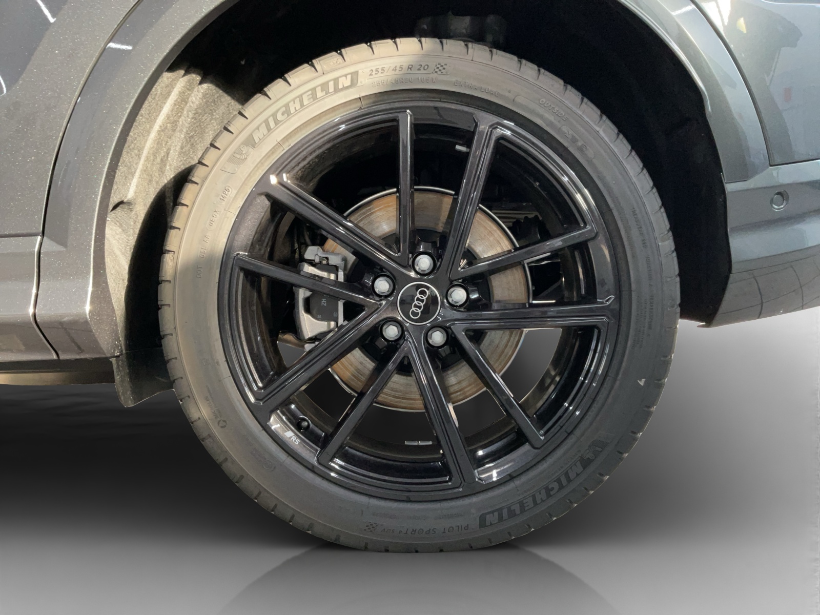 Boîtier de rétroviseur extérieur en noir Détection des passagers à l’arrière Pack: Intérieur S line avec sièges sport en cuir noir Pack: Pack Extérieur noir Pack: Pack Premium Experience Q5 Peinture: Peinture intégrale Roues: Jantes Audi Sport, design à 5 doubles branches, noir métallisé Sièges AV à réglage électrique Sièges: Siège conducteur et rétroviseur extérieur avec fonction de mémoire Vitrage acoustique pour fenêtres de porte d'entrée Vitrage de contrôle solaire, obscurci
