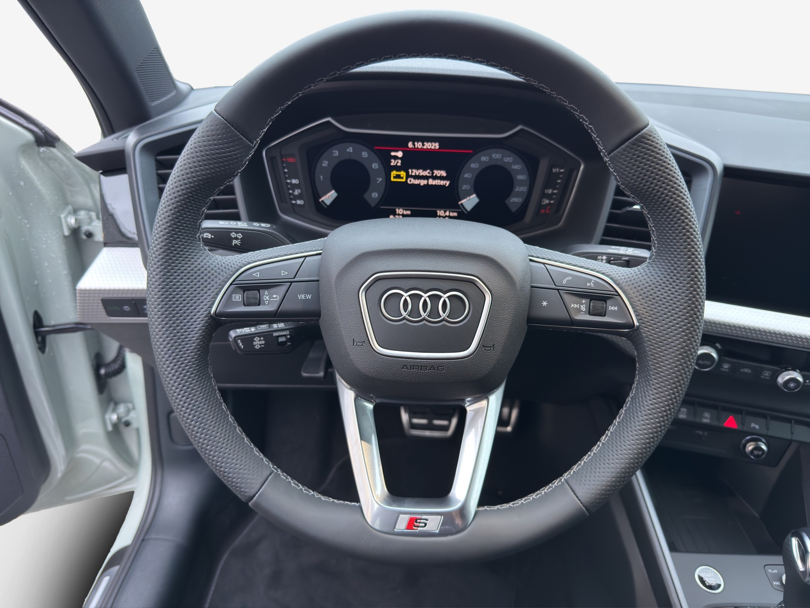 Assist: Audi pre sense basic Assist: Geschwindigkeitsregelanlage Assist: Spurwechselwarnung Aussenspiegel elektrisch einstell-, beheiz- und anklappbar Dachhimmel in Stoff schwarz Dekor: Aluminiumoptik im Interieur Dekor: Interieurelemente in Kunstleder Entfall Modellbezeichnung und Leistungs- / Technologie-Schriftzug Innenspiegel automatisch abblendbar Klima: 2-Zonen-Komfortklimaautomatik Komfortschlüssel (ohne Safelock) Licht: LED-Scheinwerfer und LED-Heckleuchten mit dynamischem Blinklicht Media: MMI Navigation plus mit MMI touch Paket: Kontur / Ambiente Lichtpaket, mehrfarbig Paket: S line mit Sportsitz (Stoff Puls / Kunstleder mono.pur 550- Kombination schwarz) Räder: Aluminium-Gussräder - 17 Zoll - 5-Arm-Polygon, schwarz Sitze: Vordersitze heizbar Sonnenschutzverglasung abgedunkelt