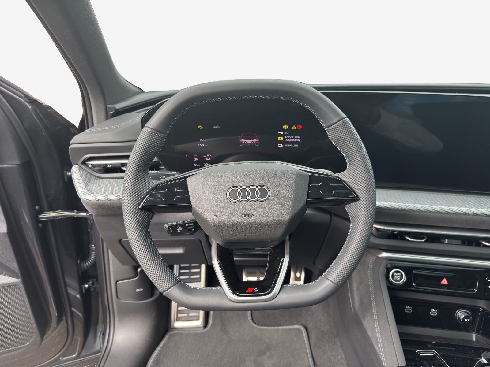 Airbag: Airbag für Fahrer und Beifahrer mit Beifahrer-Airbag-Deaktivierung Airbag: Seitenairbags vorn, mit Kopfairbag und Interaktionsairbag vorn Akustisches Fahrzeug-Warnsystem Assist: Ablenkungs- und Müdigkeitserkennung Assist: Adaptiver Geschwindigkeitsassistent Assist: Ausweichassistent und Abbiegeassistent Assist: Einparkhilfe plus mit Distanzanzeige Assist: Kamerabasierte Verkehrszeichenerkennung Assist: Notbremsassistent vorn Assist: Parkassistent plus Assist: Querverkehrassistent vorn Assist: Spurverlassenswarnung Assist: Traktionskontrolle Assist: Verkehrszeichenbasierter Geschwindigkeitsbegrenzer Audi connect Notruf & Service mit Audi connect Remote & Control Audi virtual cockpit plus Aussenspiegel elektrisch einstell-, beheiz- und anklappbar, beidseitig automatisch abblendend Aussenspiegel in Wagenfarbe Dekor: Aluminiumoptik im Interieur Dekor: Dekoreinlagen Aluminium matt gebürstet mit Linearprägung anthrazit Elektrische Fensterheber vorne Elektronisches Stabilitäts-Programm (ESP) Fahrwerk: Bremssättel, farbig Fahrwerk: S-Sportfahrwerk Fensterzierleisten Aluminiumoptik Frontscheibe in Wärmeschutz- und Akustikverglasung Funkschlüssel, ohne Safelock Fussmatten vorne und hinten Garantie: Audi Garantie 2 Jahre ohne Kilometerbegrenzung (ab 1. Inv.) Getriebe: 7-Gang- Automat S tronic Innenspiegel automatisch abblendbar Klima: 3-Zonen-Klimatisierungsautomatik Klima: Standklimatisierung Lackierung: Kontrastlackierung in Tamboragrau Metallic Lackierung: Uni-Lackierung Ladekabel Mode 3 für öffentliches Laden bis 22 kW Lenkrad: Lenkradeinstellung manuell Licht: Fernlicht-Assistent Licht: LED-Heckleuchten pro Licht: LED-Scheinwerfer plus Licht: Tagesfahrlicht mit Assistenzfahrlicht u.Coming- u. Leaving-home Funktion automatisch Media: Audi Application Store und Smartphone-Interface Media: Audi connect Navigation & Infotainment Media: Audi phone box light Media: Digitaler Radioempfang Media: USB-Anschlüsse mit Ladefunktion in erster und zweiter Sitzreihe Modellbezeichnung am Heck Paket: Ablagen- und Gepäckraumpaket Paket: Ambiente Lichtpaket plus Paket: Interieur S mit Sportsitzen in Leder/Kunstleder-Kombination schwarz Paket: Klimatisierungspaket Räder: Reifendruck-Kontrollanzeige Räder: Reifenreparatur-Set (Tire Fit) Räder: Räder, 10-Arm-Aero, graphitgrau, glanzgedreht Scheiben seitlich und hinten in Wärmeschutzverglasung Scheinwerfer-Reinigungsanlage Servolenkung Elektromechanisch Sitze: Kindersitzbefestigung i-Size auf der Beifahrerseite und i-Size und Top Tether Sitze: Vordersitze elektrisch verstellbar Sitze: Vordersitze heizbar Türen: Komfortöffnung Gepäckraumklappe Verbandmaterial,Warndreieck und Warnveste Wegfahrsperre elektronisch Zentralverriegelung mit Fernbedienung