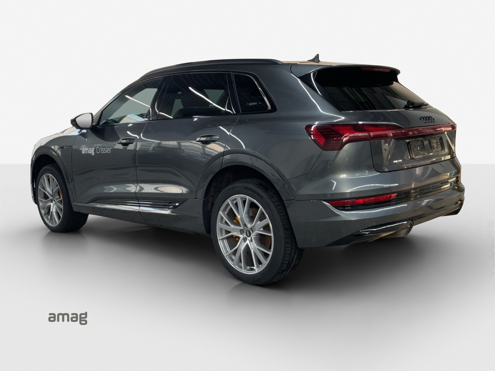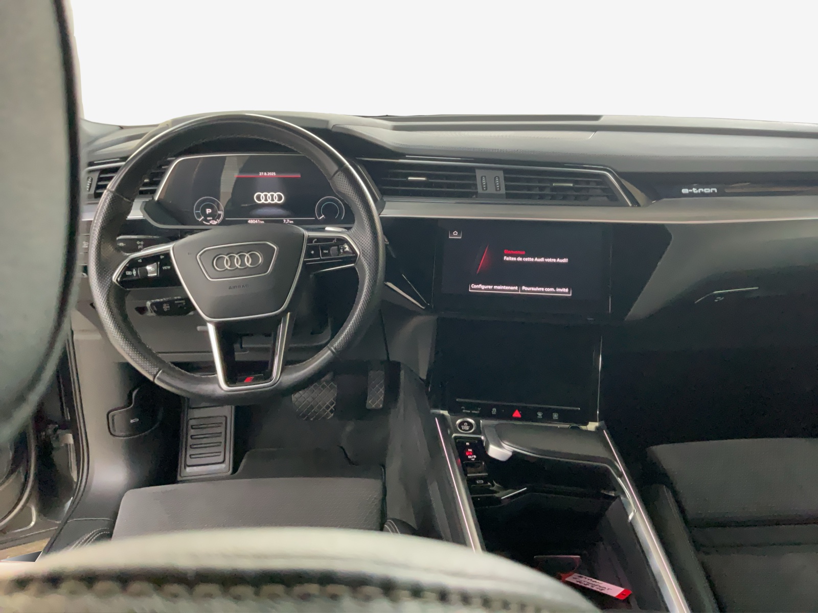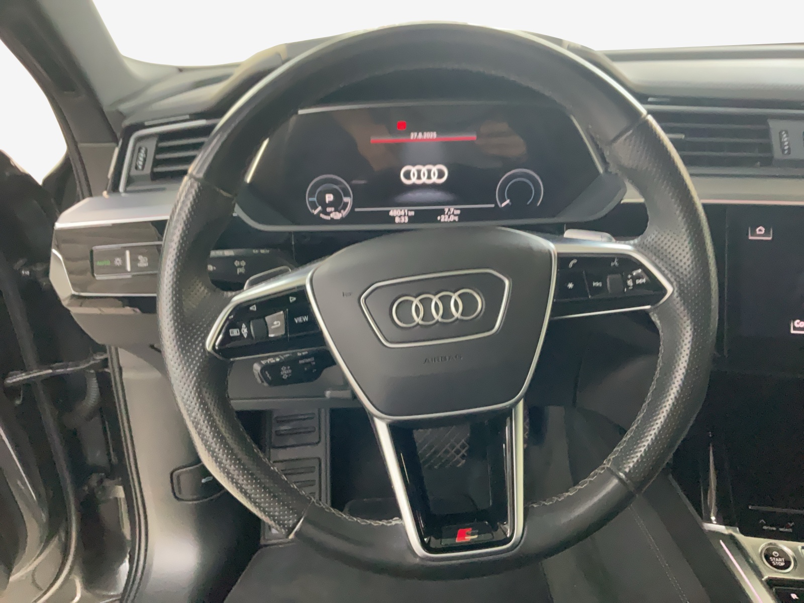 Aide au stationnement plus avec affichage de l’environnement Airbag: Airbag passager désactivable Airbag: Airbags rideaux pour la tête Airbag: Seitenairbags vorne Appel d’urgence Audi connect et service avec Audi connect Remote & Control Assist: Audi pre sense front Assist: Geschwindigkeitsregelanlage inklusive Geschwindigkeitsbegrenzer Audi connect Navigation & Infotainment Aussenspiegel elektrisch einstell- und beheizbar Avrtissement du franchissement de voie Baguettes de seuil avec inserts en aluminium à l’avant et à l’arrière Chargeur embarqué jusqu'a 11 kW (AC) Clima: Climatisation à l’arrêt Climat: climatisation automatique confort 2 zones Câble de recharge, mode 3, 22 kW Dispositif anti-encastrement en retrait à l’avant et diffuseur à l’arrière au design sportif Dossier siège arrière rabattable Décor: Applications décoratives en vernis fin gris graphite Désignation du modèle et dénomination de la puissance/technologie Emblème S line sur la grille de calandre Fixation du siège enfant ISOFIX et Top Tether pour la banquette arrière Garantie: 2 ans / kilométrage illimité Garniture de toit en tissu noir Kindersitzvorrichtung ISOFIX Beifahrerseite Licht: Scheinwerfer-Reinigungsanlage Longueur du câble de recharge standard Lumière: Phares LED avec préparation pour d’autres fonctions d’éclairage et feux arrière LED Media: Bluetooth interface Media: Récepteur digitale de la radio (DAB) Pare-brise avec isolation thermique et vitrage acoustique Pare-chocs S line en peinture intégrale Peinture: Ligne de fond en pleine peinture (couleur carrosserie) Prise de courant 12 volts Prise domestique de type J (CH) Prise industrielle CEE 16A, 400V, longue et droite pour le système de charge e-tron Roues: Affichage du contrôle de la pression des pneus Roues: Jantes en alliage léger Design dynamique à 5 branches, Gris Graphite, finition brillante Roues: Set de réparation pour les pneus Rétroviseur intérieur réglable jour/nuit automatique Rétroviseurs extérieurs en couleur de la carrosserie Sitze: Vordersitze höhenverstellbar Suspension pneumatique sport Suspension: Adaptive air suspension sport Système de navigation MMI Plus Système de recharge compact e-tron Système d’avertissement acoustique du véhicule (AVAS) Tapis à l'avant et à l'arrière Touches de commande en noir mat Trousse de premiers secours et triangle Volant cuir à branches doubles avec multifonctions et palettes