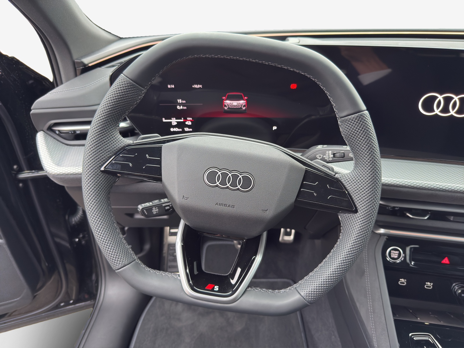 Airbag: Airbag für Fahrer und Beifahrer mit Beifahrer-Airbag-Deaktivierung Airbag: Seitenairbags vorn, mit Kopfairbag und Interaktionsairbag vorn Akustisches Fahrzeug-Warnsystem Assist: Ablenkungs- und Müdigkeitserkennung Assist: Adaptiver Geschwindigkeitsassistent Assist: Ausweichassistent und Abbiegeassistent Assist: Einparkhilfe plus mit Distanzanzeige Assist: Kamerabasierte Verkehrszeichenerkennung Assist: Notbremsassistent vorn Assist: Parkassistent plus Assist: Querverkehrassistent vorn Assist: Spurverlassenswarnung Assist: Traktionskontrolle Assist: Verkehrszeichenbasierter Geschwindigkeitsbegrenzer Audi connect Notruf & Service mit Audi connect Remote & Control Audi virtual cockpit plus Aussenspiegel elektrisch einstell-, beheiz- und anklappbar, beidseitig automatisch abblendend Aussenspiegel in Wagenfarbe Dekor: Aluminiumoptik im Interieur Dekor: Dekoreinlagen Aluminium matt gebürstet mit Linearprägung anthrazit Elektrische Fensterheber vorne Elektronisches Stabilitäts-Programm (ESP) Fahrwerk: Bremssättel, farbig Fahrwerk: S-Sportfahrwerk Fensterzierleisten Aluminiumoptik Frontscheibe in Wärmeschutz- und Akustikverglasung Funkschlüssel, ohne Safelock Fussmatten vorne und hinten Garantie: Audi Garantie 2 Jahre ohne Kilometerbegrenzung (ab 1. Inv.) Getriebe: 7-Gang- Automat S tronic Innenspiegel automatisch abblendbar Klima: 3-Zonen-Klimatisierungsautomatik Klima: Standklimatisierung Lackierung: Kontrastlackierung in Tamboragrau Metallic Lackierung: Uni-Lackierung Ladekabel Mode 3 für öffentliches Laden bis 22 kW Lenkrad: Lenkradeinstellung manuell Licht: Fernlicht-Assistent Licht: LED-Heckleuchten pro Licht: LED-Scheinwerfer plus Licht: Tagesfahrlicht mit Assistenzfahrlicht u.Coming- u. Leaving-home Funktion automatisch Media: Audi Application Store und Smartphone-Interface Media: Audi connect Navigation & Infotainment Media: Audi phone box light Media: Digitaler Radioempfang Media: USB-Anschlüsse mit Ladefunktion in erster und zweiter Sitzreihe Modellbezeichnung am Heck Paket: Ablagen- und Gepäckraumpaket Paket: Ambiente Lichtpaket plus Paket: Interieur S mit Sportsitzen in Leder/Kunstleder-Kombination schwarz Paket: Klimatisierungspaket Räder: Reifendruck-Kontrollanzeige Räder: Reifenreparatur-Set (Tire Fit) Räder: Räder, 10-Arm-Aero, graphitgrau, glanzgedreht Scheiben seitlich und hinten in Wärmeschutzverglasung Scheinwerfer-Reinigungsanlage Servolenkung Elektromechanisch Sitze: Kindersitzbefestigung i-Size auf der Beifahrerseite und i-Size und Top Tether Sitze: Vordersitze elektrisch verstellbar Sitze: Vordersitze heizbar Türen: Komfortöffnung Gepäckraumklappe Verbandmaterial,Warndreieck und Warnveste Wegfahrsperre elektronisch Zentralverriegelung mit Fernbedienung