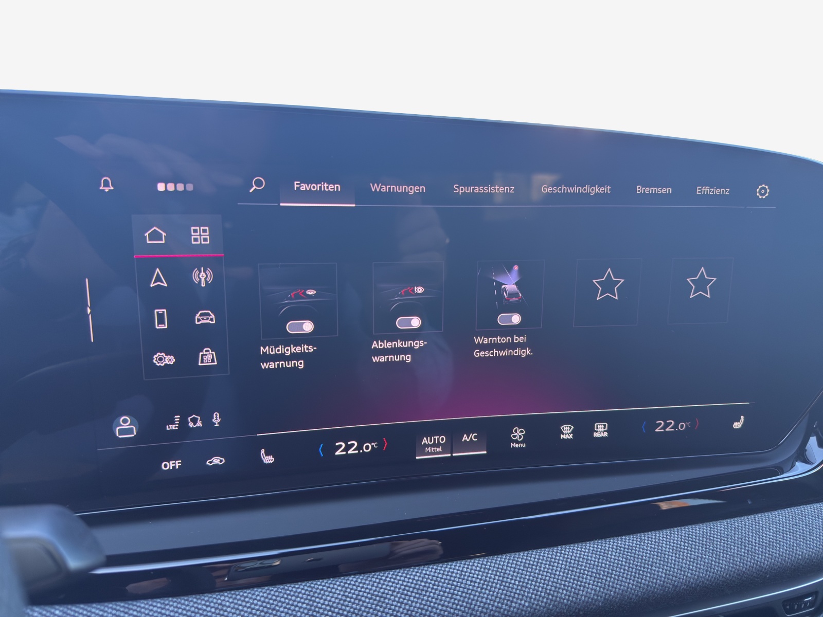 Serienausstattung Airbag: Airbag Fahrer und Beifahrer Airbag: Seitenairbags vorn, mit Kopfairbag und Interaktionsairbag vorn Akustisches Fahrzeug-Warnsystem Assist: Ablenkungs- und Müdigkeitserkennung Assist: Adaptiver Geschwindigkeitsassistent Assist: Ausweichassistent und Abbiegeassistent Assist: Einparkhilfe plus mit Distanzanzeige Assist: Kamerabasierte Verkehrszeichenerkennung Assist: Kreuzungsassistent Assist: Notbremsassistent vorn Assist: Parkassistent plus Assist: Spurverlassenswarnung Assist: Traktionskontrolle Assist: Verkehrszeichenbasierter Geschwindigkeitsbegrenzer Audi connect Notruf & Service mit Audi connect Remote & Control Audi virtual cockpit plus Aussenspiegel Fahrerseite asphärisch, Beifahrerseite asphärisch Aussenspiegel elektrisch einstell-, beheiz- und anklappbar, beidseitig automatisch abblendend Aussenspiegel in Wagenfarbe Dachhimmel in Stoff in spezifischer Farbe Dekor: Akzentflächen und Bedientasten schwarz matt Dekor: Aluminiumoptik im Interieur Dekor: Dekoreinlagen Laserstruktur schwarz Dekor: Interieurapplikationen Aluminiumoptik Dekor: Interieurelemente umlaufend Stoff Impressum Einstiegsleisten mit Aluminiumeinlegern vorn Elektrische Fensterheber vorne Elektronisches Stabilitäts-Programm (ESP) Fahrwerk: Standardfahrwerk Fensterzierleisten Aluminiumoptik Frontscheibe in Wärmeschutz- und Akustikverglasung Funkschlüssel, ohne Safelock Fussmatten vorne und hinten Garantie: Audi Garantie 2 Jahre ohne Kilometerbegrenzung (ab 1. Inv.) Getriebe: 7-Stufen Automatisiertes Schaltgetriebe Innenspiegel automatisch abblendbar Kindersicherung, elektrisch Klima: 3-Zonen-Klimatisierungsautomatik Lackierung: Uni-Lackierung Lenkrad: Doppelspeichen-Lederlenkrad mit Multifunktion und Schaltwippen Lenkrad: Lenkradapplikation Chromoptik Lenkrad: Lenkradeinstellung manuell Licht: Fernlicht-Assistent Licht: LED-Heckleuchten pro Licht: LED-Scheinwerfer plus Licht: Tagesfahrlicht mit Assistenzfahrlicht u.Coming- u. Leaving-home Funktion automatisch Media: Audi Application Store und Smartphone-Interface Media: Audi connect Navigation & Infotainment Media: Digitaler Radioempfang Media: FOD Funktionen online verfügbar Media: MMI experience plus Media: Navigationsgerät-High Media: USB-Anschlüsse mit Ladefunktion in erster und zweiter Sitzreihe Modellbezeichnung am Heck Paket: Assistenzpaket Fahren und Parken Paket: Klimatisierungspaket Räder: Radschrauben Standard Räder: Reifendruck-Kontrollanzeige Räder: Reifenreparatur-Set (Tire Fit) Räder: Räder, 5-Doppelspeichen Scheiben seitlich und hinten in Wärmeschutzverglasung Schlüssel für Schliesssystem mit Fernbedienung Sitze: Kindersitzbefestigung i-Size auf der Beifahrerseite und i-Size und Top Tether Sitze: Sitzbelegungserkennung Sitze: Vordersitze heizbar Sitze: Vordersitze manuell einstellbar Türen: Gepäckraumklappe elektrisch öffnend und schliessend Türen: Türgriffe in Wagenfarbe Verbandmaterial,Warndreieck und Warnveste Wegfahrsperre elektronisch