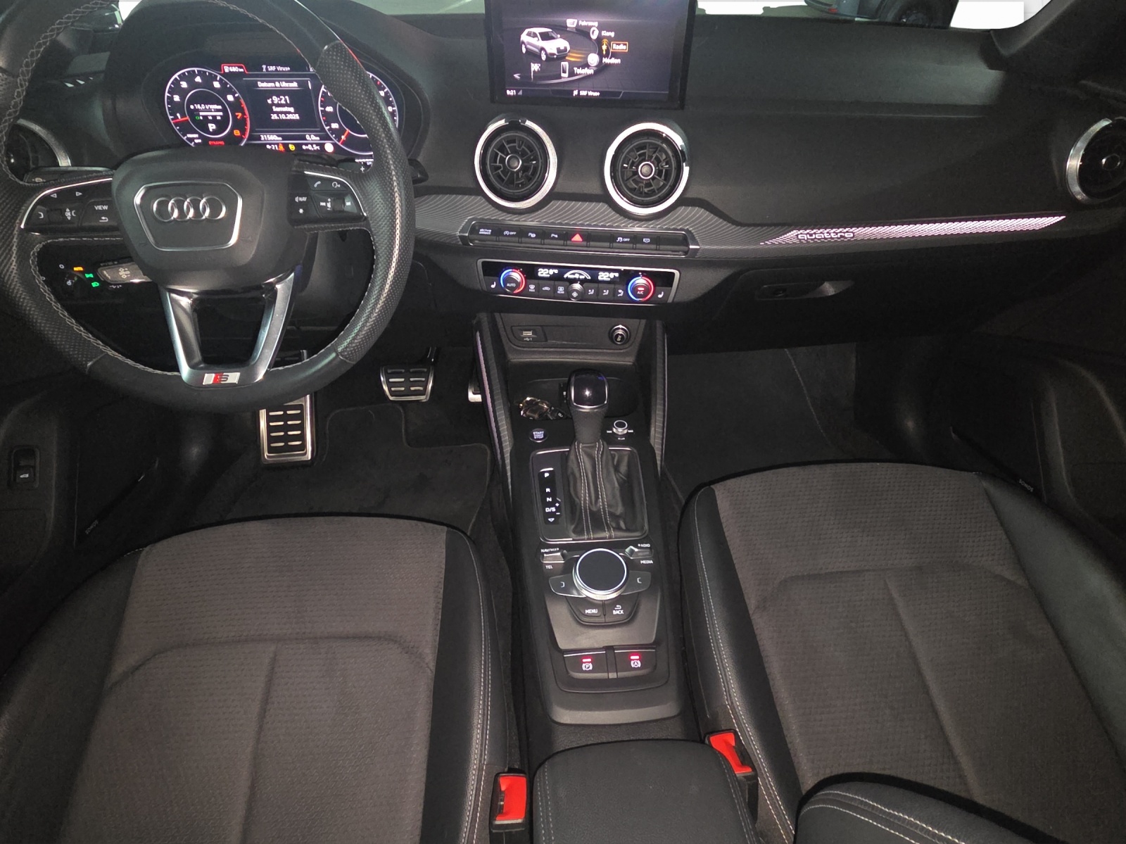 Assist: Parkassistent mit Einparkhilfe plus Dachspoiler in Wagenfarbe Dekor: Dekoreinlagen Lichtgrafik Format Entfall Modellbezeichnung und Leistungs- / Technologie-Schriftzug Fahrer-Informationssystem mit Garantie: Audi Garantie: 5 Jahre oder 100'000 km (ab 1. Inv.) Gepäckraumklappe elektrisch öffnend und schliessend Klima: Komfortklimaautomatik Klima: Standheizung/-Lüftung Komfortschlüssel (ohne Safelock) Lenkrad: Lederlenkrad im 3-Speichen-Design mit Multifunktion plus Lenkrad: Lederlenkrad im 3-Speichen-Design mit Multifunktion plus und Schaltwippen Media: Audi Smartphone Interface Media: SONOS Premium Soundsystem Paket: Ablage- und Gepäckraumpaket, 12V-Steckdose und USB Ladeschnittstellen für Fondpassagiere Paket: Ambiente Lichtpaket plus Paket: Assistenzpaket Fahren Paket: Communicationpaket Q2 Paket: Excellence Paket Q2 Paket: Optikpaket schwarz plus schwarz Hochglanz für Typenzeichen und Audiringe Paket: Schwarzpaket matt PLUS Privacy Verglasung (Scheiben abgedunkelt) Räder: Leichtmetallräder, 5-Arm-Turbine, titangrau matt, glanzgedreht Sitze: Rücksitzlehne, geteilt umklappbar Sitze: Vordersitze heizbar