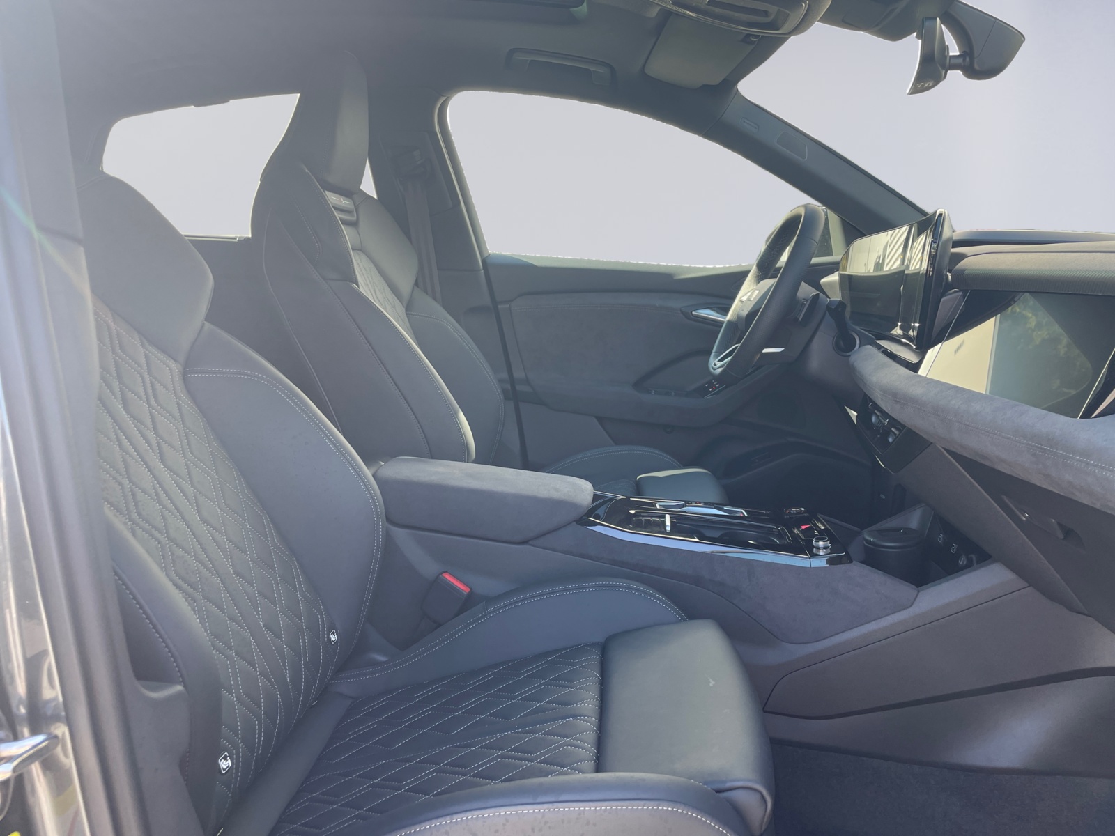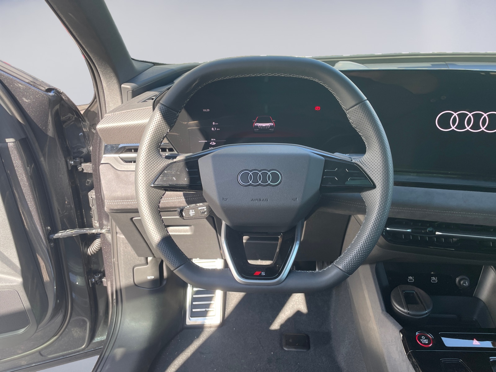 Airbag conducteur et passager Airbag latéral à l’avant, avec airbag latéral de tête et airbag interactif à l’avant Airbag passager désactivable Appel d’urgence Audi connect et service avec Audi connect Remote & Control Assist: Assistance au stationnement plus avec affichage de la distance Assist: Assistant de freinage d’urgence à l’avant Assist: Assistant de maintien de voie Assist: Assistant de vitesse adaptative Assist: Assistant d’évitement de collision et de changement de direction Assist: Avertisseur de changement de voie et de sortie, alerte de trafic transversal à l’arrière Assist: Caméras périphériques Assist: Détecteur de distraction et de fatigue Assist: Limiteur de vitesse basé sur la reconnaissance des panneaux de signalisation Assist: Reconnaissance des panneaux de Assist: Électronique contrôle de la traction Assistance aux feux de route Audi connect Navigation & Infotainment Audi virtual cockpit plus Avrtissement du franchissement de voie Baguettes d’appuis de vitres noires Boîte: Entraînement direct, sans engrenage Capacité de charge jusqu'à 270 kW (DC) Chargeur embarqué jusqu'à 11 kW (AC) Ciel de pavillon en tissu, couleur gris roche Clapet de recharge électrique Clima: Chauffage supplémentaire électrique à air Clima: Climatisation automatique confort trizone Clima: Commutation automatique de l’air recyclé Clé de confort sans Safelock Câble de charge mode 3 pour charge publique jusqu'à 22 kW Decór: Partie supérieure du tableau de bord noire avec coutures contrastées Deuxième accès de chargement Décor: Marqueterie décorative laque fine gris volcan Décor: Éléments intérieurs en haut et en bas similicuir Dénomination du modèle à l’arrière Garantie: Audi Garantie 2 ans / kilométrage illimité Garantie: Audi Swiss Service Package+ (ASSP+) Intérieur avec sièges normaux, tissu noir Lumière: Feux de jour avec éclairage d’assistance et fonction Coming home et Leaving home Lumière: Projecteur dans les rétroviseurs extérieurs Lumiére: Feux arrière LED pro Lève-vitres électriques AV Media: Ports USB avec fonction de recharge dans la première et la deuxième rangée de sièges Mèdias: Audi Application Store et interface pour smartphone Mèdias: Audi système de Sound Mèdias: Emplacement pour téléphone avec fonction de recharge inductive Mèdias: Expérience MMI plus Mèdias: Fonctions FOD disponibles en ligne Mèdias: Module de données Europe Mèdias: Réception radio numérique Pack: Pack climatisation hiver Pack: pack Ambiente Light Pare-brise avec vitrage athermique et acoustique Peinture: Peinture unie Gris Magnétique Peinture:: Peinture contrastée Portes: Capot de coffre à ouverture et fermeture électriques Prise de recharge Combo 2 (EU) Programme de stabilité électronique ESP Préparation pour dispositif d'attelage Préparation pour fonctions de recharge intelligentes Roues: Affichage du contrôle de la pression des pneus Roues: Jantes, 10 branches Rétroviseur intérieur réglable jour/nuit Rétroviseurs extérieurs réglables, dégivrants et rabattables électriquement avec fonction Set de réparation pour les pneus Seuils de porte avec inserts en aluminium à l’avant Sièges: Banquette arrière d’un seul tenant, dossier fractionné et rabattable (trois éléments) Sièges: Fixation pour siège enfant i-Size côté passager et i-Size et Top Tether sur les sièges Sièges: Sièges avant réglables manuellement Suspension: Châssis confort Système antiblocage des roues (ABS) Système d’avertissement acoustique du véhicule (AVAS) Tapis à l'avant et à l'arrière Trousse de secours avec,triangle de Verrouillage central avec télécommande Vitres latérales et arrière athermiques Volant cuir à branches doubles avec multifonctions et palettes Volant: Volant avec application aspect chromé Volant: Volant avec application d'aspect chromé Volant: Volant réglable en hauteur et profondeur