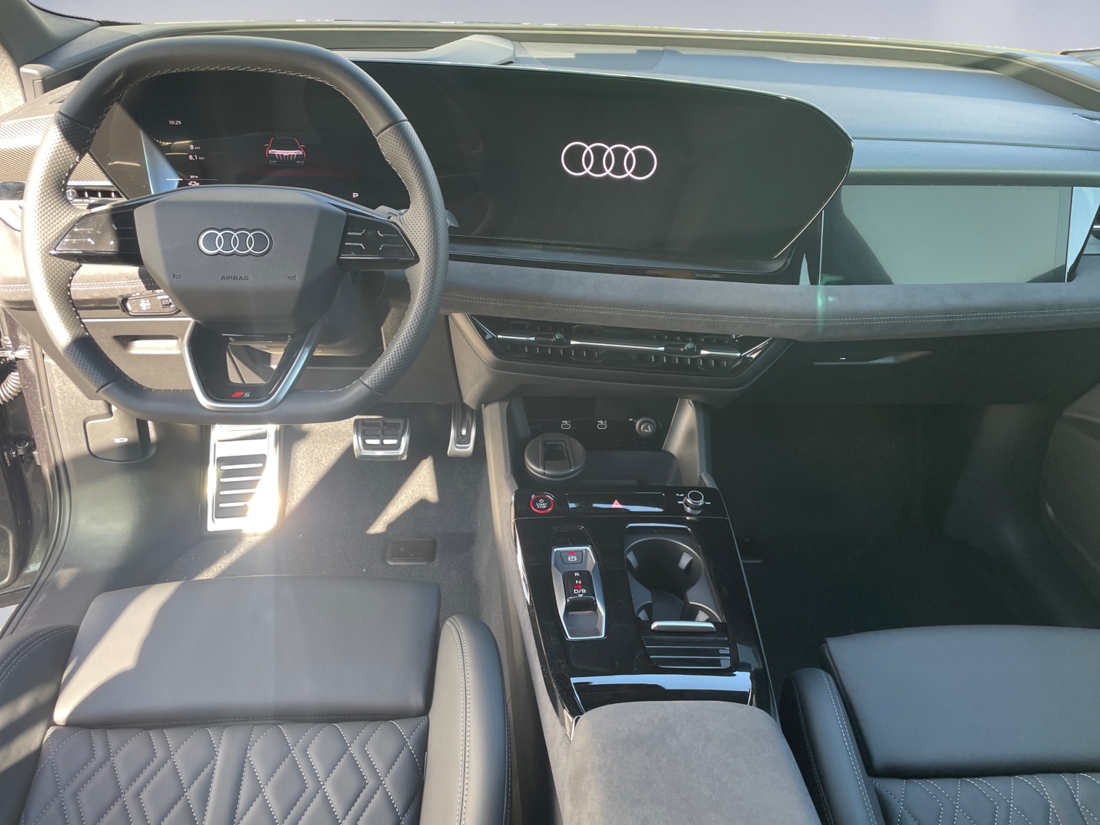 Audi Garantie: 4 ans ou 80'000 km Boulons de roues avec antivol Dispositif d'attelage orientable Décor: Application décorative dans une structure en carbone microsergé Fahrwerk: Bremssättel rot lackiert Media: Système audio haut de gamme Bang & Olufsen avec son 3D et haut-parleurs dans les appuie-tête Mèdias: Emplacement pour téléphone avec fonction de recharge inductive Mèdias: Prise en charge LTE pour la cabine téléphonique Audi Pack: Intérieur S avec sièges sport plus, cuir noir Pack: Pack Extérieur noir sans rails de toit Pack: Pack Premium Experience Pack: Pack de rangement et coffre et coffre avant Roues: Jantes Audi Sport, design dynamique à 5 branches en Y, noir métallisé, finition brillante Rouleaux pare-soleil pour vitres des Vitrage acoustique pour fenêtres de porte d'entrée Vitrage de contrôle solaire, obscurci