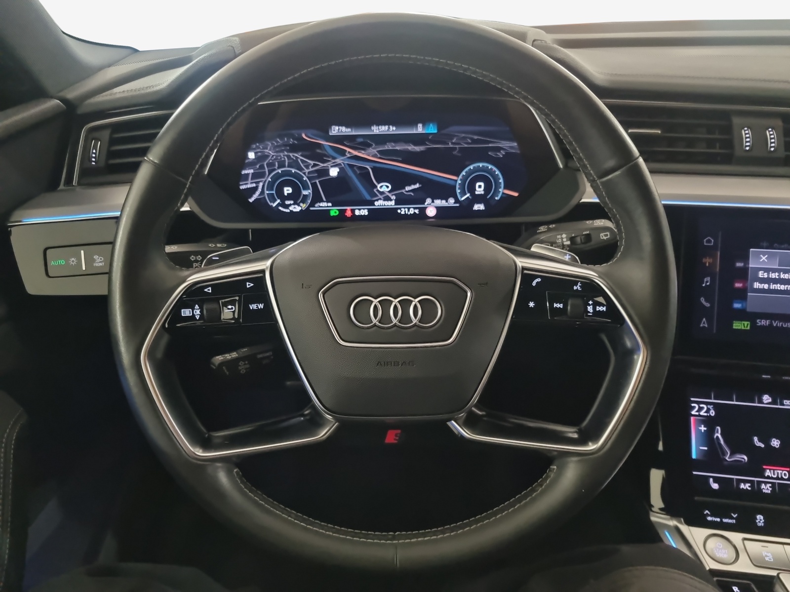 2. AC-Ladezugang (Beifahrerseite) Akustikverglasung für die Seitenfenster Alu-Räder 5-Arm-Turbinen-Design 21J Assist: Kamerabasierte Verkehrszeichenerkennung Assist: Spurverlassenswarnung inkl. Audi pre sense rear, Ausstiegswarn. und Querverkehrass. hinten Aussenspiegel rechts und links beheizbar und elektrisch anklappbar Bedientasten Glasoptik schwarz Dekor: Dekoreinlagen in Aluminium matt gebürstet HD Matrix LED-Schenwerfer Klima: Standklimatisierung Komfort Klimatisierungsautomatik 4- Zonen Komfortmittelarmlehne vorne Komfortschlüssel inklusive sensorgesteuerter Gepäckraumentriegelung Kopfstützen vorne mit X-Verstellung Paket: Assistenzpaket Stadt Schalttafeloberseite und Interieurelemente unten in Kunstleder Sitze: Vordersitze heizbar Stossfänger advanced (Volllackierung) Vorbereitung für Anhängevorrichtung