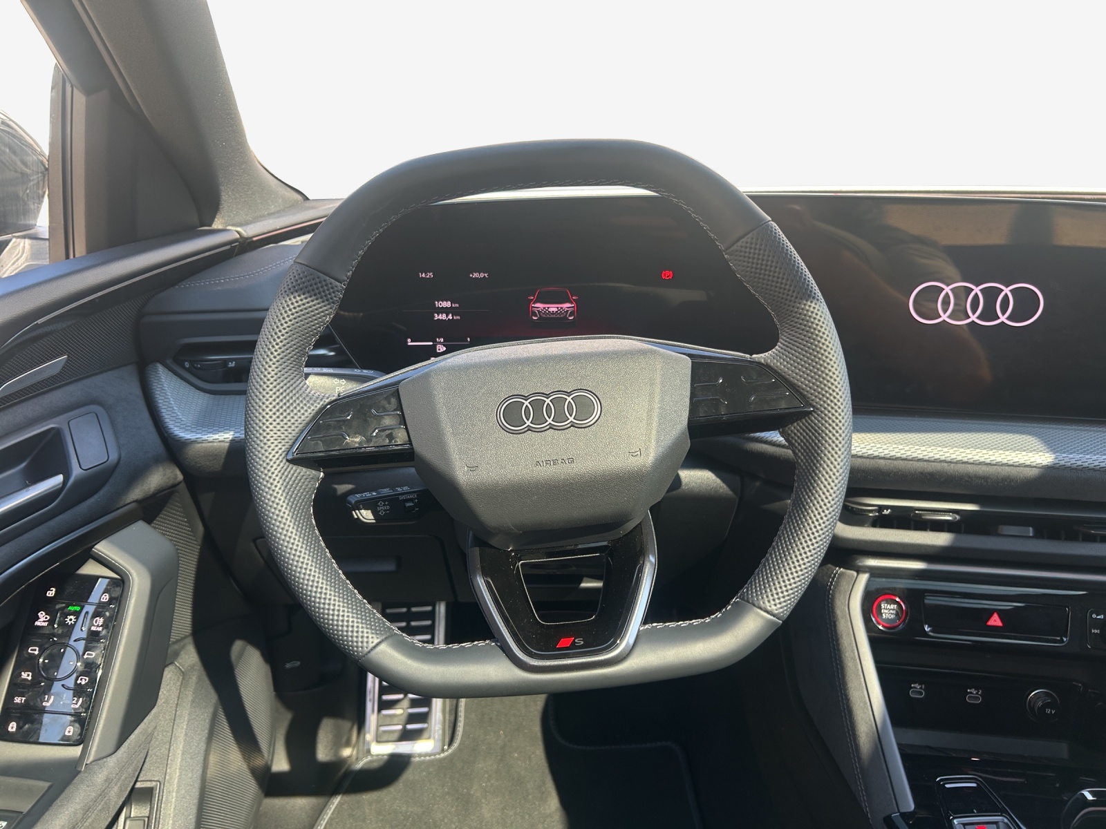 Airbag latéral à l’avant, avec airbag latéral de tête et airbag interactif à l’avant Airbag: Airbags pour conducteur et passager avant avec désactivation de l’airbag passager avant Assist: Alerte de trafic transversal à l’avant Assist: Assistance au stationnement plus avec affichage de la distance Assist: Assistant de freinage d’urgence à l’avant Assist: Assistant de vitesse adaptative Assist: Assistant d’évitement de collision et de changement de direction Assist: Avertissement de sortie de voie Assist: Détection de distraction et de fatigue Assist: Limiteur de vitesse basé sur la reconnaissance des panneaux de signalisation Assist: Reconnaissance des panneaux de Assist: Électronique contrôle de la traction Assistance aux feux de route Audi connect urgence & services avec Audi connect remote & control Audi virtual cockpit plus Baguettes de seuil de porte avec inserts en aluminium, avant, éclairées, avec logo S Baguettes décoratives de vitres aspect aluminium Barres de toit en aluminium Boîte: automatique S tronic à 7 vitesses Boîtiers de rétroviseurs extérieurs aspect chrome argent mat Ciel de pavillon en tissu noir Clima: Climatronic 3 zones Clé à télécommande sans verrouillage de sécurité Decór: Partie supérieure du tableau de bord noire avec coutures contrastées Dekor: Interieurelemente oben und unten Mikrofaser Dinamica Direction assistée électromécanique Décor: Aspect aluminium à l'intérieur Décor: Surfaces accentuées et touches de commande noires et brillantes Désignation du modèle à l’arrière Elektrische Fensterheber vorne Garantie: 3 ans ou 100'000 km Lumière: Feux de jour avec éclairage d’assistance et fonction Coming home et Leaving home Lumiére: Feux arrière LED pro Media: Ports USB avec fonction de recharge dans la première et la deuxième rangée de sièges Mèdias: Audi Application Store et interface pour smartphone Mèdias: Audi connect Navigation & Infotainment Mèdias: Audi phone box light Mèdias: Audi système de Sound Mèdias: Réception radio numérique Pack: Pack Ambiente Light plus Pack: Pack de rangement et coffre Pare-brise avec isolation thermique et vitrage acoustique Peinture:: Peinture contrastée gris Tambora métallisé Portes: Ouverture confort du couvercle du coffre à bagages Programme électronique de la stabilité Pédales et repose-pied en acier inoxydable Roues: Jantes, design à 5 branches doubles en V, gris graphite, finition brillante Route: Affichage du contrôle de la pression Rétroviseur intérieur avec système anti-éblouissement automatique Rétroviseurs extérieurs réglables, dégivrants et rabattables électriquement avec fonction Set de réparation pour les pneus Sièges AV à réglage électrique Sièges: Fixation pour siège enfant i-Size côté passager et i-Size et Top Tether sur les sièges Sièges: sièges avant chauffants Sièges: soutien lombaire 4 directions pour les sièges avant Système antiblocage des roues (ABS) Système d’avertissement acoustique du véhicule Système d’échappement standard Tapis à l'avant et à l'arrière Tissu: Combinaison microfibre Dinamica/cuir avec surpiqûres en losanges et gaufrage S Trousse de secours avec,triangle de preesignalisation et veste de signalisation Verrouillage central avec télécommande Vitrage acoustique pour fenêtres de porte d'entrée Volant: Volant avec application aspect chromé, emblème S, Volant: Volant avec réglage manuel Volant: Volant sport en cuir à 3 branches, aplati en haut et en bas