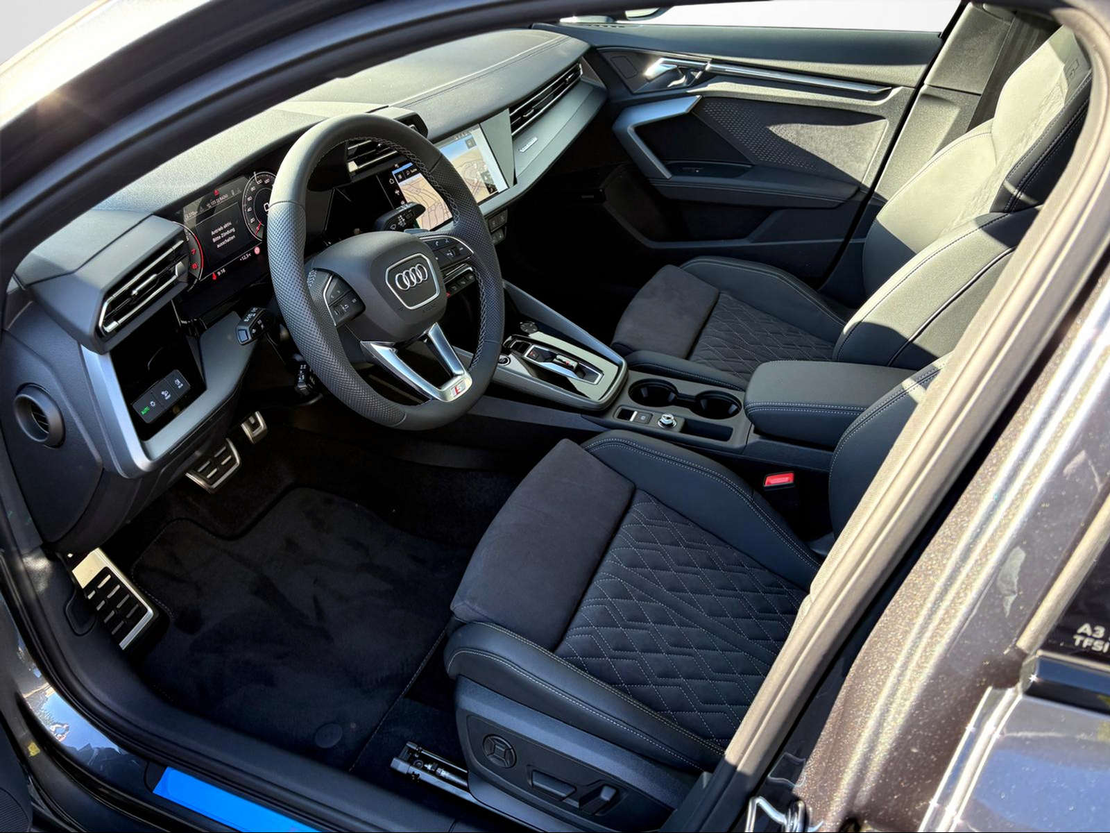 Sonderausstattung Assist: Adaptiver Fahrassistent mit Notfallassistent Assist: Spurwechselwarnung mit Ausstiegswarnung und Querverkehrassistent hinten Garantie: Audi Garantie: 4 Jahre oder 80'000 km (ab 1. Inv.) Licht: Fernlicht-Assistent Paket: Ambiente-Lichtpaket pro Paket: Assistenzpaket Fahren und Parken pro und Assistenzpaket Schutz- und Warnsysteme plus Paket: Assistenzpaket Schutz- und Warnsysteme plus Paket: Interieur S mit Sportsitzen, Mikrofaser Dinamica/Kunstleder-Kombination schwarz Paket: Klimatisierungspaket plus Paket: Optikpaket schwarz plus Paket: Paket Premium Plus A3 Sportback / allstreet Räder: Leichtmetallräder - 18 Zoll - 5-Y-Speichen, graphitgrau, glanzgedreht Sitze: Rücksitzlehne, geteilt umklappbar Sonnenschutzverglasung, abgedunkelt