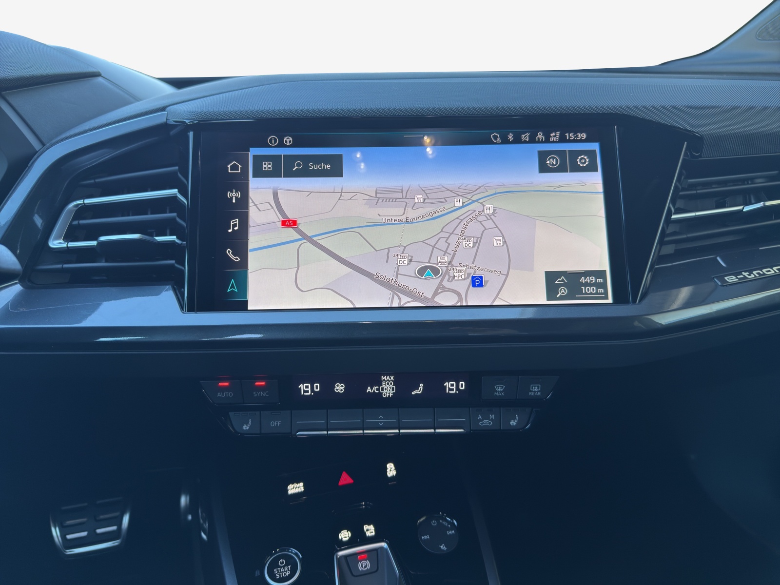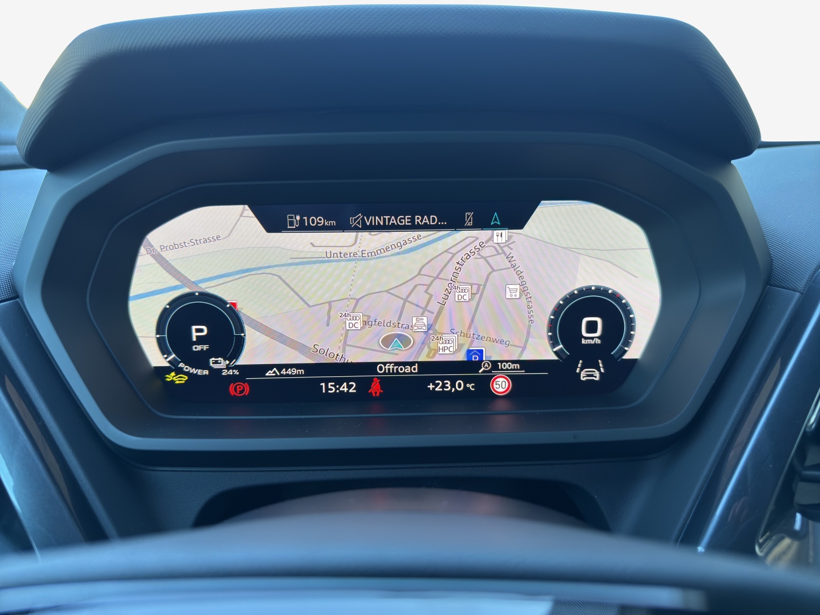 Sonderausstattung Akustikverglasung für Türscheiben vorn Dekor: Dekoreinlage Technikgewebe anthrazit Entfall Modellbezeichnung und Leistungs- / Technologie-Schriftzug Farbnähte in Rot Audi Sport Gepäckraumklappe elektrisch mit sensorgesteuerter Gepäckraumentriegelung Lackierung: Metallic-Lackierung Licht: Audi Matrix LED-Scheinwerfer Paket: Advanced Exterieur Paket: Infotainmentpaket Schweiz Paket: Interieur S line mit Sportsitzen in Mikrofaser Dinamica / Kunstleder-Kombination schwarz Paket: Klimatisierungspaket Paket: Komfortpaket Schweiz Paket: Optikpaket schwarz plus Privacy-Verglasung (Scheiben abgedunkelt) Räder: Leichtmetallräder, 5-W-Speichen-Aero, graphitgrau, glanzgedreht Vorrüstung Anhängerkupplung