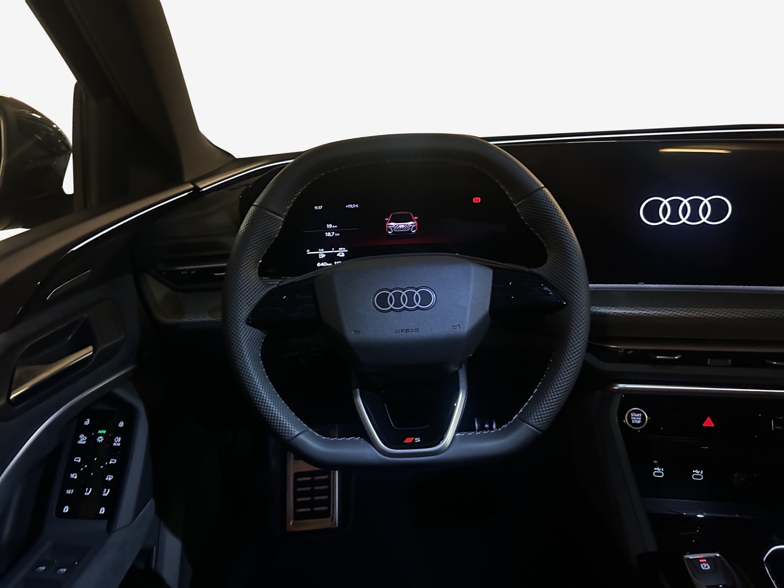 Airbag latéral à l’avant, avec airbag latéral de tête et airbag interactif à l’avant Airbag: Airbags pour conducteur et passager avant avec désactivation de l’airbag passager avant Assist: Alerte de trafic transversal à l’avant Assist: Assistance au stationnement plus avec affichage de la distance Assist: Assistant de freinage d’urgence à l’avant Assist: Assistant de vitesse adaptative Assist: Assistant d’évitement de collision et de changement de direction Assist: Avertissement de sortie de voie Assist: Détection de distraction et de fatigue Assist: Limiteur de vitesse basé sur la reconnaissance des panneaux de signalisation Assist: Reconnaissance des panneaux de Assist: Électronique contrôle de la traction Assistance aux feux de route Audi connect urgence & services avec Audi connect remote & control Audi virtual cockpit plus Baguettes décoratives de vitres aspect aluminium Barres de toit en aluminium Boîte: automatique S tronic à 7 vitesses Clima: Climatisation à l’arrêt Clima: Climatronic 3 zones Clé à télécommande sans verrouillage de sécurité Câble de charge mode 3 pour charge publique jusqu'à 22 kW Decor: Applications décoratives aluminium mat brossé avec gaufrage linéaire anthracite Direction assistée électromécanique Décor: Aspect aluminium à l'intérieur Désignation du modèle à l’arrière Garantie: Audi Garantie 2 ans / kilométrage illimité Lumière: Feux de jour avec éclairage d’assistance et fonction Coming home et Leaving home Lumiére: Feux arrière LED pro Lève-vitres électriques AV Media: Ports USB avec fonction de recharge dans la première et la deuxième rangée de sièges Mèdias: Audi Application Store et interface pour smartphone Mèdias: Audi connect Navigation & Infotainment Mèdias: Audi phone box light Mèdias: Audi système de Sound Mèdias: Réception radio numérique Pack: Intérieur S avec sièges sport, combinaison cuir/similicuir noir Pack: Pack Ambiente Light plus Pare-brise avec isolation thermique et vitrage acoustique Peinture:: Peinture contrastée gris Tambora métallisé Portes: Ouverture confort du couvercle du coffre à bagages Programme électronique de la stabilité (ESP) Roues: Jantes, Aero à 10 branches, gris graphite, finition brillante Route: Affichage du contrôle de la pression Rétroviseur intérieur réglable jour/nuit automatique Rétroviseurs extérieurs en couleur de la carrosserie Rétroviseurs extérieurs réglables, dégivrants et rabattables électriquement avec fonction Set de réparation pour les pneus Sièges AV à réglage électrique Sièges: Banquette arrière plus Sièges: Fixation pour siège enfant i-Size côté passager et i-Size et Top Tether sur les sièges Sièges: sièges avant chauffants Suspension: Étriers de frein, colorés Système antiblocage des roues (ABS) Système d’avertissement acoustique du véhicule Système d’échappement standard Tapis à l'avant et à l'arrière Trousse de secours avec,triangle de preesignalisation et veste de signalisation Verrouillage central avec télécommande Vitres latérales et arrière athermiques Volant: Volant avec réglage manuel
