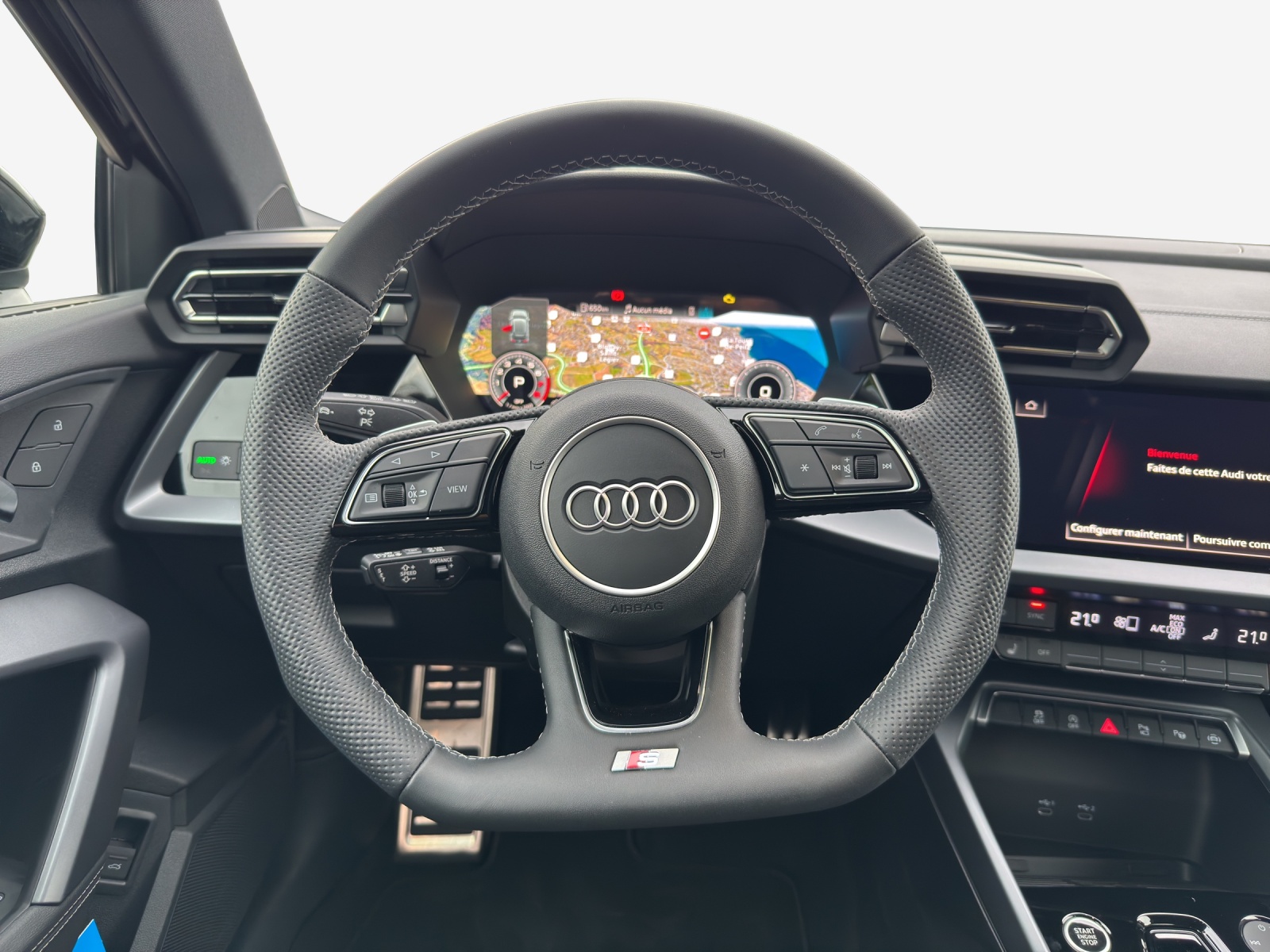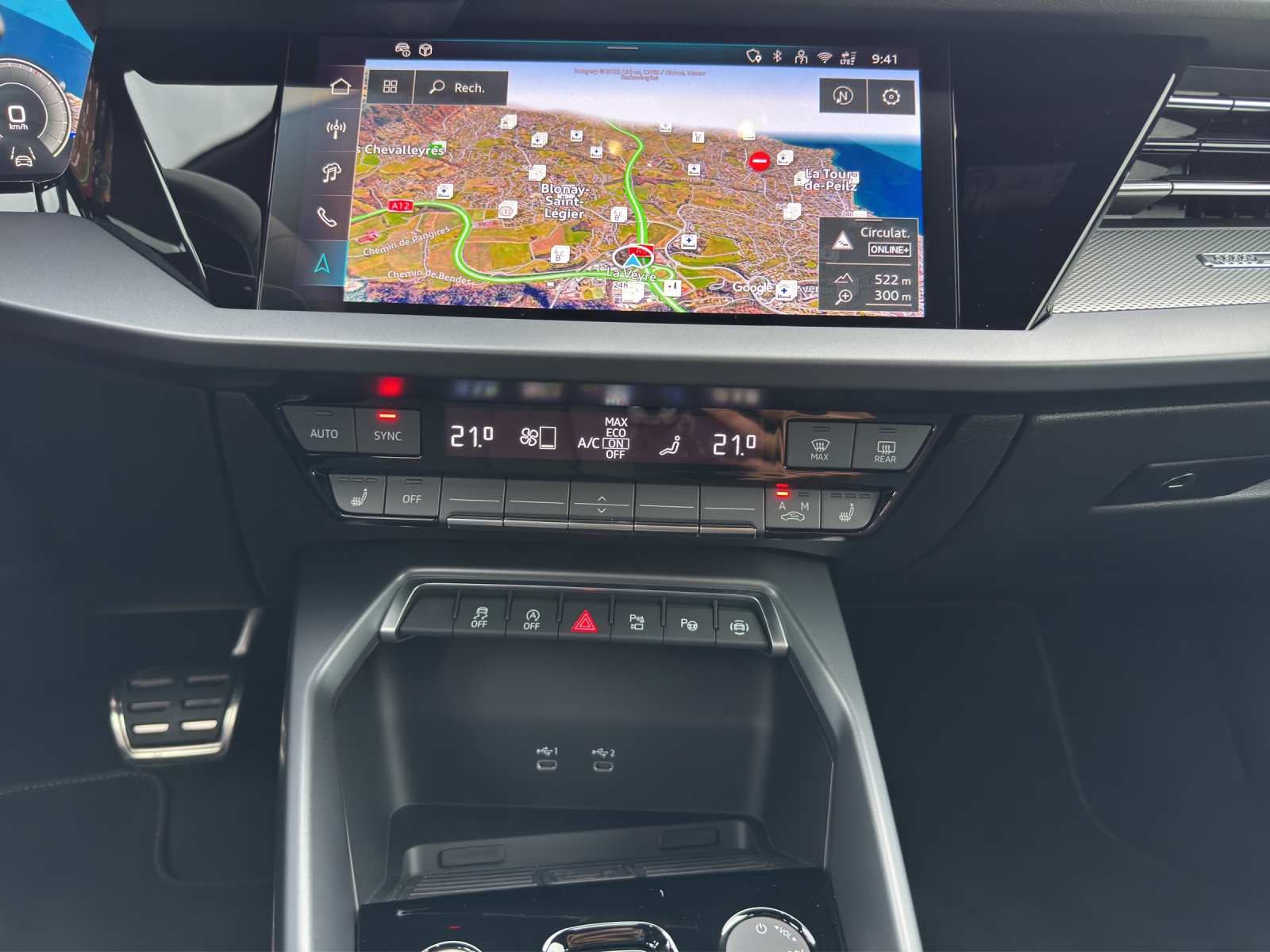 Accents du diffuseur aspect chrome mat anthracite Airbag: airbag conducteur Airbag: l'airbag passager peut etre désactivé Antidémarrage (électronique) Appel d’urgence Audi connect et service avec Audi connect Remote & Control Assist: Assistant d’évitement de collision et de changement de direction Assist: Audi pre sense front Assist: Reconnaissance des panneaux de signalisation par caméra Assist: Système proactif de protection des passagers à l’avant, sur le côté et à l’arrière Assist: Électronique contrôle de la traction Assistance aux feux de route Audi connect Navigation & Infotainment plus Baguettes d’appuis de vitres en noir Capteur de lumière et de pluie Clima: Climatisation automatique 1 zone avec préparation pour d’autres fonctions de climatisation Clé de confort sans Safelock Dossier des sièges arrière rabattable Décor: Application décorative en vernis fin gris Volcan Einstiegsleisten mit Aluminiumeinlegern vorn Garantie: 2 ans / kilométrage illimité Getriebe: 7-Gang- Automat S tronic Grille de calandre S en noir titane Insert des prises d’air aspect chrome mat anthracite Intérieur avec sièges standard en tissu noir Lève-vitres électriques à l'avant Media: Ports USB avec fonction de charge à l’arrière Mèdias: Audi Application Store et interface pour smartphone Mèdias: Prise en charge LTE pour la cabine téléphonique Audi Pack: Pack Assistance conduite et stationnement plus Pack: Pack Info-divertissement Connectivity Pack: Phares avant LED et feux arrière LED avec clignotants arrière dynamiques Paquet de l'éclairage ambiant Pare-brise avec vitrage athermique Programme électronique de stabilité (ESP) Roues: Affichage du contrôle de la pression des pneus Roues: Jantes, design à 5 branches en V Roues: Set de réparation pour les pneus Rétroviseurs extérieurs couleur carrosserie Seuils de portes aspect chrome mat anthracite Sièges: Fixation de siège enfant conforme i-Size sur les sièges passager et arrière extérieurs, Sièges: i-Size et Top Tether pour les sièges extérieurs à l’arrière Suspension: Châssis sportif Sécurité enfant à commande électrique Verrouillage central avec télécommande Volant: volant en cuir style 3 branches avec palettes multifonction plus