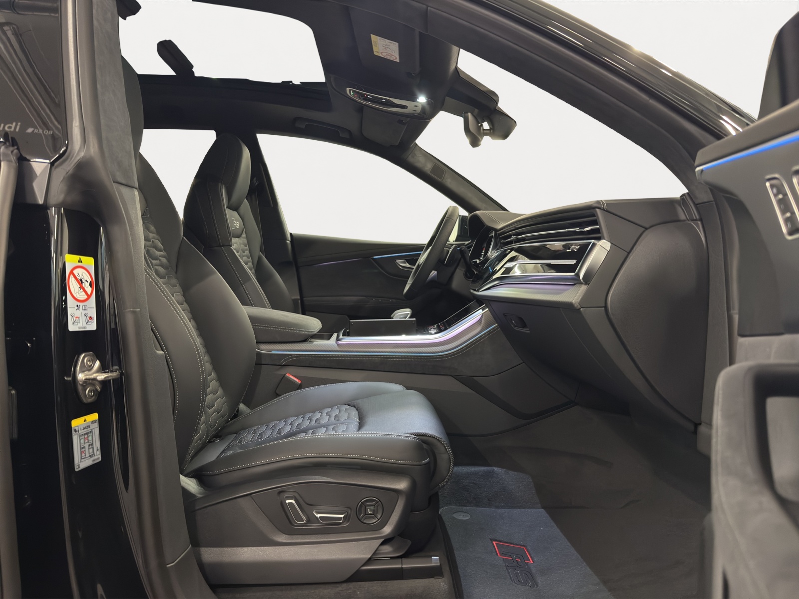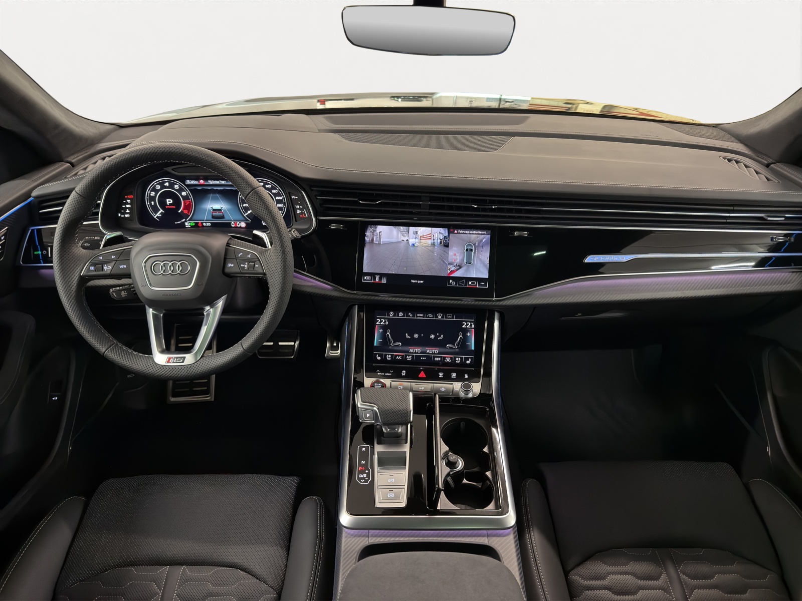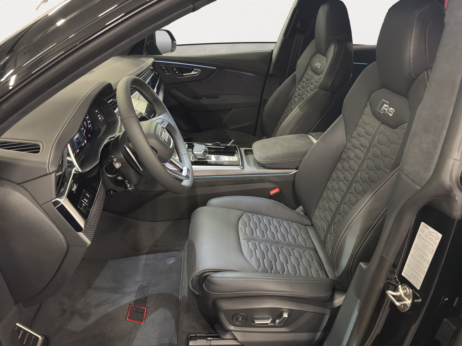 Akustikverglasung Tür- und Seitenscheiben Anhebung der Höchstgeschwindigkeit auf 305 km/h Aussenspiegel in Wagenfarbe Aussenspiegel rechts und links beheizt, elektrisch verstell-/ und einklappbar mit Memory Dekor: Bedienelemente Leder schwarz mit Kontrastnaht Audi exclusive Dekor: Dekoreinlagen Carbon Köper matt Fahrwerk: RS-Keramikbremsanlage mit Bremssätteln rot Frontscheibe mit Klimakomfort- und Akustikverglasung mit grauem Colorstreifen Klima: Standheizung und -lüftung Lackierung: Metallic-Lackierung Licht: Digitale OLED-Heckleuchten Media: Mobilfunk-Signalverstärker Typ 1 Media: USB-Anschlüsse mit Ladefunktion in erster und zweiter Sitzreihe Paket: Assistenzpaket Parken mit Parkassistent plus Paket: Assistenzpaket Plus Paket: Assistenzpaket Stadt Paket: Assistenzpaket Tour Paket: Audi pre sense Fond-Paket Paket: Fahrwerkspaket advanced Paket: Optikpaket schwarz Paket: Optikpaket schwarz plus Paket: RS-Designpaket grau plus Räder: Performance-SUV-Reifen von Pirelli, 295/35 R 23 P Zero Räder: Räder, 5-Y-Speichen, kontrastschwarz matt Sitze: Sitzbelüftung und Massagefunktion vorne Sitze: Sitzheizung vorne und hinten Sonnenschutzrollo elektrisch für hintere Türscheiben, manuell für Heckscheibe Sonnenschutzverglasung, abgedunkelt