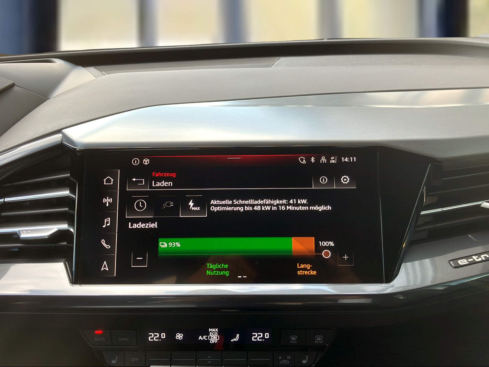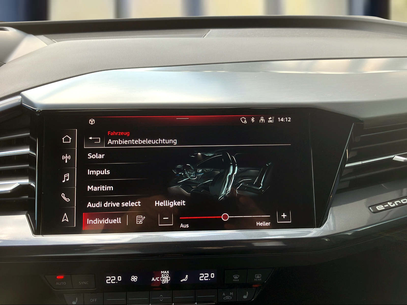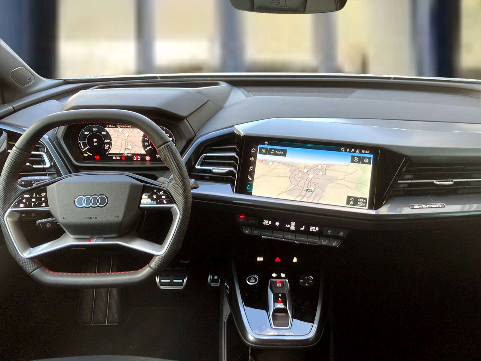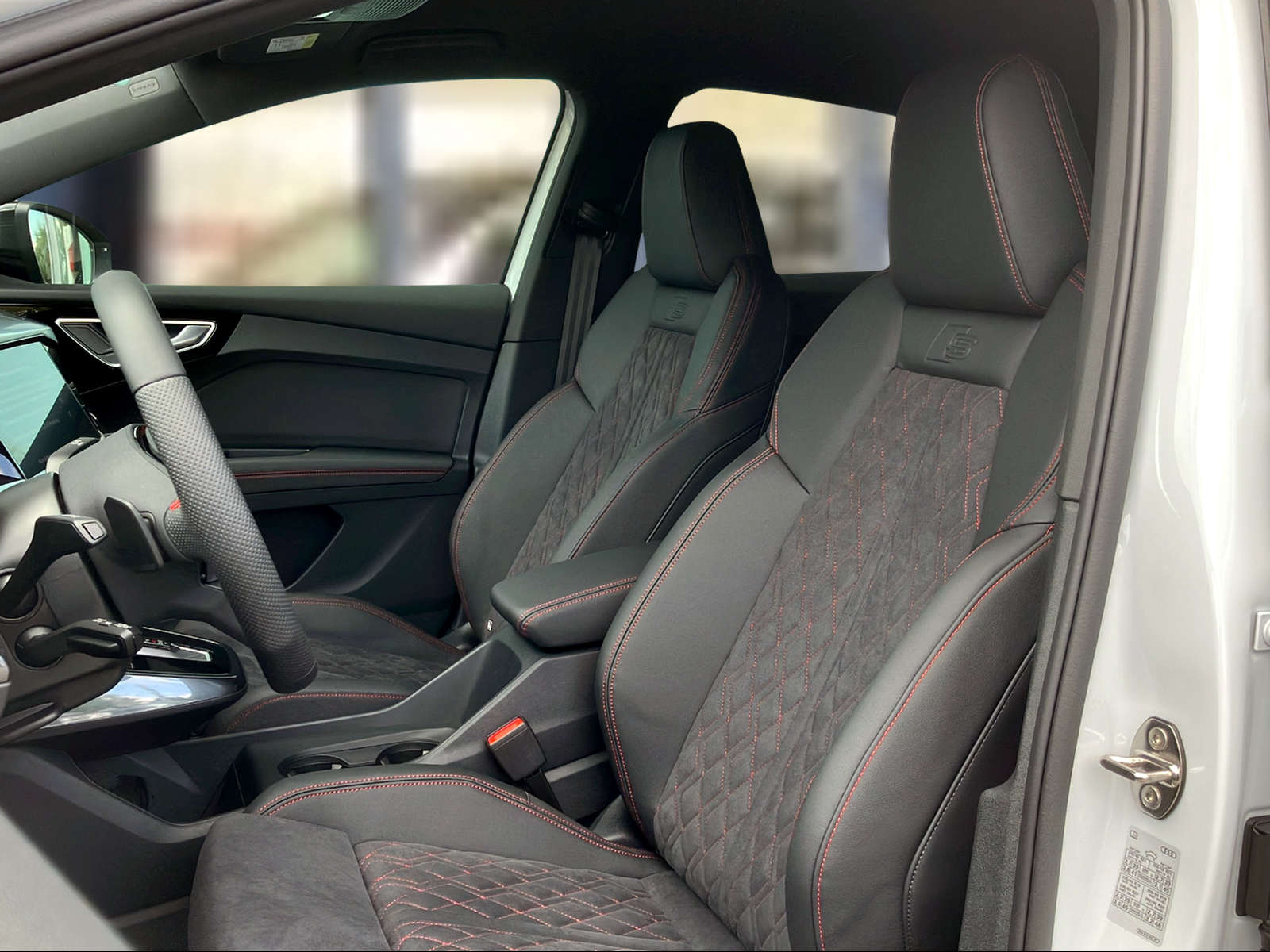 3-Punkt-Sicherheitsgurte auf allen Plätzen Airbag: Airbag für Fahrer und Beifahrer mit Beifahrer-Airbag-Deaktivierung Airbag: Seitenairbags vorn, mit Kopfairbag und Interaktionsairbag vorn Assist: Ablenkungs- und Müdigkeitserkennung Assist: Geschwindigkeitsregelanlage FOD: ACC möglich Assist: Geschwindigkeitsregelanlage mit einstellbarem Geschwindigkeitsbegrenzer Assist: Kamerabasierte Verkehrszeichenerkennung Assist: Proaktiver Insassenschutz Front, Seite und Heck Assist: Speedlimiter mit Intelligent Speed Assist Aussenspiegel in Wagenfarbe Bottom line rundum in genarbter Optik Elektronisches Stabilitäts-Programm (ESP) Entfall Leistungs- / Technologie-Schriftzug Entfall Modellbezeichnung und Leistungs- / Technologie-Schriftzug Fahrwerk: Komfortfahrwerk Farbnähte in Rot Audi Sport Funkschlüssel, ohne Safelock Garantie: 2 Jahre ohne Kilometerbegrenzung (ab 1. Inv.) Garantie: Audi Swiss Service Package + (ASSP+) Gepäckraumklappe elektrisch mit sensorgesteuerter Gepäckraumentriegelung Gepäckraumklappe ohne sensorgesteuerte Gepäckraumentriegelung Getriebe: Direktantrieb, kein Getriebe Haushaltsstecker Typ J (Schweiz) für das e-tron Ladesystem Industriestecker CEE 16A, 400V, lang und gerade für das e-tron Ladesystem Klima: Komfort Standklimatisierung Klima: Standklimatisierung Komfortmittelarmlehne vorne Lackierung: Uni-Lackierung Ladekabel Mode 3 Typ 2 32A Licht: Audi Matrix LED-Scheinwerfer Licht: Drittes Bremslicht Licht: Nebelschlussleuchte Media: Digitaler Radioempfang (DAB) Modellbezeichnung Technologieschriftzug Performance Typenzeichen Paket: Advanced Exterieur Paket: Glanzpaket mit horizontalen Fensterzierleisten in eloxiertem Aluminium Paket: Infotainmentpaket Schweiz Paket: Interieur S line mit Sportsitzen in Mikrofaser Dinamica / Kunstleder-Kombination schwarz Paket: Komfortpaket Schweiz Paket: Optikpaket schwarz plus Paket: Sicherheitspaket plus Räder: Leichtmetallräder Audi Sport, 5-W-Speichen-Stern, bronze matt Räder: Leichtmetallräder, 5-W-Speichen-Aero, graphitgrau, glanzgedreht Räder: Leichtmetallräder, 5-Y-Speichen Räder: Reifendruck-Kontrollanzeige Räder: Reifenreparatur-Set (Tire Fit) Sitze: Interieur mit Normalsitzen in Stoff Index schwarz Sitze: Kindersitzbefestigung i-Size auf der Beifahrerseite und i-Size und Top Tether Sitze: Vordersitze heizbar Sitze: Vordersitze manuell einstellbar Stossfänger advanced mit Bottom line rundum in Kontrastlackierung Manhattangrau Metallic Verbandmaterial,Warndreieck und Warnveste Wegfahrsperre elektronisch Wärmeschutzverglasung grün getönt Zentralverriegelung mit Fernbedienung ohne Dacheinsatz (Volldach) ohne Ladekabel (Industriestecker) ohne Scheinwerferreinigungsanlage