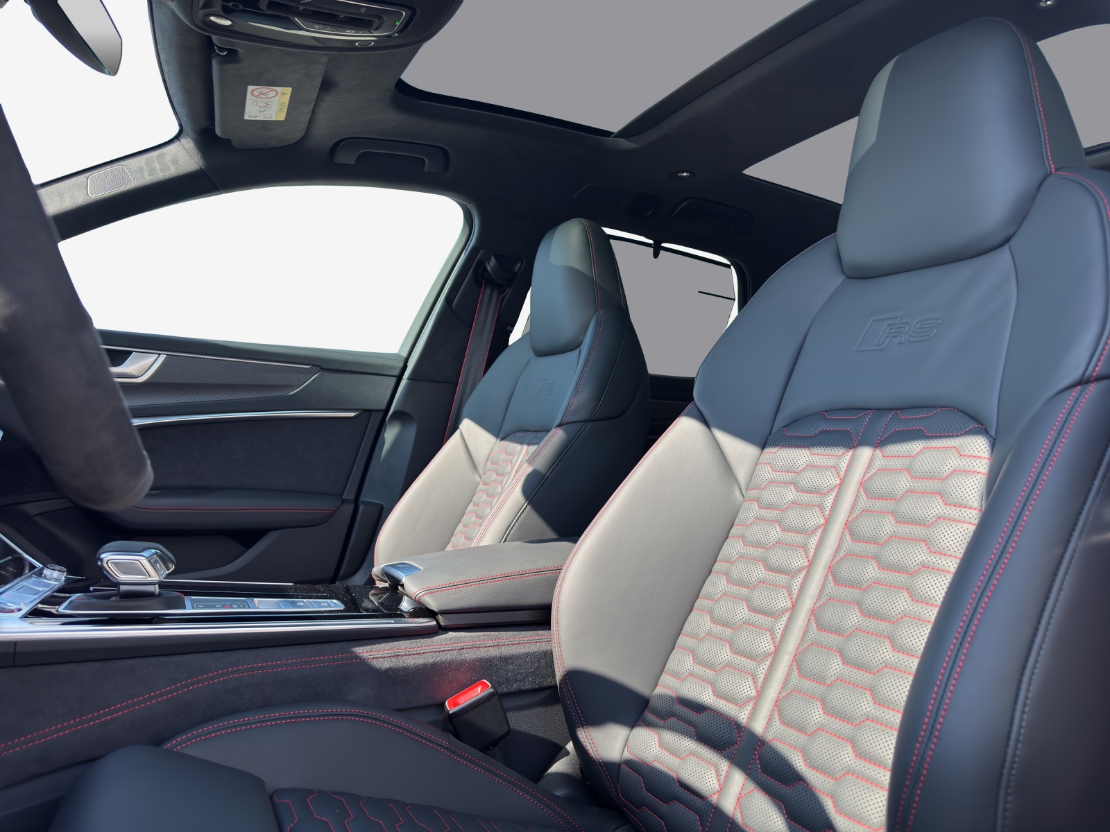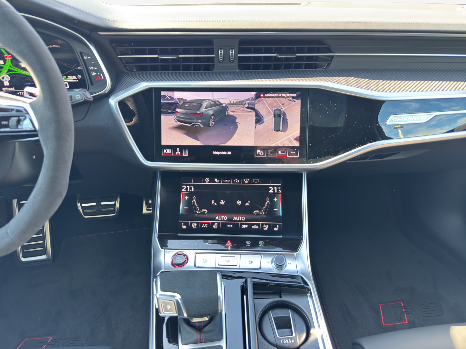 Airbag: Airbag conducteur et passager Airbag: Airbag passager désactivable Airbags latéraux et airbag rideaux Alerte de changement de voie Appuis-têtes avant réglables en Assist: Einparkhilfe plus Assist: Reconnaissance des panneaux de signalisation par caméra Audi connect Navigation & Infotainment Barres de toit en gris mat Boutons de commande optiques verre noir Boîte: Boîte automatique à 8 rapports séquentielle Boîtier de rétroviseur extérieur aspect gris mat Climatisation à régulation Clé à télécommande, avec verrouillage de sécurité Décor: incrustations aluminium Race, anthracite Fixation de siège enfant ISOFIX et Top Tether pour les sièges extérieurs à l’arrière Freins en acier RS à l’avant et à l’arrière avec étriers de frein en noir brillant Garantie: 2 ans / kilométrage illimité Hayon de coffre à bagages à ouverture et fermeture électriques Kindersitzvorrichtung ISOFIX Beifahrerseite Media: Audi Smartphone Interface Media: Récepteur digitale de la radio (DAB) Media: Service et appel d'urgence Audi connect avec contrôle du véhicule Media: Sound-Système Premium Bang & Olufsen Navigation MMI plus avec MMI touch response Paquet de lumiére d'ambiance silhouette Pare-soleil avec miroir de courtoisie éclairé côtés conducteur et passager avant, extensible Phares HD Matrix LED avec éclairage laser Audi, feux arrière LED et lave-phares Pédales et repose-pieds en acier inoxydable RS-adaptive air suspension Revêtement interne du toit noir Roues: Jantes en aluminium coulé 21 pouces au design en étoile à 10 branches Régulateur électronique de vitesse et Rétroviseur intérieur réglable jour/nuit automatique Rétroviseurs extérieurs réglables, dégivrants et rabattables électriquement Sedili: Dossier AR rabattable Sigle posterieur (Logo & Modèle) Sitze: 4-Wege-Lendenwirbelstütze für die Vordersitze Sièges AV à réglage électrique, Sièges sport RS à l’avant avec combinaison microfibre Dinamica / cuir Système de nettoyage des phares Trousse de secours avec,triangle de preesignalisation et veste de signalisation Vitrage acoustique pour les vitres de portes et les vitres latérales Volant: Volant avec réglage électrique Volant: Volant sport en cuir contour à 3 branches Écrous avec dispositif antivol et reconnaissance de desserrage de roue Éléments intérieurs en similicuir en haut et en bas