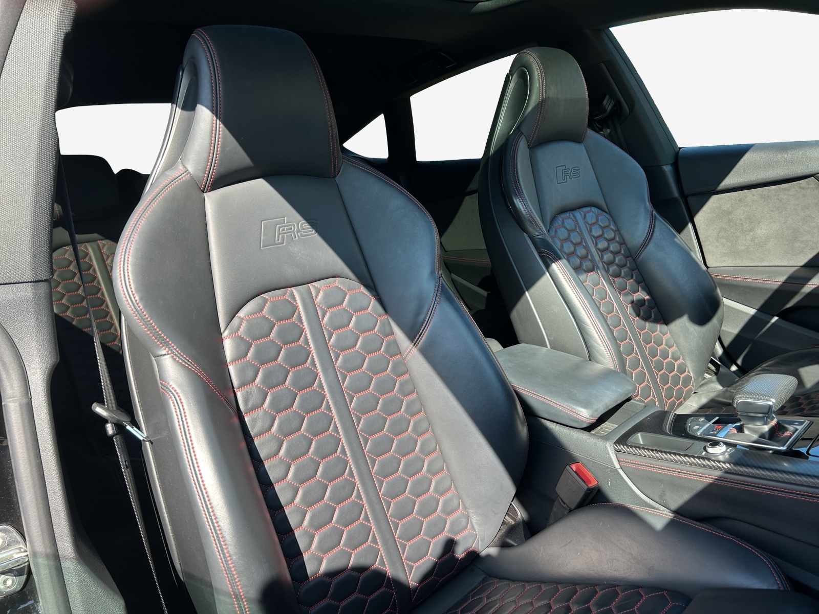 Assist: Kamerabasierte Verkehrszeichenerkennung Audi Ringe und Schriftzüge in Schwarz glänzend Audi virtual cockpit plus Dekor: Dekoreinlagen Carbon Köper matt Lackierung: Metallic-Lackierung Media: Audi connect Navigation & Infotainment Media: MMI Navigation plus mit MMI touch Paket: Assistenzpaket Fahren Paket: Assistenzpaket Parken Paket: Infotainmentpaket Smartphone Paket: Kontur / Ambiente Lichtpaket, mehrfarbig Paket: Optikpaket Carbon/Schwarz glänzend Polster: Sitzbezüge in Leder Feinnappa mit Wabensteppung für RS-Sportsitze vorne Privacy-Verglasung (Scheiben abgedunkelt) RS-Sportabgasanlage 2-flutig RS-Stahlbremsanlage mit Bremssätteln in Rot Räder: Aluminium-Gussräder im 5-Segmentspeichen-Evo-Design in Schwarz glänzend