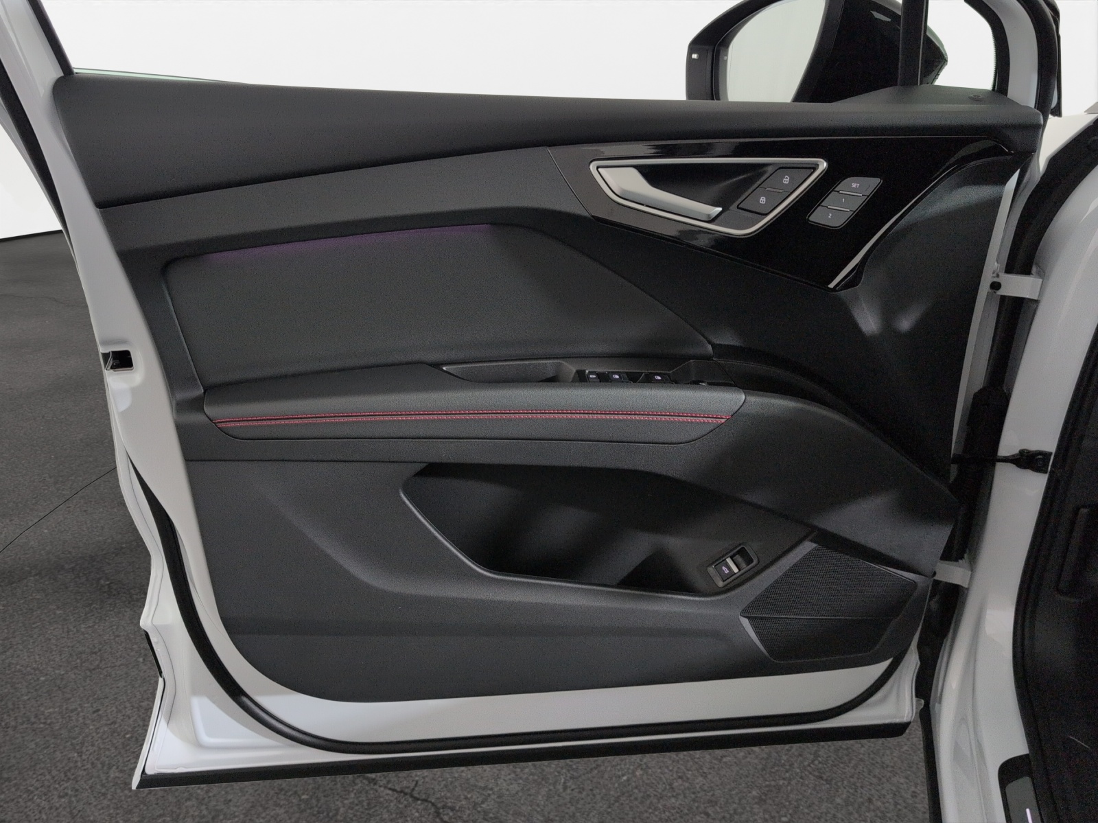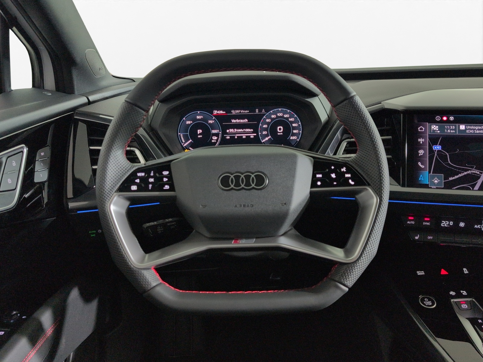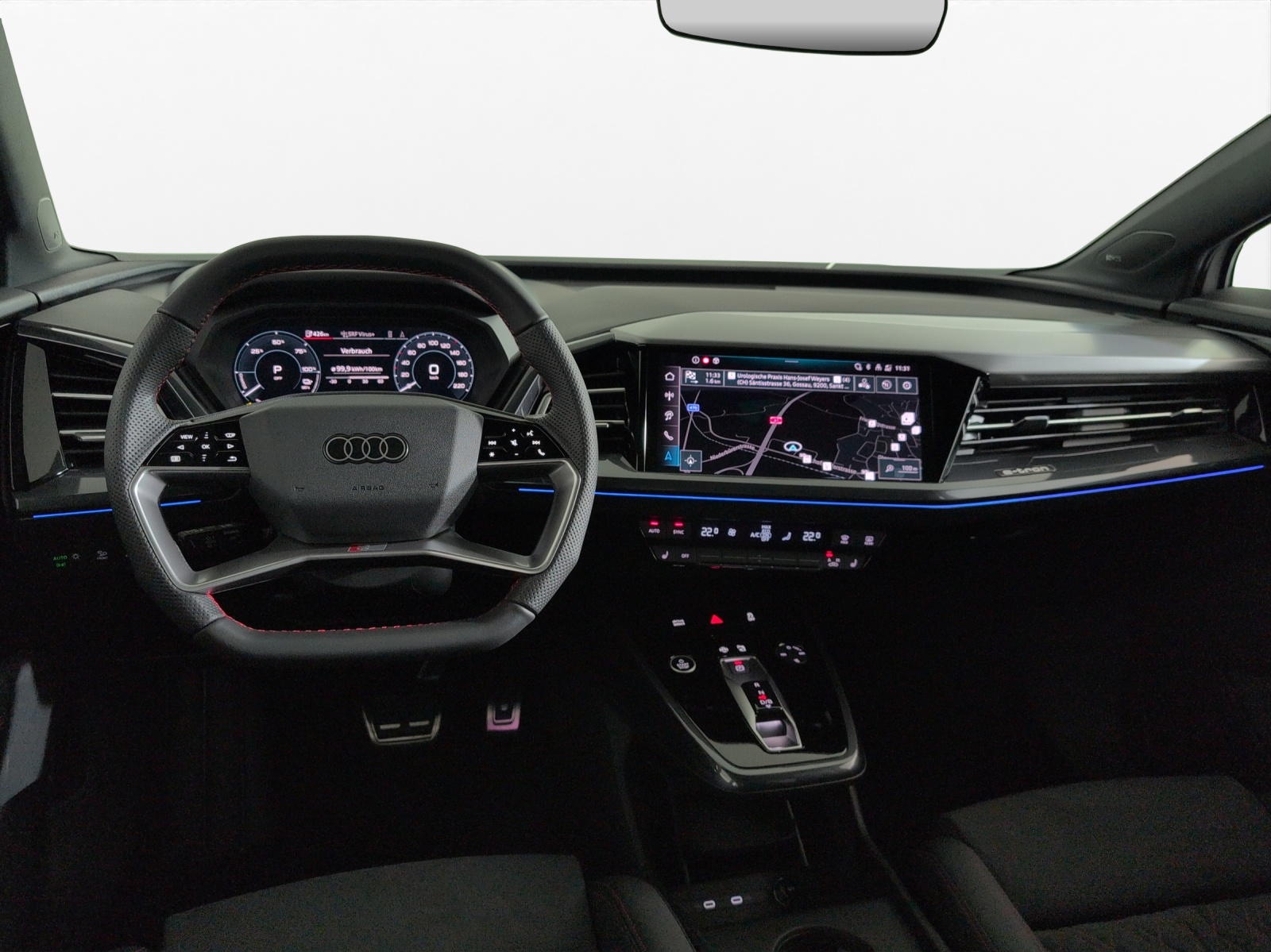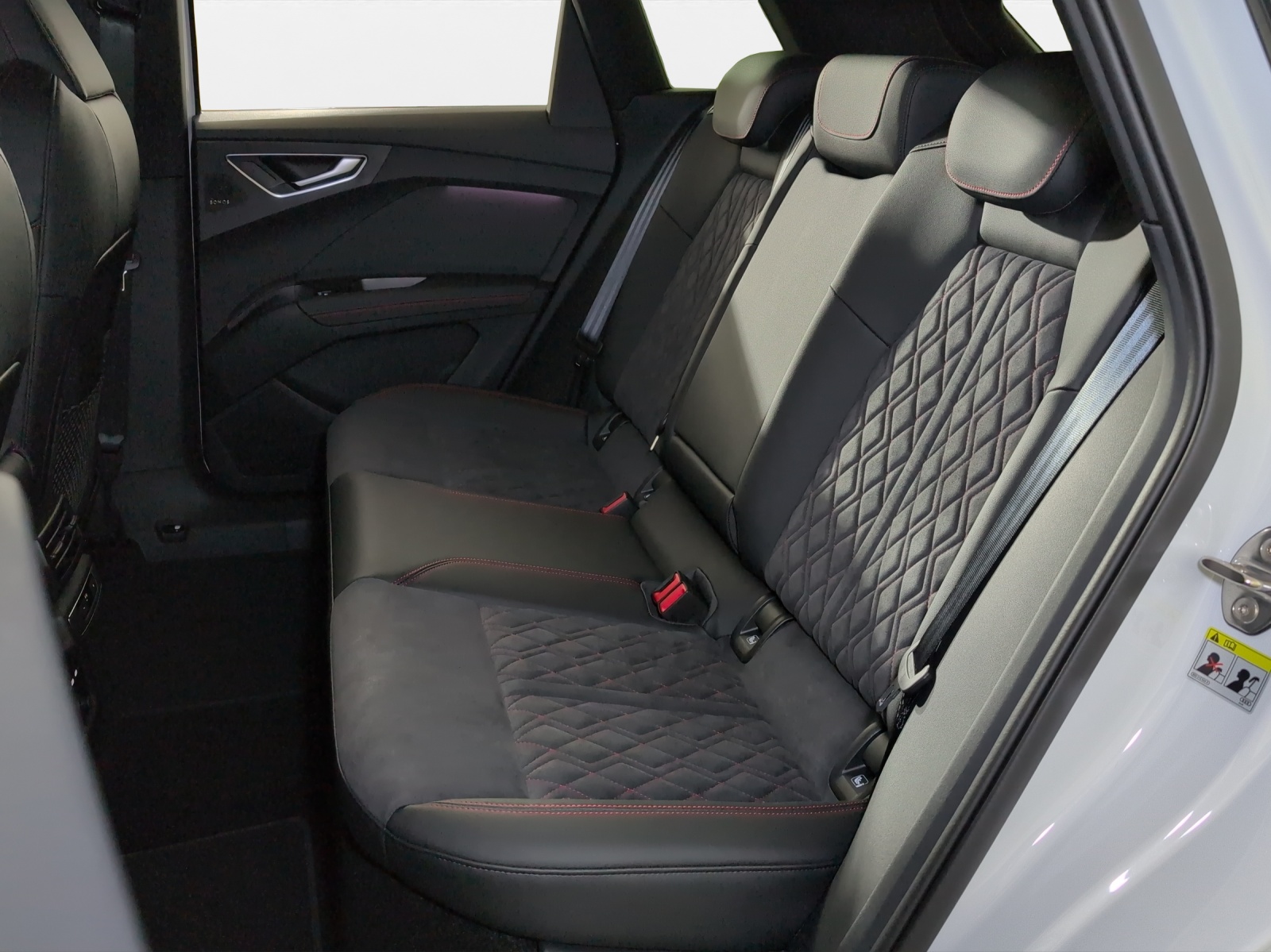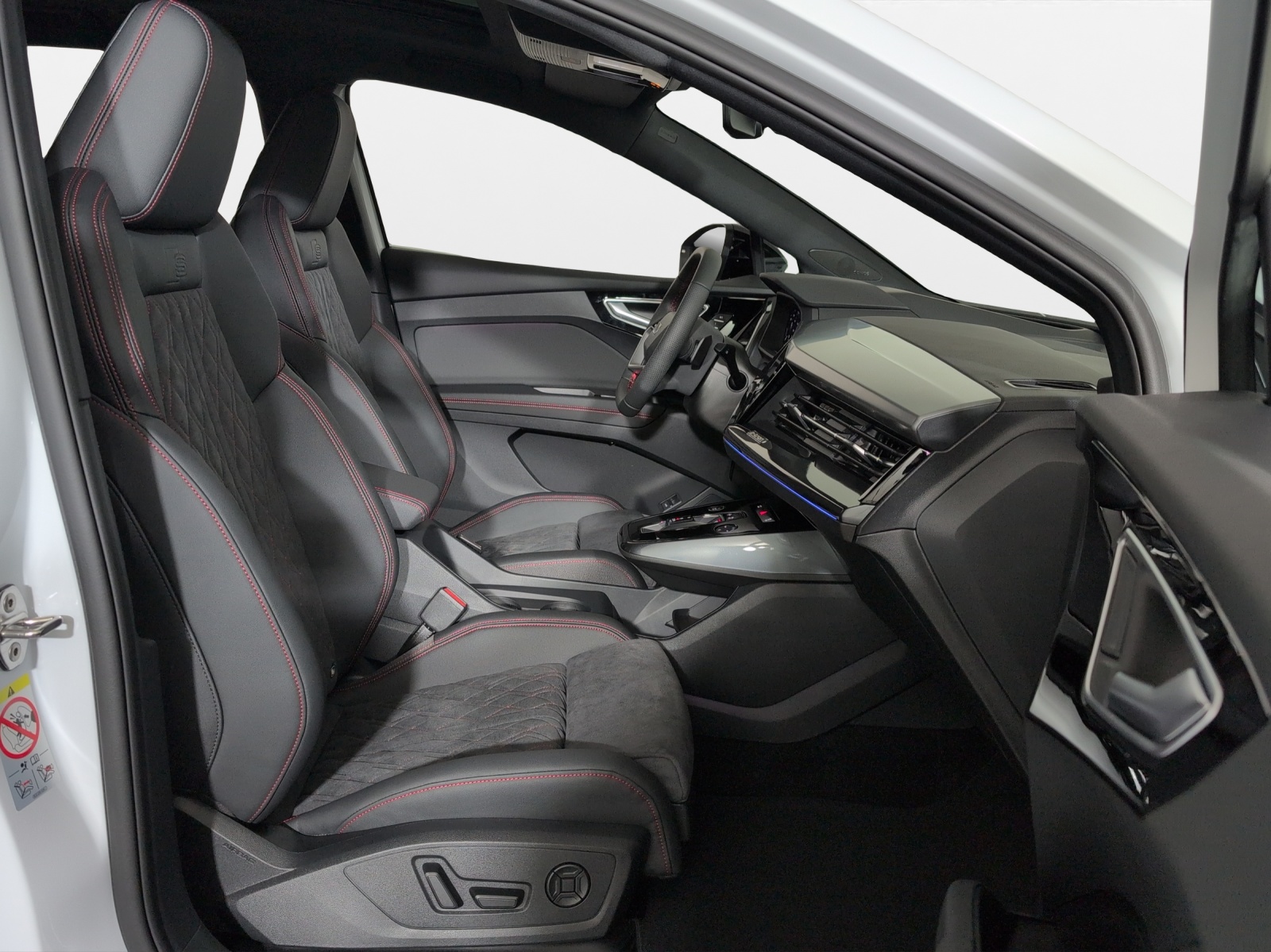 3-Punkt-Sicherheitsgurte auf allen Plätzen Airbag: Airbag für Fahrer und Beifahrer mit Beifahrer-Airbag-Deaktivierung Airbag: Seitenairbags vorn, mit Kopfairbag und Interaktionsairbag vorn Assist: Ablenkungs- und Müdigkeitserkennung Assist: Geschwindigkeitsregelanlage FOD: ACC möglich Assist: Geschwindigkeitsregelanlage mit einstellbarem Geschwindigkeitsbegrenzer Assist: Kamerabasierte Verkehrszeichenerkennung Assist: Proaktiver Insassenschutz Front, Seite und Heck Assist: Speedlimiter mit Intelligent Speed Assist Aussenspiegel in Wagenfarbe Bottom line rundum in genarbter Optik Elektronisches Stabilitäts-Programm (ESP) Fahrwerk: Komfortfahrwerk Funkschlüssel, ohne Safelock Garantie: 2 Jahre ohne Kilometerbegrenzung (ab 1. Inv.) Gepäckraumklappe ohne sensorgesteuerte Gepäckraumentriegelung Getriebe: Direktantrieb, kein Getriebe Komfortmittelarmlehne vorne Lackierung: Uni-Lackierung Ladekabel Mode 3 Typ 2 32A Licht: Audi Matrix LED-Scheinwerfer Licht: Drittes Bremslicht Licht: Nebelschlussleuchte Media: Digitaler Radioempfang (DAB) Modellbezeichnung Technologieschriftzug Performance Typenzeichen Paket: Glanzpaket mit horizontalen Fensterzierleisten in eloxiertem Aluminium Paket: Infotainmentpaket Schweiz Paket: Interieur S line mit Sportsitzen in Mikrofaser Dinamica / Kunstleder-Kombination schwarz Paket: Komfortpaket Schweiz Räder: Leichtmetallräder, 5-W-Speichen-Aero, graphitgrau, glanzgedreht Räder: Reifendruck-Kontrollanzeige Räder: Reifenreparatur-Set (Tire Fit) Sitze: Kindersitzbefestigung i-Size auf der Beifahrerseite und i-Size und Top Tether Sitze: Vordersitze heizbar Sitze: Vordersitze manuell einstellbar Stossfänger advanced mit Bottom line rundum in Kontrastlackierung Manhattangrau Metallic Verbandmaterial,Warndreieck und Warnveste Wegfahrsperre elektronisch Wärmeschutzverglasung grün getönt Zentralverriegelung mit Fernbedienung ohne Dacheinsatz (Volldach) ohne Ladekabel (Industriestecker) ohne Scheinwerferreinigungsanlage