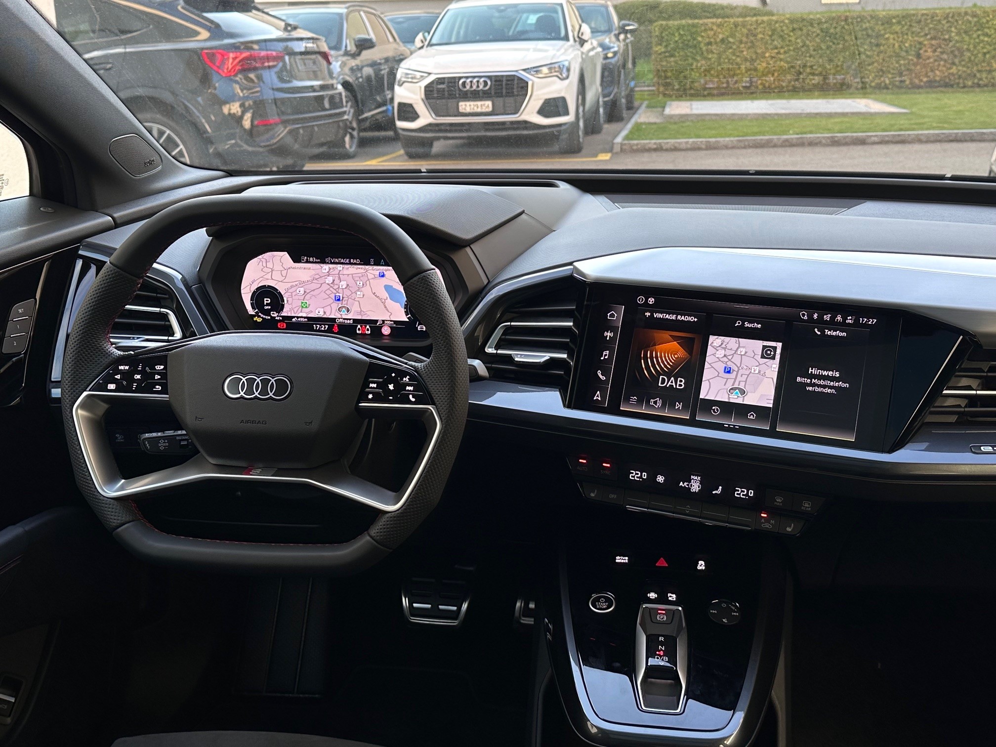 [3S2] Dachreling in schwarz [GB1] LTE-Unterstützung für Audi phone box [4E6] Gepäckraumklappe elektrisch öffnend und schliessend für Komfortschlüssel [A41] Garantie: Audi Swiss Service Package + (ASSP+) - Reparatur 3 Jahre oder 100 000 km, Service 10 Jahre oder 100 000 km - Es gilt jeweils das zuerst Erreichte [4ZP] Optikpaket schwarz plus [WKB] Paket Komfort [YYB] Farbnähte in rot Audi Sport [PWM] Interieur S line mit Sportsitzen in Mikrofaser Dinamica/KunstlederKombination schwarz, 40:20:40 [WSO] Paket Infotainment