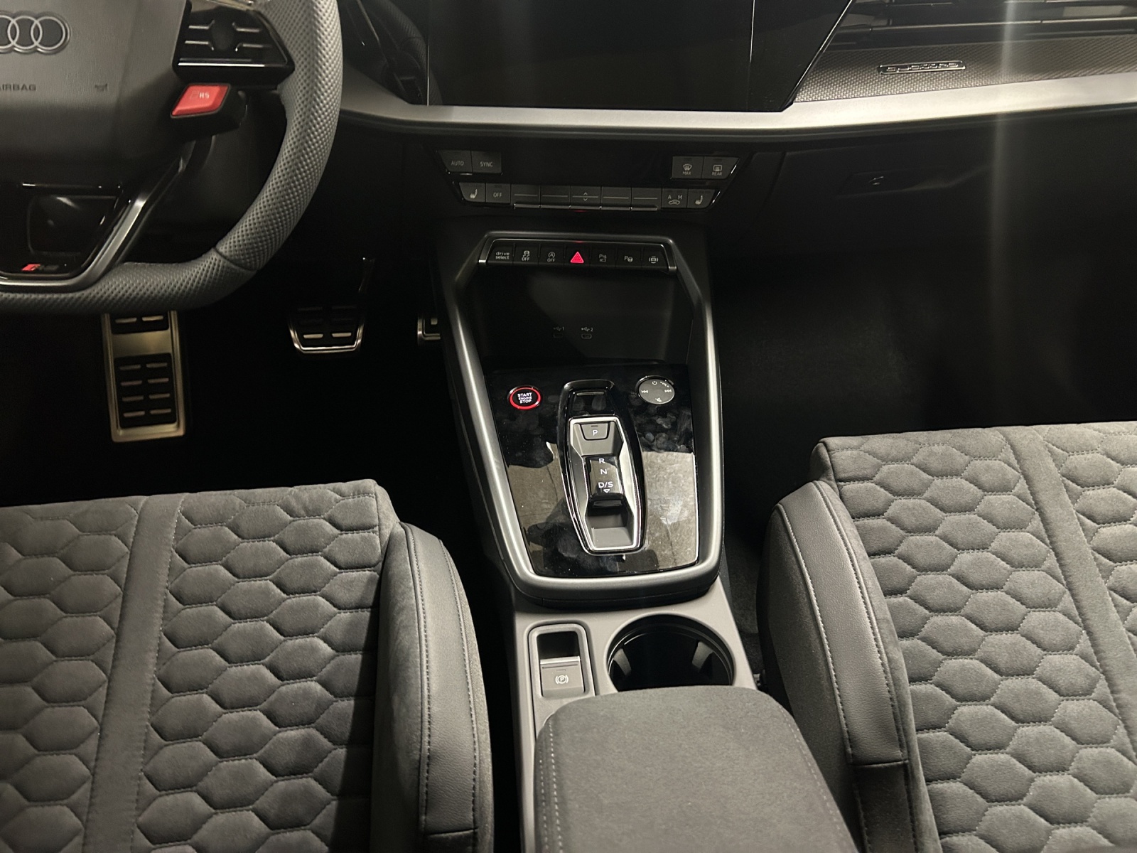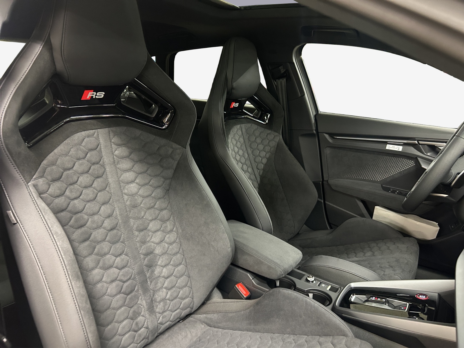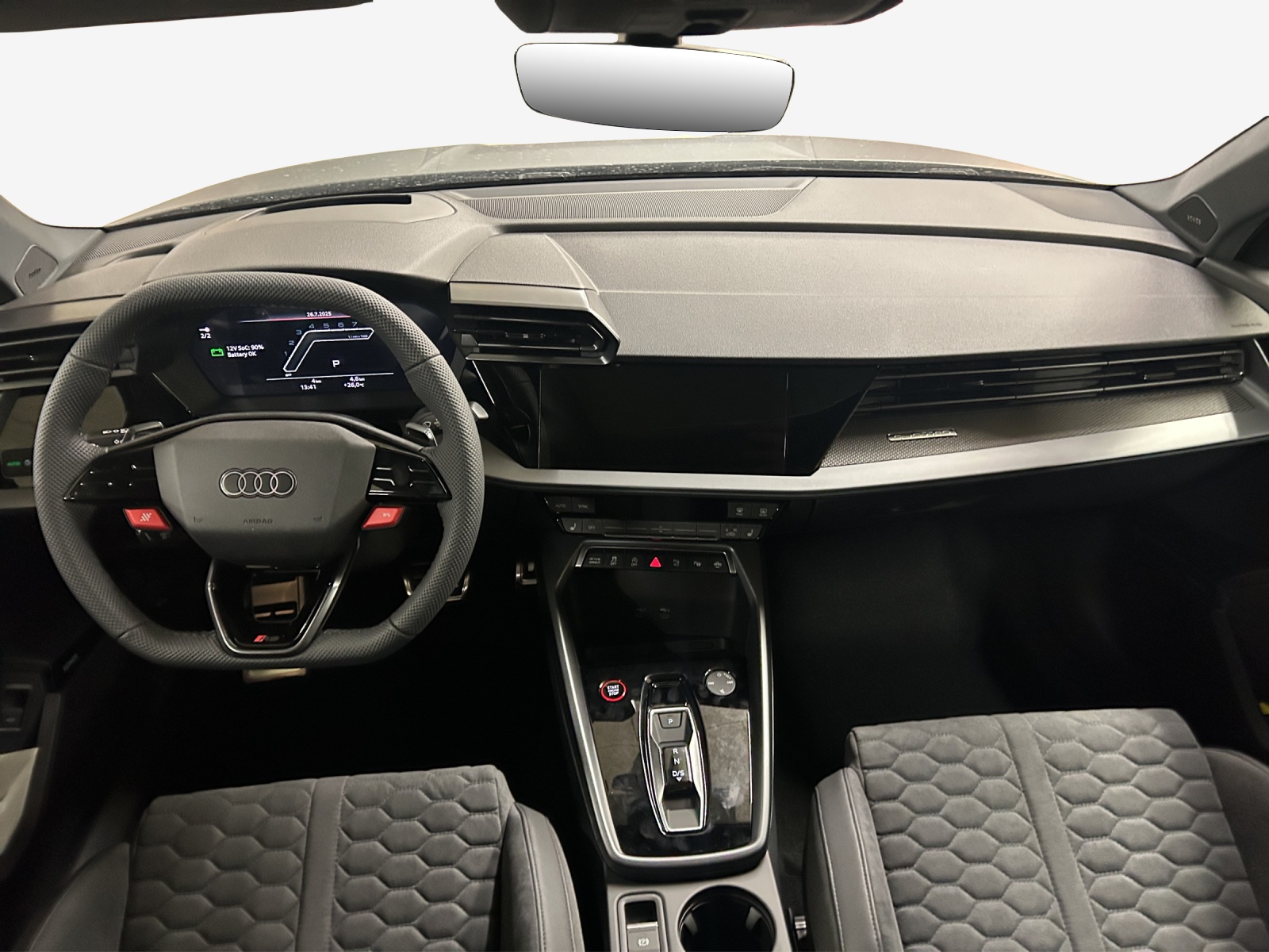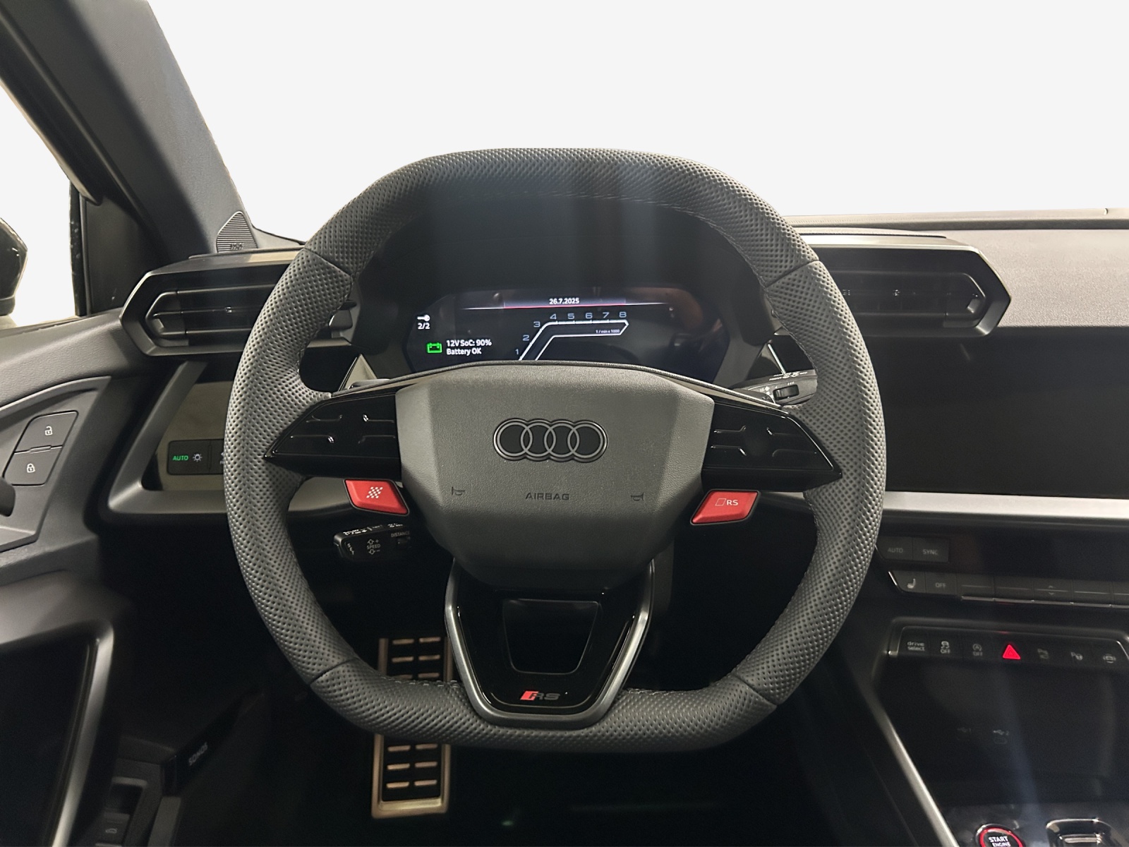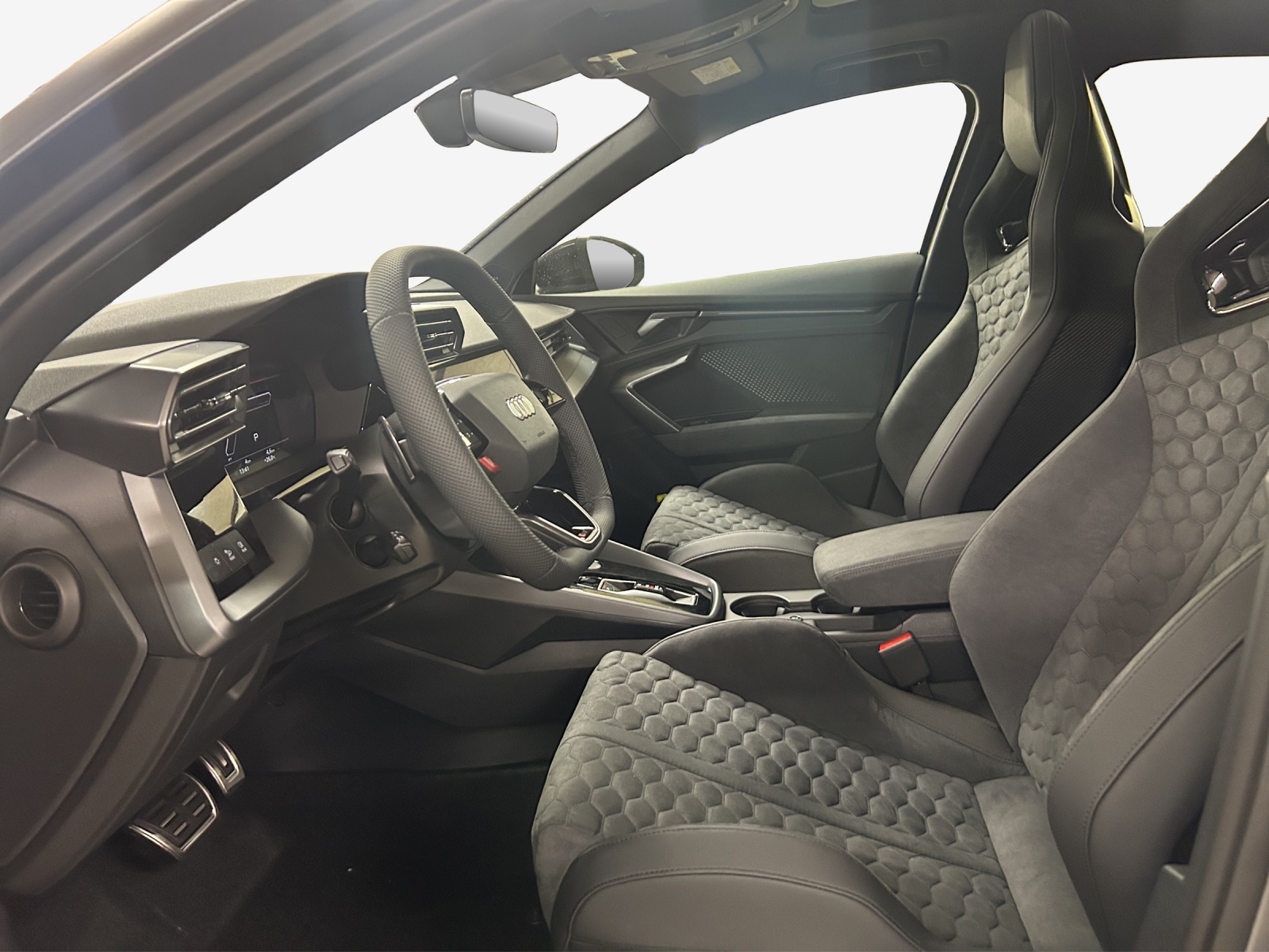 Airbag: Airbags latéraux à l'avant et à l'arrière avec système d'airbag de tête Assist: Assistant d'arrêt Assist: Assistant de conduite adaptative avec assistant d'urgence Décor: Éléments intérieurs inférieurs en microfibre Dinamica noir Lumière: Phares Matrix LED, feux arrière LED et dispositif de lave-feux Pack: Pack climatisation plus Pare-brise avec vitrage athermique Peinture: Effet mat polaire Audi exclusive Roues: Jantes, 10 branches croisées, gris satiné mat Roues: Écrous de roues antivol Sièges: Fixation de siège enfant ISOFIX avant, sangle supérieure Sièges: sièges baquets RS Tissu: Combinaison microfibres Dinamica/cuir avec surpiqûres alvéolées Vitrage de contrôle solaire, obscurci