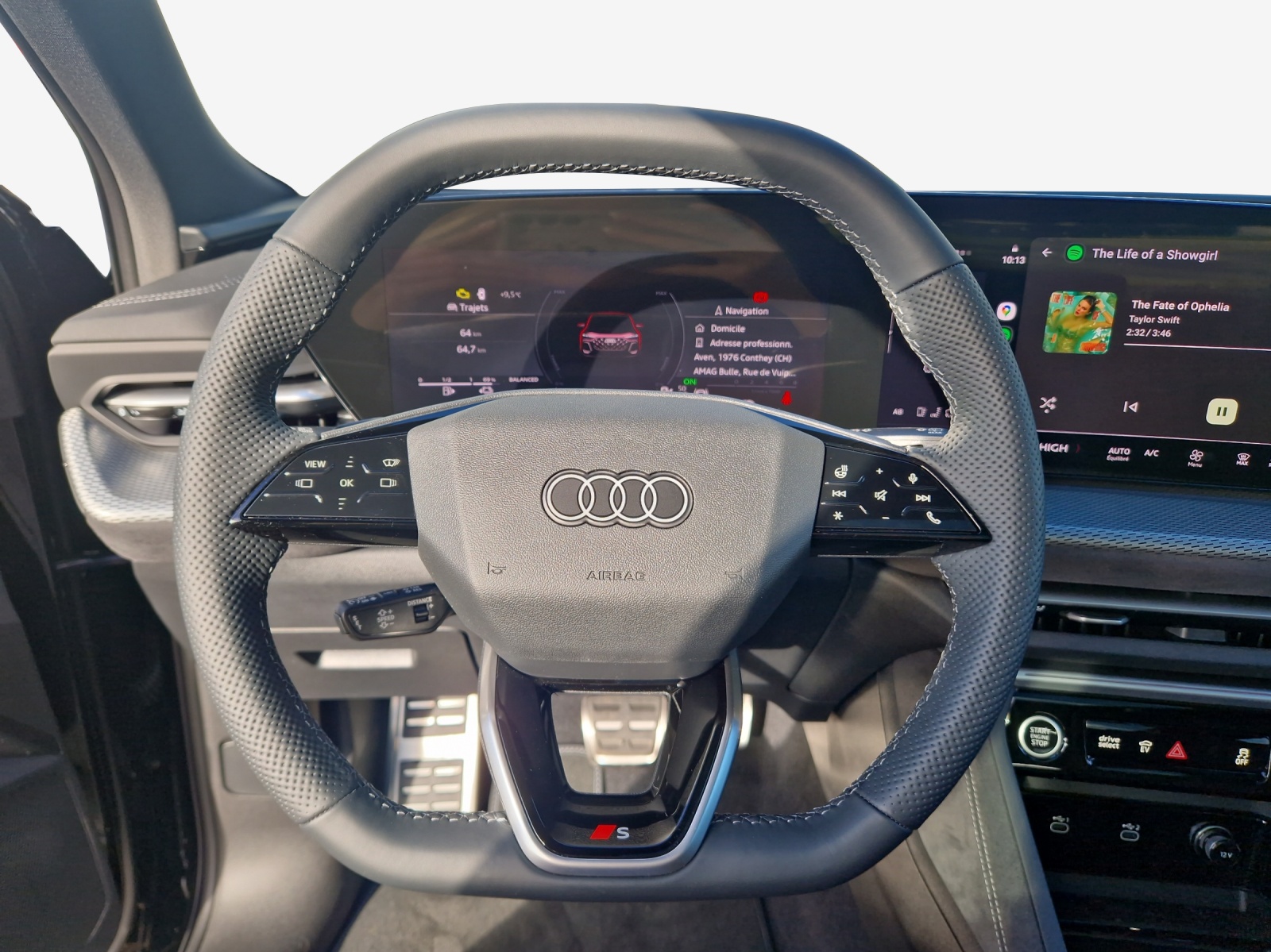 Airbag latéral à l’avant, avec airbag latéral de tête et airbag interactif à l’avant Airbag: Airbags pour conducteur et passager avant avec désactivation de l’airbag passager avant Appel d’urgence Audi connect et service avec Audi connect Remote & Control Assist: Alerte de trafic transversal à l’avant Assist: Assistance au stationnement plus avec affichage de la distance Assist: Assistant de freinage d’urgence à l’avant Assist: Assistant de vitesse adaptative Assist: Assistant d’évitement de collision et de changement de direction Assist: Détecteur de distraction et de fatigue Assist: Limiteur de vitesse basé sur la reconnaissance des panneaux de signalisation Assist: Reconnaissance des panneaux de Assist: avertissement de sortie de voie Assist: Électronique contrôle de la traction Audi connect Navigation & Infotainment Audi virtual cockpit plus Baguettes décoratives de vitres aspect aluminium Barres de toit en aluminium Boîte: automatique S tronic à 7 vitesses Clima: Climatisation à l’arrêt Climatisation automatique confort 3 Clé à télécommande sans verrouillage de sécurité Câble de charge mode 3 pour charge publique jusqu'à 22 kW Decor: Applications décoratives aluminium mat brossé avec gaufrage linéaire anthracite Direction assistée électromécanique Décor: Aspect aluminium à l'intérieur Désignation du modèle à l’arrière Garantie: Audi Garantie 2 ans / kilométrage illimité Lumière: Assistance aux feux de route Lumière: Feux de jour avec éclairage d’assistance et fonction Coming home et Leaving home Lumiére: Feux arrière LED pro Lève-vitres électriques AV Media: Ports USB avec fonction de recharge dans la première et la deuxième rangée de sièges Mèdias: Audi Application Store et interface pour smartphone Mèdias: Audi phone box light Mèdias: Audi système de Sound Mèdias: Réception radio numérique Pack: Intérieur S avec sièges sport, combinaison cuir/similicuir noir Pack: Pack Éclairage d’ambiance plus Pare-brise avec isolation thermique et vitrage acoustique Peinture:: Peinture contrastée gris Tambora métallisé Portes: Ouverture confort du couvercle du coffre à bagages Programme de stabilité électronique ESP Roues: Affichage du contrôle de la pression des pneus Roues: Jantes, Aero à 10 branches, gris graphite, finition brillante Roues: Set de réparation pour les pneus Rétroviseur intérieur réglable jour/nuit Rétroviseurs extérieurs réglables, dégivrants et rabattables électriquement avec fonction Sièges: Banquette arrière plus Sièges: Fixation pour siège enfant i-Size côté passager et i-Size et Top Tether sur les sièges Sièges: Sièges AV à réglage électrique Suspension: Châssis Sport S Suspension: Étriers de frein, colorés Système antiblocage des roues (ABS) Système de nettoyage des phares Système d’avertissement acoustique du véhicule Système d’échappement standard Tapis de sol à l’avant et à l’arrière Trousse de secours avec,triangle de preesignalisation et veste de signalisation Verrouillage central avec télécommande Vitres latérales et arrière athermiques Volant: Volant avec réglage manuel