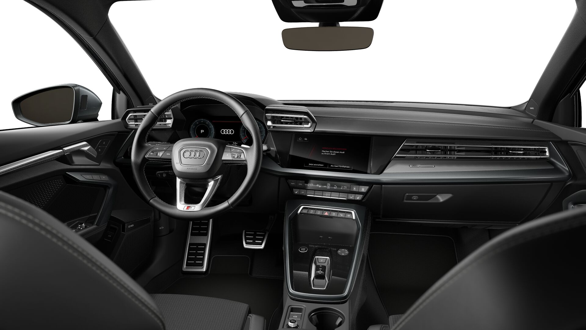 Sonderausstattung Assist: Adaptiver Fahrassistent mit Notfallassistent Assist: Spurwechselwarnung mit Ausstiegswarnung und Querverkehrassistent hinten Garantie: Audi Garantie: 4 Jahre oder 80'000 km (ab 1. Inv.) Paket: Ambiente-Lichtpaket pro Paket: Assistenzpaket Fahren und Parken pro und Assistenzpaket Schutz- und Warnsysteme plus Paket: Assistenzpaket Schutz- und Warnsysteme plus Paket: Interieur S mit Sportsitzen, Stoff/Kunstleder-Kombination schwarz Paket: Klimatisierungspaket plus Paket: Optikpaket schwarz plus Paket: Paket Premium Plus A3 Sportback / allstreet Räder: Leichtmetallräder - 18 Zoll - 5-Y-Speichen, graphitgrau, glanzgedreht Sitze: Rücksitzlehne, geteilt umklappbar Sonnenschutzverglasung, abgedunkelt