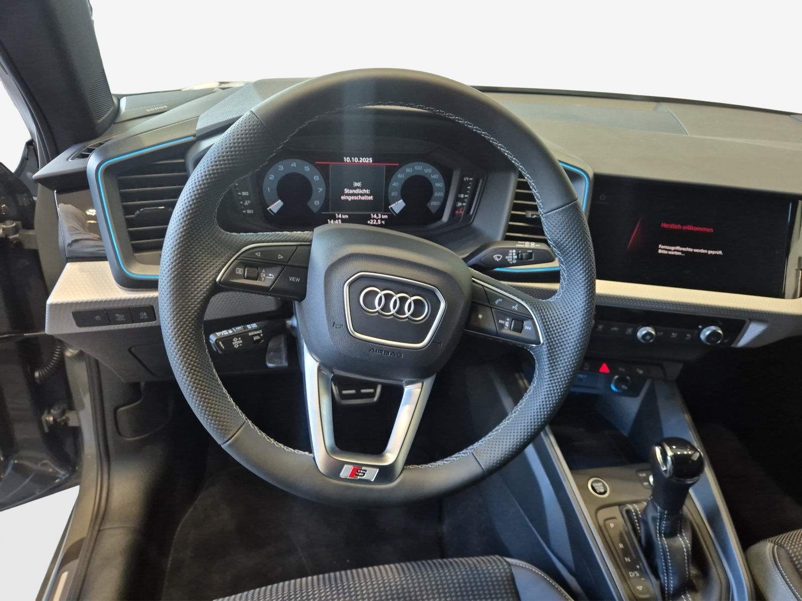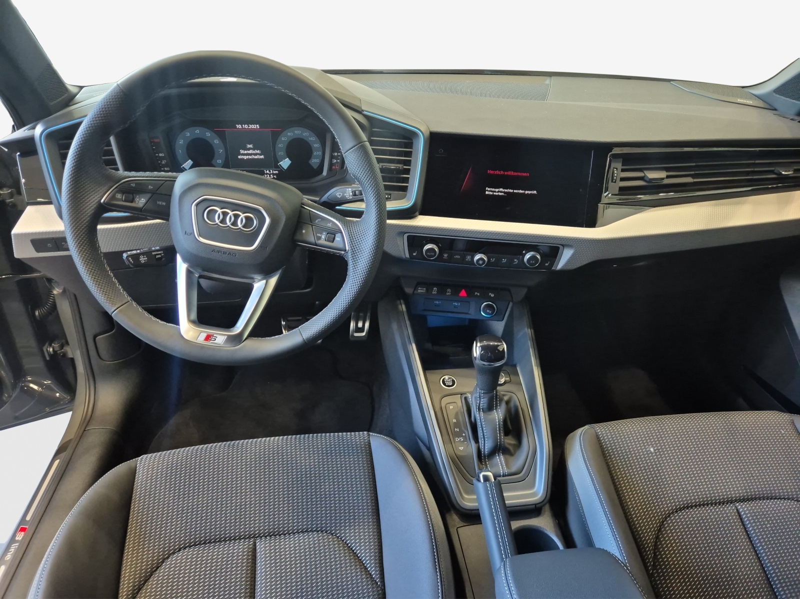 Assist: Audi pre sense basic Assist: Spurwechselwarnung Dachhimmel in Stoff schwarz Dekor: Interieurelemente in Kunstleder Entfall Modellbezeichnung und Leistungs- / Technologie-Schriftzug Klima: 2-Zonen-Komfortklimaautomatik Komfortschlüssel (ohne Safelock) Lackierung: Dach in Kontrastfarbe Media: SONOS Premium Soundsystem Paket: Kontur / Ambiente Lichtpaket, mehrfarbig Paket: Optikpaket schwarz plus Paket: S line mit Sportsitz (Stoff Puls / Kunstleder mono.pur 550- Kombination schwarz) Räder: Aluminium-Gussräder - 17 Zoll - 5-Arm-Polygon, schwarz Sonnenschutzverglasung abgedunkelt