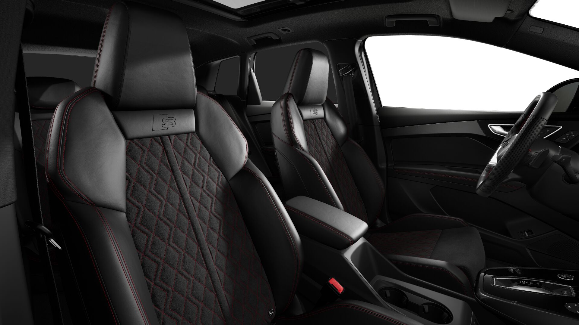 [3S2] Dachreling in schwarz [%99] Ladekarte inkl. Startguthaben (im Handschuhfach) [A09] Vertragszusatz: Voraussetzungen für maximale Nennleistung [4E6] Gepäckraumklappe elektrisch öffnend und schliessend für Komfortschlüssel [4ZP] Optikpaket schwarz plus [2L] taifungrau metallic [YYB] Farbnähte in rot Audi Sport [PWM] Interieur S line mit Sportsitzen in Mikrofaser Dinamica/KunstlederKombination schwarz, 40:20:40 [A41] Garantie: Audi Swiss Service Package + (ASSP+) - Reparatur 3 Jahre oder 100 000 km, Service 10 Jahre oder 100 000 km - Es gilt jeweils das zuerst Erreichte [AR] schwarz - expressrot [70C] Ladekabel Mode 2 Typ 2 / J (8A) [WKB] Paket Komfort [WSO] Paket Infotainment [GB1] LTE-Unterstützung für Audi phone box