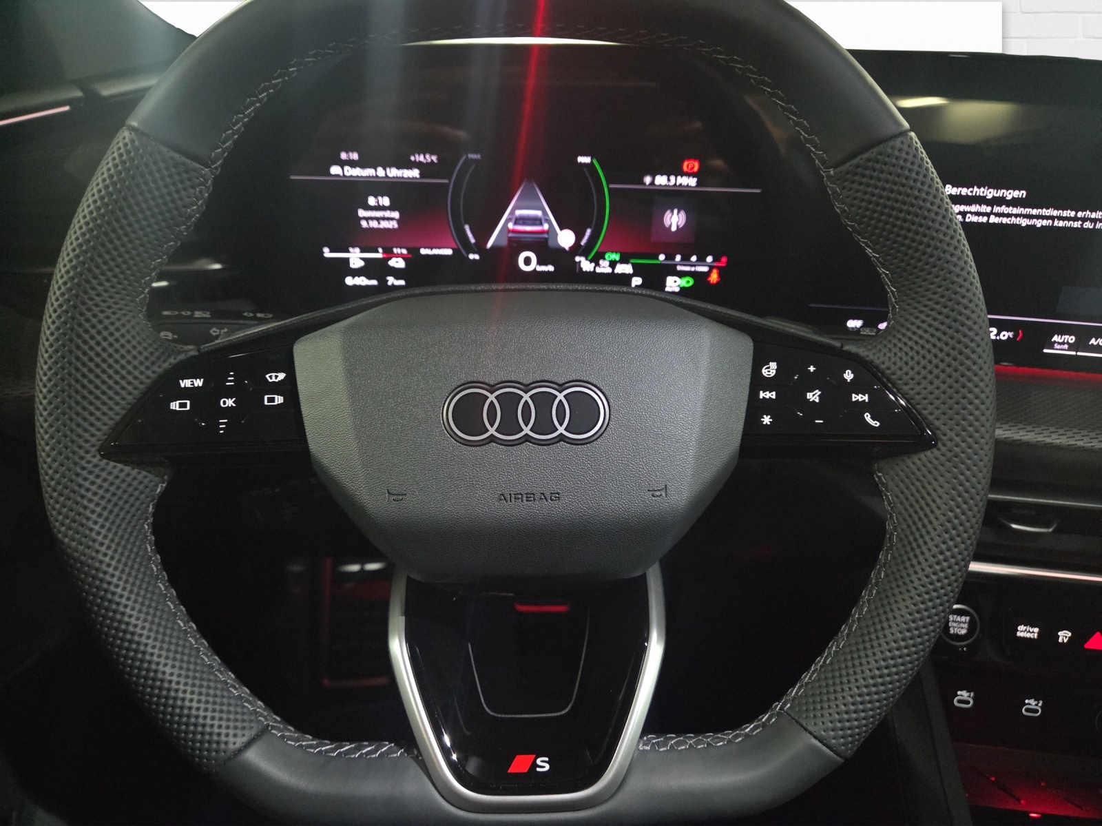 Airbag: Airbag für Fahrer und Beifahrer mit Beifahrer-Airbag-Deaktivierung Airbag: Seitenairbags vorn, mit Kopfairbag und Interaktionsairbag vorn Akustisches Fahrzeug-Warnsystem Assist: Ablenkungs- und Müdigkeitserkennung Assist: Adaptiver Geschwindigkeitsassistent Assist: Ausweichassistent und Abbiegeassistent Assist: Einparkhilfe plus mit Distanzanzeige Assist: Kamerabasierte Verkehrszeichenerkennung Assist: Notbremsassistent vorn Assist: Parkassistent plus Assist: Querverkehrassistent vorn Assist: Spurverlassenswarnung Assist: Traktionskontrolle Assist: Verkehrszeichenbasierter Geschwindigkeitsbegrenzer Audi connect Notruf & Service mit Audi connect Remote & Control Audi virtual cockpit plus Aussenspiegel elektrisch einstell-, beheiz- und anklappbar, beidseitig automatisch abblendend Aussenspiegel in Wagenfarbe Dekor: Aluminiumoptik im Interieur Dekor: Dekoreinlagen Aluminium matt gebürstet mit Linearprägung anthrazit Elektrische Fensterheber vorne Elektronisches Stabilitäts-Programm (ESP) Entfall Modellbezeichnung Fahrwerk: Bremssättel, farbig Fahrwerk: S-Sportfahrwerk Fensterzierleisten Aluminiumoptik Frontscheibe in Wärmeschutz- und Akustikverglasung Funkschlüssel, mit Safelock Funkschlüssel, ohne Safelock Fussmatten vorne und hinten Garantie: Audi Garantie 2 Jahre ohne Kilometerbegrenzung (ab 1. Inv.) Garantie: Audi Swiss Service Package + (ASSP+) Getriebe: 7-Gang- Automat S tronic Innenspiegel automatisch abblendbar Klima: 3-Zonen-Klimatisierungsautomatik Klima: Standklimatisierung Lackierung: Kontrastlackierung in Tamboragrau Metallic Lackierung: Uni-Lackierung Ladekabel Mode 3 für öffentliches Laden bis 22 kW Ladekabel mit Industriestecker CEE 16A/400V/6 h lang + gerade Lenkrad: Lenkradeinstellung manuell Licht: Fernlicht-Assistent Licht: LED-Heckleuchten pro Licht: LED-Scheinwerfer plus Licht: Tagesfahrlicht mit Assistenzfahrlicht u.Coming- u. Leaving-home Funktion automatisch Media: Audi Application Store und Smartphone-Interface Media: Audi connect Navigation & Infotainment Media: Audi phone box light Media: Digitaler Radioempfang Media: USB-Anschlüsse mit Ladefunktion in erster und zweiter Sitzreihe Modellbezeichnung am Heck Paket: Ablagen- und Gepäckraumpaket Paket: Ambiente Lichtpaket plus Paket: Interieur S mit Sportsitzen in Leder/Kunstleder-Kombination schwarz Paket: Klimatisierungspaket Räder: Reifen 255/45 R20 105W XL Rollwiderstandsoptimiert Räder: Reifendruck-Kontrollanzeige Räder: Reifenreparatur-Set (Tire Fit) Räder: Räder, 10-Arm-Aero, graphitgrau, glanzgedreht Räder: Räder, 5-Doppelspeichen, graphitgrau, glanzgedreht Scheiben seitlich und hinten in Wärmeschutzverglasung Scheinwerfer-Reinigungsanlage Servolenkung Elektromechanisch Sitze: Kindersitzbefestigung i-Size auf der Beifahrerseite und i-Size und Top Tether Sitze: Vordersitze elektrisch verstellbar Sitze: Vordersitze heizbar Türen: Komfortöffnung Gepäckraumklappe Verbandmaterial,Warndreieck und Warnveste Wegfahrsperre elektronisch Zentralverriegelung mit Fernbedienung