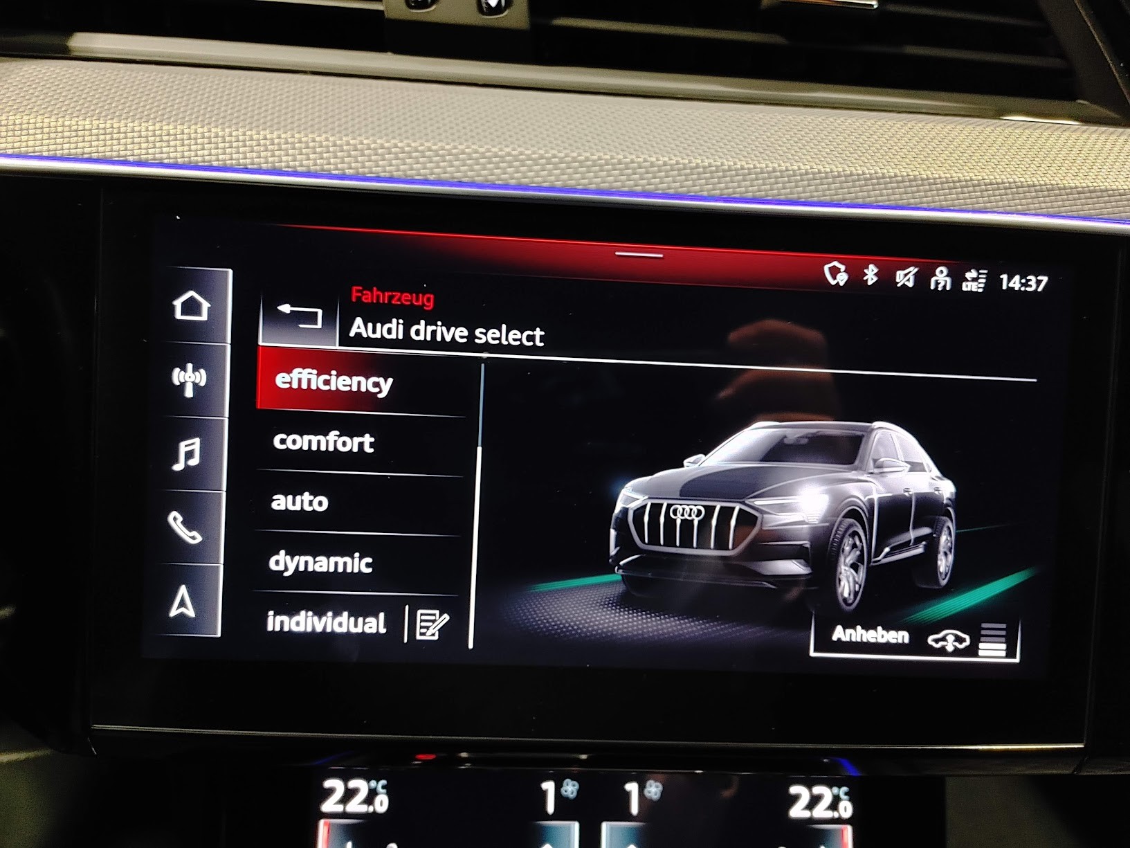 Airbag: Airbag Beifahrer deaktivierbar Airbag: Seitenairbags vorne Airbag: Window-Kopfairbags Akustisches Fahrzeug-Warnsystem (AVAS) Assist: Audi pre sense front Assist: Geschwindigkeitsregelanlage inklusive Geschwindigkeitsbegrenzer Assist: Spurverlassenswarnung Audi connect Notruf & Service mit Audi connect Remote & Control Audi virtual cockpit plus Aussenspiegel elektrisch einstell- und beheizbar, mit Memoryfunktion Aussenspiegelgehäuse in Aluminiumoptik Bedientasten schwarz matt Dekor: Dekoreinlagen Aluminium matt gebürstet dunkel Einparkhilfe plus mit Umgebungsanzeige Einstiegsleisten mit Aluminiumeinlegern vorne und hinten, beleuchtet, vorne mit S-Schriftzug Elektronisches Stabilitäts-Programm (ESP) Fahrwerk: Adaptive air suspension sport Frontscheibe in Akustikverglasung Fussmatten vorne und hinten Garantie: 2 Jahre ohne Kilometerbegrenzung (ab 1. Inv.) Gepäckraumabdeckung (manuell) Gepäckraumklappe elektrisch öffnend und schliessend Haushaltsstecker Typ J (CH) Industriestecker CEE 16A, 400V, lang und gerade für das e-tron Ladesystem Innenspiegel automatisch abblendbar Kindersitzbefestigung ISOFIX und Top Tether für die Rücksitzbank Kindersitzvorrichtung ISOFIX Beifahrerseite Klima: 2-Zonen-Komfortklimaautomatik Klima: Standklimatisierung Komfortmittelarmlehne vorne Lackierung: Uni-Lackierung Lenkrad: Sportlederlenkrad mit Multifunktion und Schaltwippen Licht: LED-Scheinwerfer mit Vorbereitung für weitere Lichtfunktionen Licht: Scheinwerfer-Reinigungsanlage Media: Audi connect Navigation & Infotainment Media: Audi music interface Media: Bluetooth-Schnittstelle Media: Digitaler Radioempfang (DAB) Media: MMI Navigationssystem Plus Modellbezeichnung und Leistungs- / Technologie-Schriftzug On-Board-Ladegerät bis 11 kW (AC) Polster : Alcantara Frequenz / Leder-Kombination, Sportsitze vorne Räder: Leichtmetallräder, 5-V-Speichen (S-Design) Räder: Reifendruck-Kontrollanzeige Räder: Reifenreparatur-Set (Tire Fit) S line-Emblem im Kühlerschutzgitter Sitze: 4-Wege-Lendenwirbelstütze für die Vordersitze Sitze: Vordersitze elektrisch verstellbar, Fahrersitz mit Memory-Funktion Sonnenblende Fahrer und Beifahrerseite mit beleuchtetem Spiegel Stossfänger S-Modell in Volllackierung Unterfahrschutz vorne und Diffusor hinten in sportlich markantem Design in Selenitsilber matt Verbandmaterial und Warndreieck e-tron Ladesystem kompakt