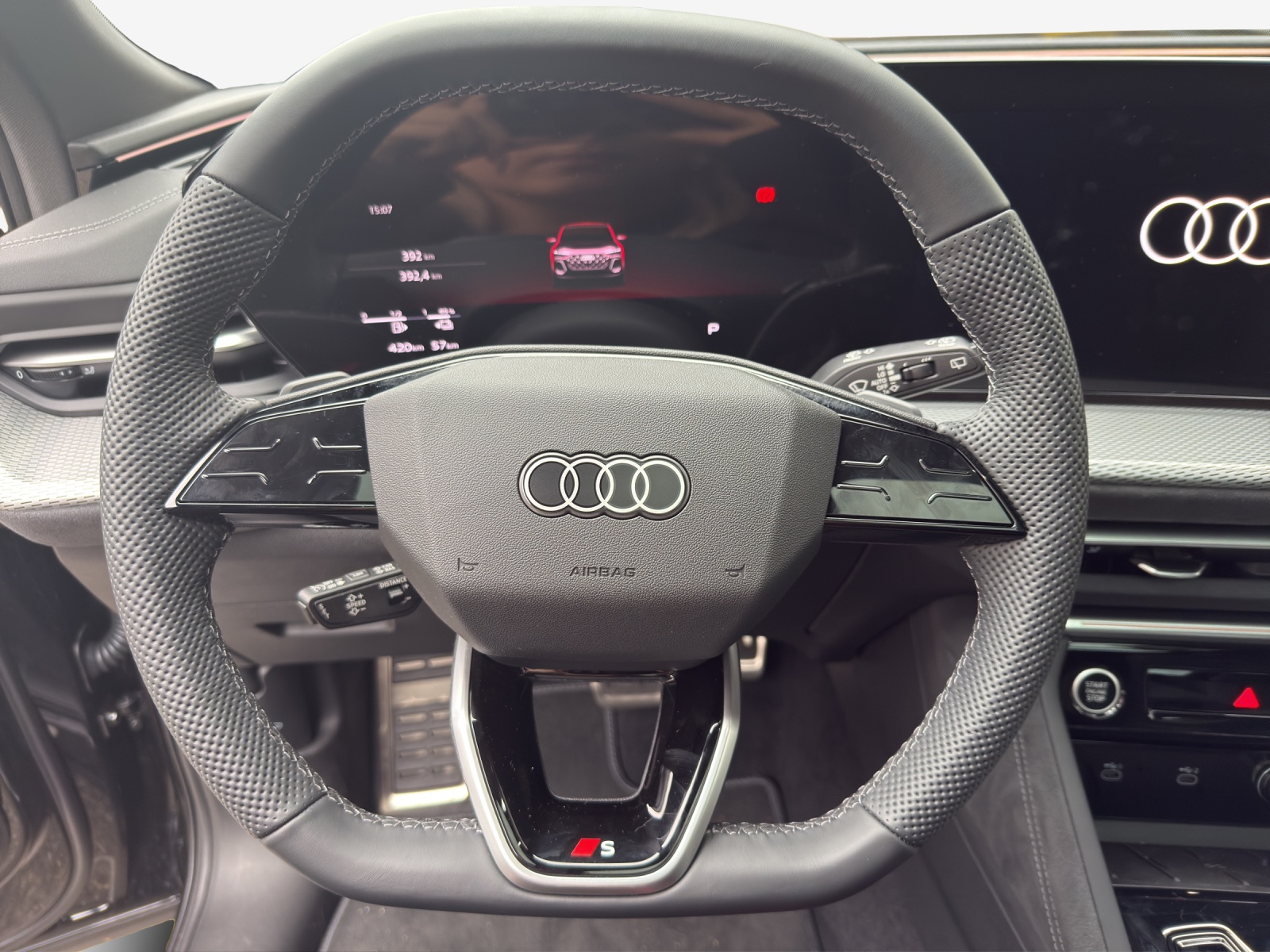 Airbag: Airbag für Fahrer und Beifahrer mit Beifahrer-Airbag-Deaktivierung Airbag: Seitenairbags vorn, mit Kopfairbag und Interaktionsairbag vorn Akustisches Fahrzeug-Warnsystem Assist: Ablenkungs- und Müdigkeitserkennung Assist: Adaptiver Geschwindigkeitsassistent Assist: Ausweichassistent und Abbiegeassistent Assist: Einparkhilfe plus mit Distanzanzeige Assist: Kamerabasierte Verkehrszeichenerkennung Assist: Notbremsassistent vorn Assist: Parkassistent plus Assist: Querverkehrassistent vorn Assist: Spurverlassenswarnung Assist: Traktionskontrolle Assist: Verkehrszeichenbasierter Geschwindigkeitsbegrenzer Audi connect Notruf & Service mit Audi connect Remote & Control Audi virtual cockpit plus Aussenspiegel elektrisch einstell-, beheiz- und anklappbar, beidseitig automatisch abblendend Aussenspiegel in Wagenfarbe Dekor: Aluminiumoptik im Interieur Dekor: Dekoreinlagen Aluminium matt gebürstet mit Linearprägung anthrazit Elektrische Fensterheber vorne Elektronisches Stabilitäts-Programm (ESP) Fahrwerk: Bremssättel, farbig Fahrwerk: S-Sportfahrwerk Fensterzierleisten Aluminiumoptik Frontscheibe in Wärmeschutz- und Akustikverglasung Funkschlüssel, ohne Safelock Fussmatten vorne und hinten Garantie: Audi Garantie 2 Jahre ohne Kilometerbegrenzung (ab 1. Inv.) Getriebe: 7-Gang- Automat S tronic Innenspiegel automatisch abblendbar Klima: 3-Zonen-Klimatisierungsautomatik Klima: Standklimatisierung Lackierung: Kontrastlackierung in Tamboragrau Metallic Lackierung: Uni-Lackierung Ladekabel Mode 3 für öffentliches Laden bis 22 kW Lenkrad: Lenkradeinstellung manuell Licht: Fernlicht-Assistent Licht: LED-Heckleuchten pro Licht: LED-Scheinwerfer plus Licht: Tagesfahrlicht mit Assistenzfahrlicht u.Coming- u. Leaving-home Funktion automatisch Media: Audi Application Store und Smartphone-Interface Media: Audi connect Navigation & Infotainment Media: Audi phone box light Media: Digitaler Radioempfang Media: USB-Anschlüsse mit Ladefunktion in erster und zweiter Sitzreihe Modellbezeichnung am Heck Paket: Ablagen- und Gepäckraumpaket Paket: Ambiente Lichtpaket plus Paket: Interieur S mit Sportsitzen in Leder/Kunstleder-Kombination schwarz Paket: Klimatisierungspaket Räder: Reifendruck-Kontrollanzeige Räder: Reifenreparatur-Set (Tire Fit) Räder: Räder, 10-Arm-Aero, graphitgrau, glanzgedreht Scheiben seitlich und hinten in Wärmeschutzverglasung Scheinwerfer-Reinigungsanlage Servolenkung Elektromechanisch Sitze: Kindersitzbefestigung i-Size auf der Beifahrerseite und i-Size und Top Tether Sitze: Vordersitze elektrisch verstellbar Sitze: Vordersitze heizbar Türen: Komfortöffnung Gepäckraumklappe Verbandmaterial,Warndreieck und Warnveste Wegfahrsperre elektronisch Zentralverriegelung mit Fernbedienung