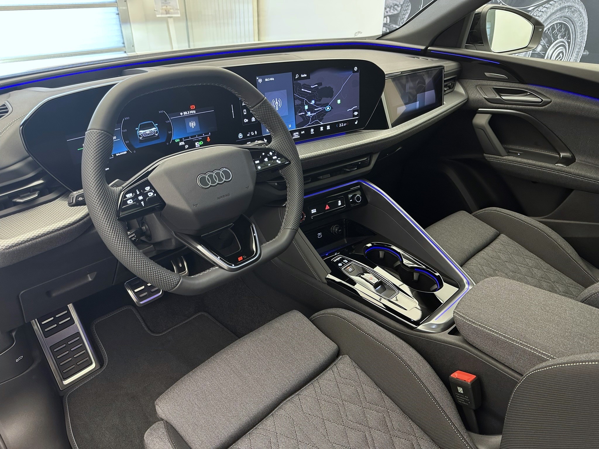 Airbag latéral à lavant et à larrière, avec airbag latéral de tête et airbag interactif à lavant Assist: Spurverlassenswarnung inkl. Notfallassistent Boîtier de rétroviseur extérieur en noir Décor: Applications dintérieur aspect vanadium Décor: Applications décoratives aluminium mat brossé avec gaufrage linéaire anthracite Détection des passagers à larrière Garantie: Audi Swiss Service Package+ (ASSP+) Lackierung: Metallic-Lackierung Pack: Expérience MMI Plus avec système audio haut de gamme Bang & Olufsen Pack: Intérieur S line avec sièges sport en cuir noir Pack: Pack Extérieur noir Pack: Pack éclairage dambiance pro Peinture: Peinture intégrale Roues: Jantes Audi Sport, design à 5 doubles branches, noir métallisé Roues: Jantes, 5 branches doubles Scheinwerfer-Reinigungsanlage Sièges: Siège conducteur et rétroviseur extérieur avec fonction de mémoire Sièges: Sièges AV à réglage électrique Suppression de la désignation du modèle Suspension: adaptive air suspension Toit panoramique en verre Vitrage de contrôle solaire, obscurci
