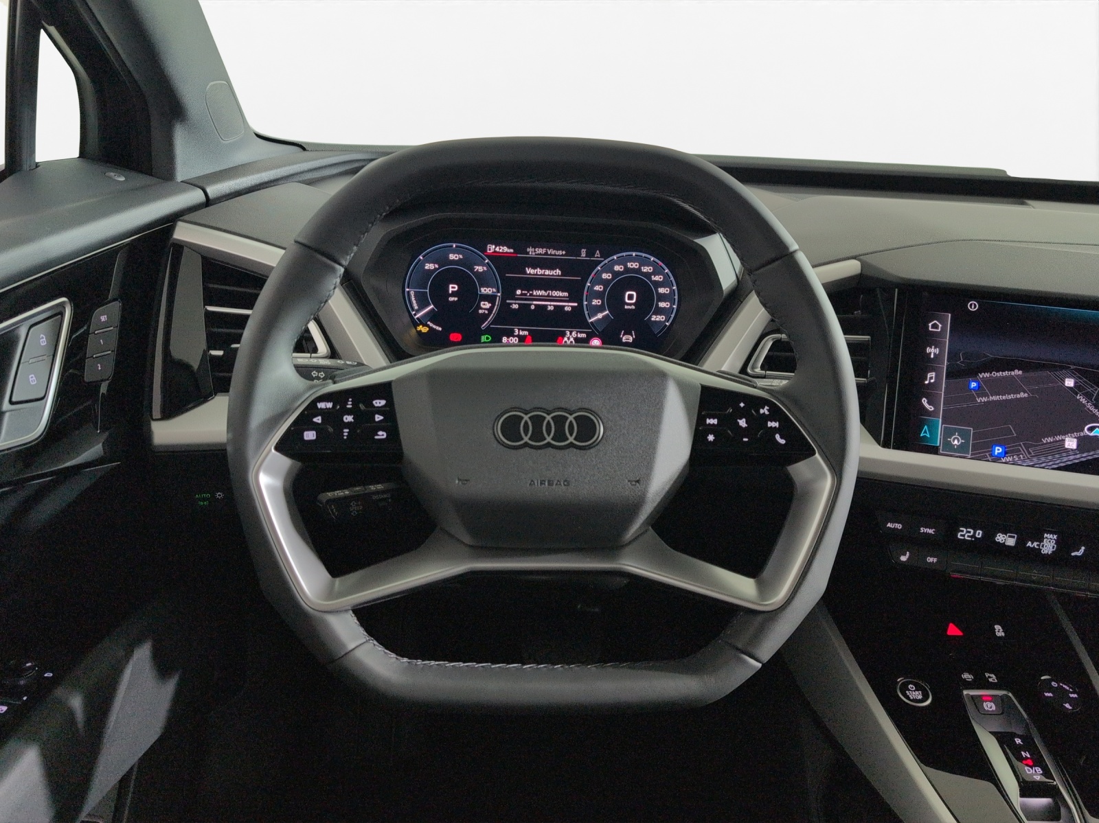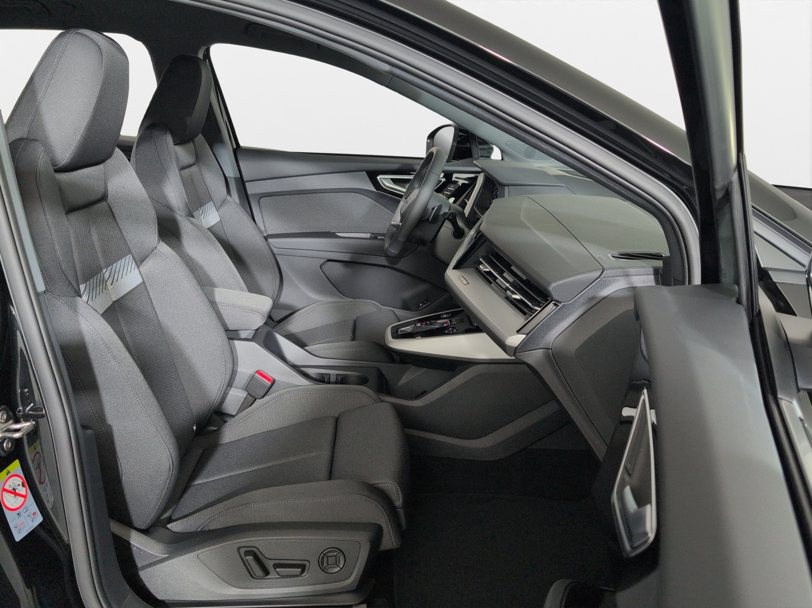 3-Punkt-Sicherheitsgurte auf allen Plätzen Airbag: Airbag für Fahrer und Beifahrer mit Beifahrer-Airbag-Deaktivierung Airbag: Seitenairbags vorn, mit Kopfairbag und Interaktionsairbag vorn Assist: Ablenkungs- und Müdigkeitserkennung Assist: Geschwindigkeitsregelanlage FOD: ACC möglich Assist: Geschwindigkeitsregelanlage mit einstellbarem Geschwindigkeitsbegrenzer Assist: Kamerabasierte Verkehrszeichenerkennung Assist: Proaktiver Insassenschutz Front, Seite und Heck Assist: Speedlimiter mit Intelligent Speed Assist Aussenspiegel in Wagenfarbe Bottom line rundum in genarbter Optik Dekor: Dekoreinlage Haptiklack schwarz Einstiegsleisten mit Aluminiumeinleger vorn, beleuchtet Elektronisches Stabilitäts-Programm (ESP) Entfall Leistungs- / Technologie-Schriftzug Entfall Modellbezeichnung und Leistungs- / Technologie-Schriftzug Fahrwerk: Komfortfahrwerk Funkschlüssel, ohne Safelock Garantie: 2 Jahre ohne Kilometerbegrenzung (ab 1. Inv.) Garantie: Audi Swiss Service Package + (ASSP+) Gepäckraumklappe elektrisch mit sensorgesteuerter Gepäckraumentriegelung Gepäckraumklappe ohne sensorgesteuerte Gepäckraumentriegelung Getriebe: Direktantrieb, kein Getriebe Haushaltsstecker Typ J (Schweiz) für das e-tron Ladesystem Industriestecker CEE 16A, 400V, lang und gerade für das e-tron Ladesystem Klima: Komfort Standklimatisierung Klima: Standklimatisierung Komfortmittelarmlehne vorne Lackierung: Uni-Lackierung Ladekabel Mode 3 Typ 2 32A Lenkrad: Doppelspeichen-Sportlederlenkrad, oben und unten abgeflacht mit Multifunktion Licht: Drittes Bremslicht Licht: Nebelschlussleuchte Media: Digitaler Radioempfang (DAB) Modellbezeichnung Technologieschriftzug Performance Typenzeichen Paket: Glanzpaket mit horizontalen Fensterzierleisten in eloxiertem Aluminium Paket: Infotainmentpaket Schweiz Paket: Interieur mit Sportsitzen in Stoff schwarz Paket: Klimatisierungspaket Paket: Komfortpaket Schweiz Paket: Sicherheitspaket plus Räder: Leichtmetallräder Audi Sport, 5-W-Speichen-Stern, bronze matt Räder: Leichtmetallräder, 5-Arm Räder: Leichtmetallräder, 5-Y-Speichen Räder: Reifendruck-Kontrollanzeige Räder: Reifenreparatur-Set (Tire Fit) Sitze: Interieur mit Normalsitzen in Stoff Index schwarz Sitze: Kindersitzbefestigung i-Size auf der Beifahrerseite und i-Size und Top Tether Sitze: Vordersitze heizbar Sitze: Vordersitze manuell einstellbar Verbandmaterial,Warndreieck und Warnveste Wegfahrsperre elektronisch Wärmeschutzverglasung grün getönt Zentralverriegelung mit Fernbedienung ohne Dacheinsatz (Volldach) ohne Ladekabel (Industriestecker) ohne Scheinwerferreinigungsanlage