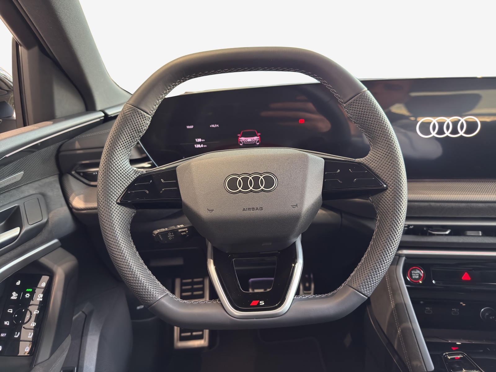 Assist: Adaptiver Fahrassistent plus Aussenspiegelgehäuse in Schwarz Dekor: Dekoreinlage Carbon Mikro-Köper Struktur Fahrwerk: Adaptives S-Luftfederfahrwerk Fahrwerk: Bremssättel, farbig Lackierung: Metallic-Lackierung Paket: Ambiente Lichtpaket pro Paket: Exterieurpaket schwarz Paket: Interieur S mit Sportsitzen, Leder schwarz Paket: MMI experience pro Räder: Räder Audi Sport, 5-Arm-Split, schwarz metallic, glanzgedreht Sitze: Fahrersitz und Aussenspiegel mit Memoryfunktion Sitze: Sitzbelüftung vorne Sonnenschutzverglasung, abgedunkelt