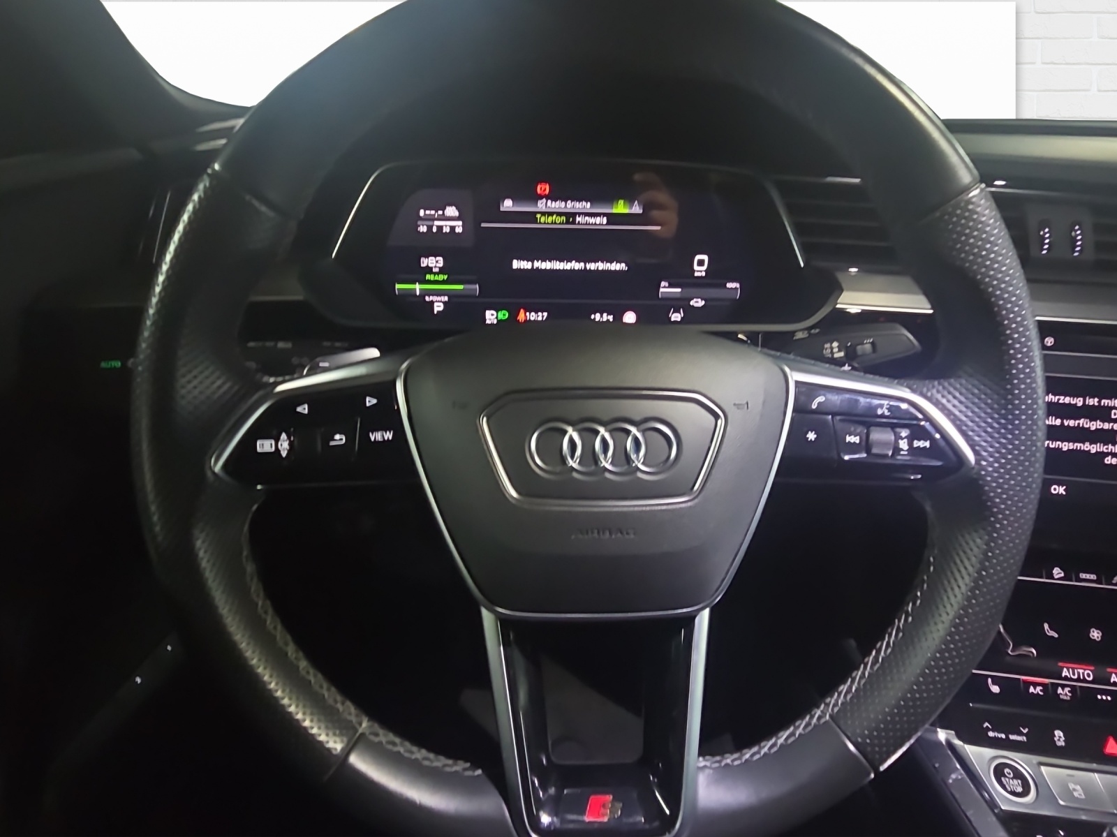 Serienausstattung Airbag: Airbag Beifahrer deaktivierbar Airbag: Seitenairbags vorne Airbag: Window-Kopfairbags Akustisches Fahrzeug-Warnsystem (AVAS) Assist: Audi pre sense front Assist: Geschwindigkeitsregelanlage inklusive Geschwindigkeitsbegrenzer Assist: Spurverlassenswarnung Audi connect Notruf & Service mit Audi connect Remote & Control Aussenspiegel elektrisch einstell- und beheizbar Aussenspiegel in Wagenfarbe Bedientasten schwarz matt Dachhimmel in Stoff mondsilber Dekor: Dekoreinlagen Feinlack graphitgrau Einparkhilfe plus mit Umgebungsanzeige Einstiegsleisten mit Aluminiumeinlegern vorne und hinten, beleuchtet, vorne mit S-Schriftzug Fahrwerk: Adaptive air suspension sport Frontscheibe in Wärmeschutz- und Akustikverglasung Fussmatten vorne und hinten Garantie: 2 Jahre ohne Kilometerbegrenzung (ab 1. Inv.) Gepäckraumabdeckung (manuell) Gepäckraumklappe elektrisch öffnend und schliessend Haushaltsstecker Typ J (CH) Industriestecker CEE 16A, 400V, lang und gerade für das e-tron Ladesystem Innenspiegel automatisch abblendbar Kindersitzbefestigung ISOFIX und Top Tether für die Rücksitzbank Kindersitzvorrichtung ISOFIX Beifahrerseite Klima: 2-Zonen-Komfortklimaautomatik Klima: Standklimatisierung Lackierung: Bottom line in Volllackierung (Wagenfarbe) Lackierung: Uni-Lackierung Lenkrad: Doppelspeichen-Lederlenkrad mit Multifunktion und Schaltwippen Licht: LED-Scheinwerfer mit Vorbereitung für weitere Lichtfunktionen und LED-Heckleuchten Licht: Scheinwerfer-Reinigungsanlage Media: Audi connect Navigation & Infotainment Media: Audi music interface Media: Bluetooth-Schnittstelle Media: Digitaler Radioempfang (DAB) Media: MMI Navigationssystem Plus Modellbezeichnung und Leistungs- / Technologie-Schriftzug On-Board-Ladegerät bis 11 kW (AC) Räder: Leichtmetallräder 20", 5-Arm-Dynamik, graphitgrau, glanzgedreht Räder: Reifendruck-Kontrollanzeige Räder: Reifenreparatur-Set (Tire Fit) S line-Emblem im Kühlerschutzgitter Sitze: Vordersitze höhenverstellbar Sonnenblende Fahrer und Beifahrerseite mit beleuchtetem Spiegel Stossfänger S line in Volllackierung Unterfahrschutz vorne und Diffusor hinten in sportlich markantem Design in Selenitsilber matt Verbandmaterial und Warndreieck e-tron Ladesystem kompakt